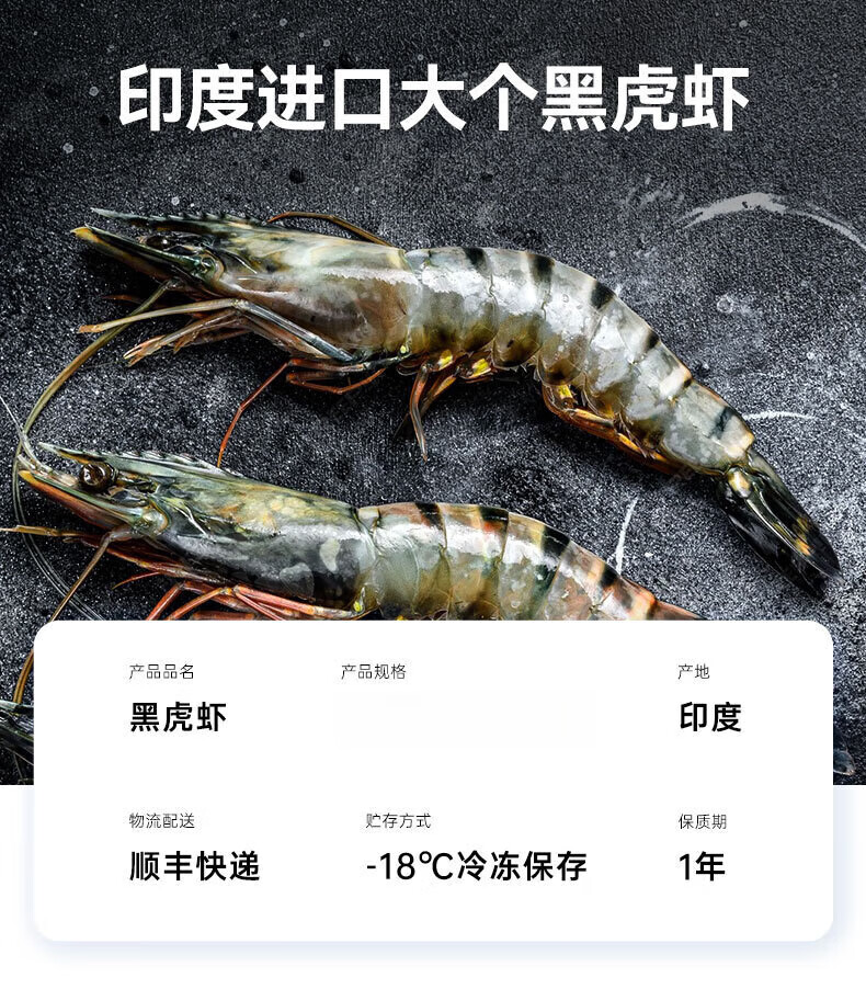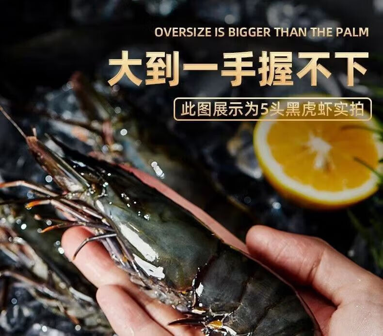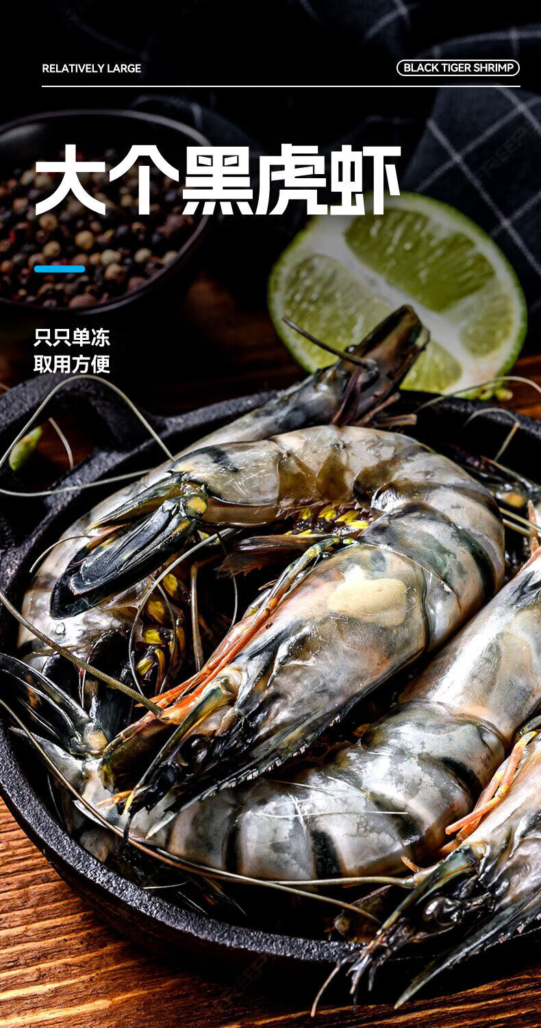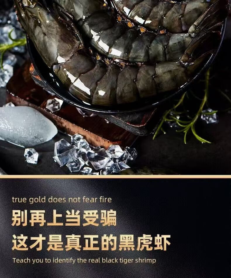 翰鸥斐进口高品质活冻气冻黑虎虾 超大虾类大虾生鲜老虎虾冰鲜海虾礼盒 超大黑虎虾王【3只共2斤】 1000g(净重)