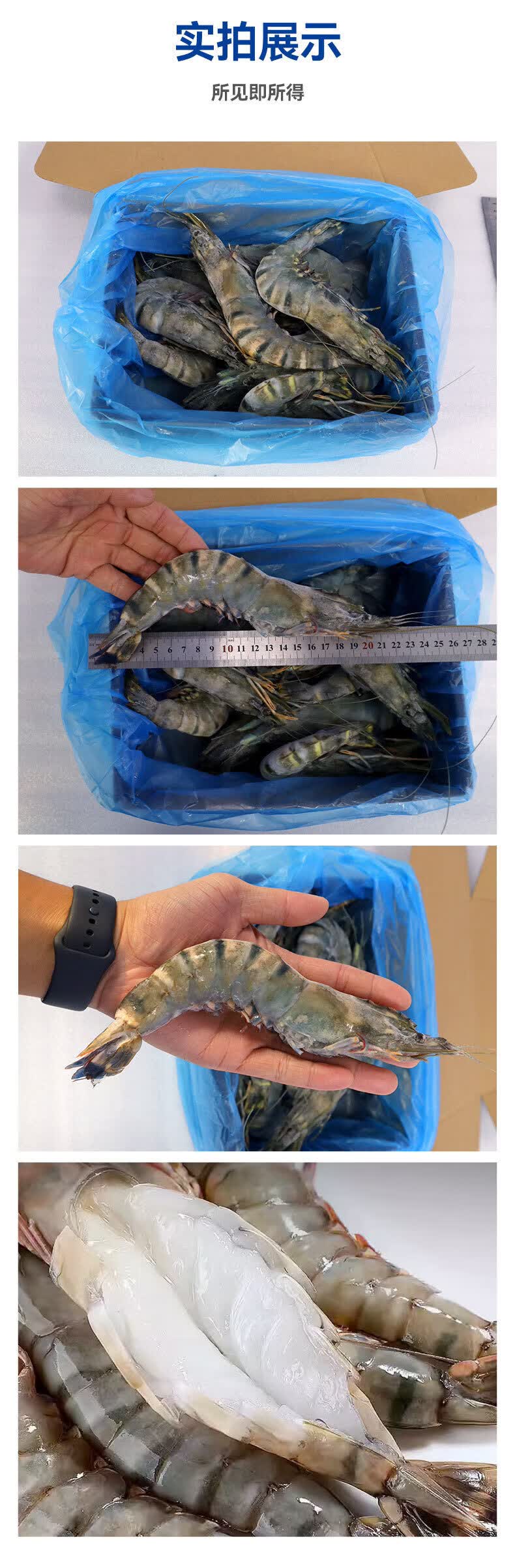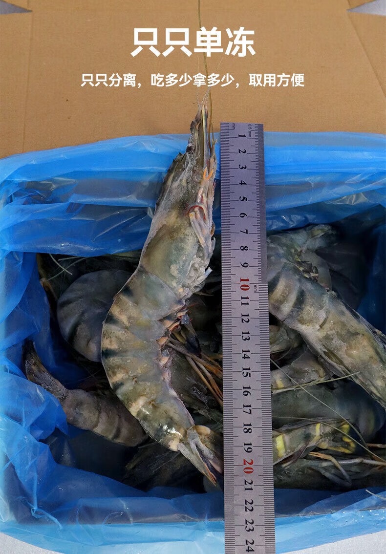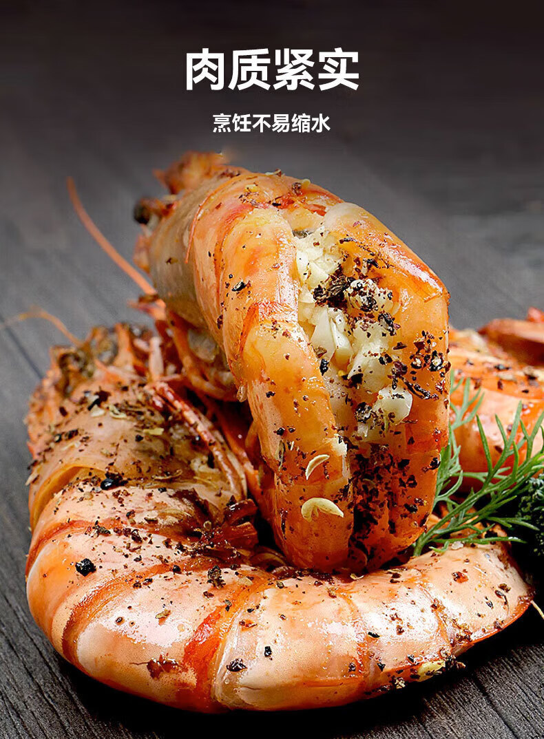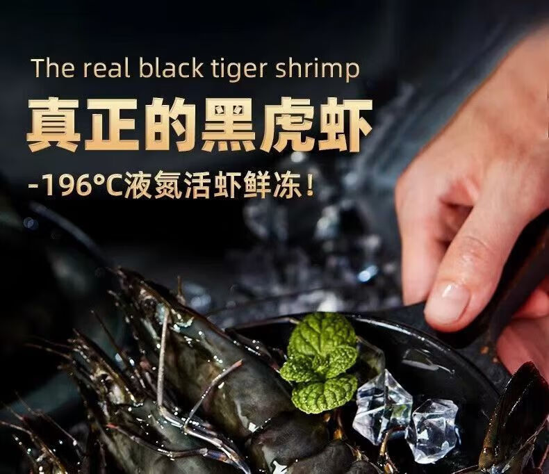 翰鸥斐进口高品质活冻气冻黑虎虾 超大虾类大虾生鲜老虎虾冰鲜海虾礼盒 超大黑虎虾王【3只共2斤】 1000g(净重)