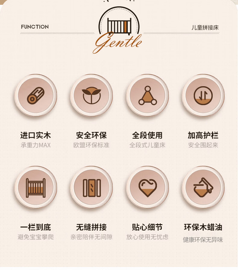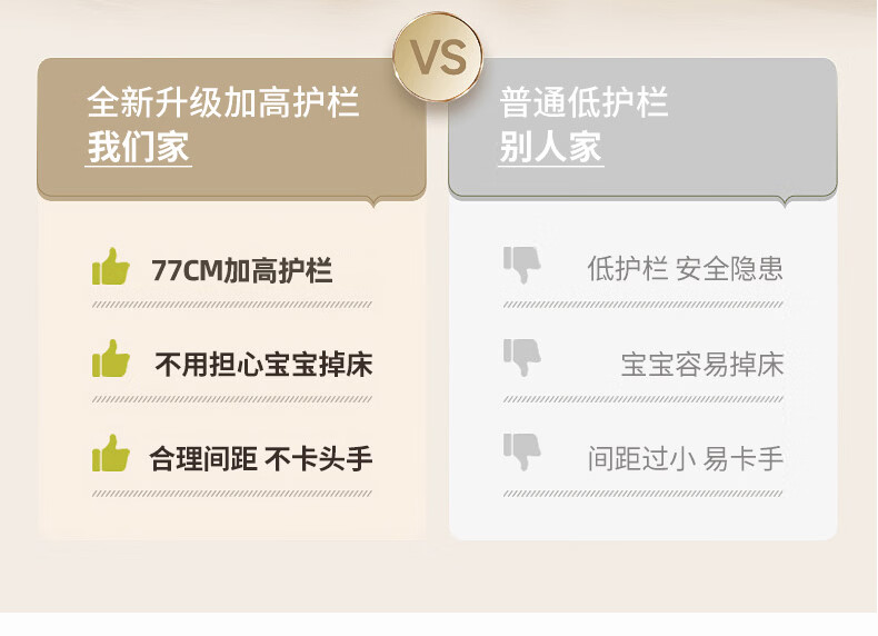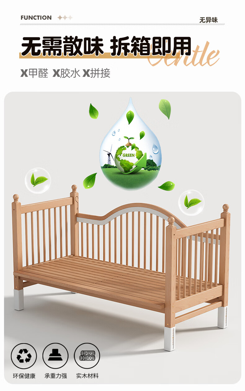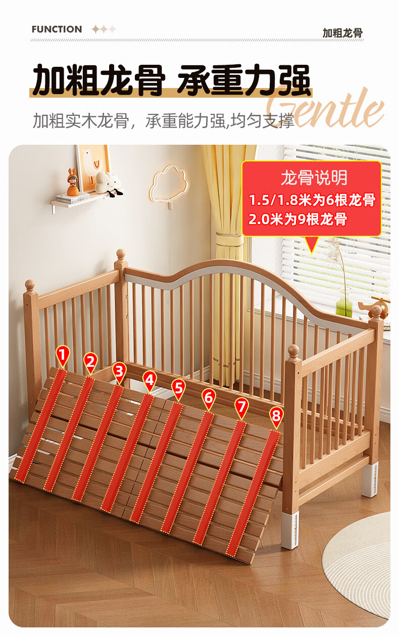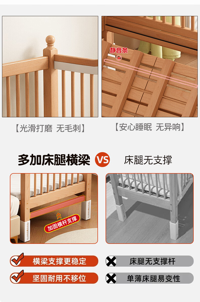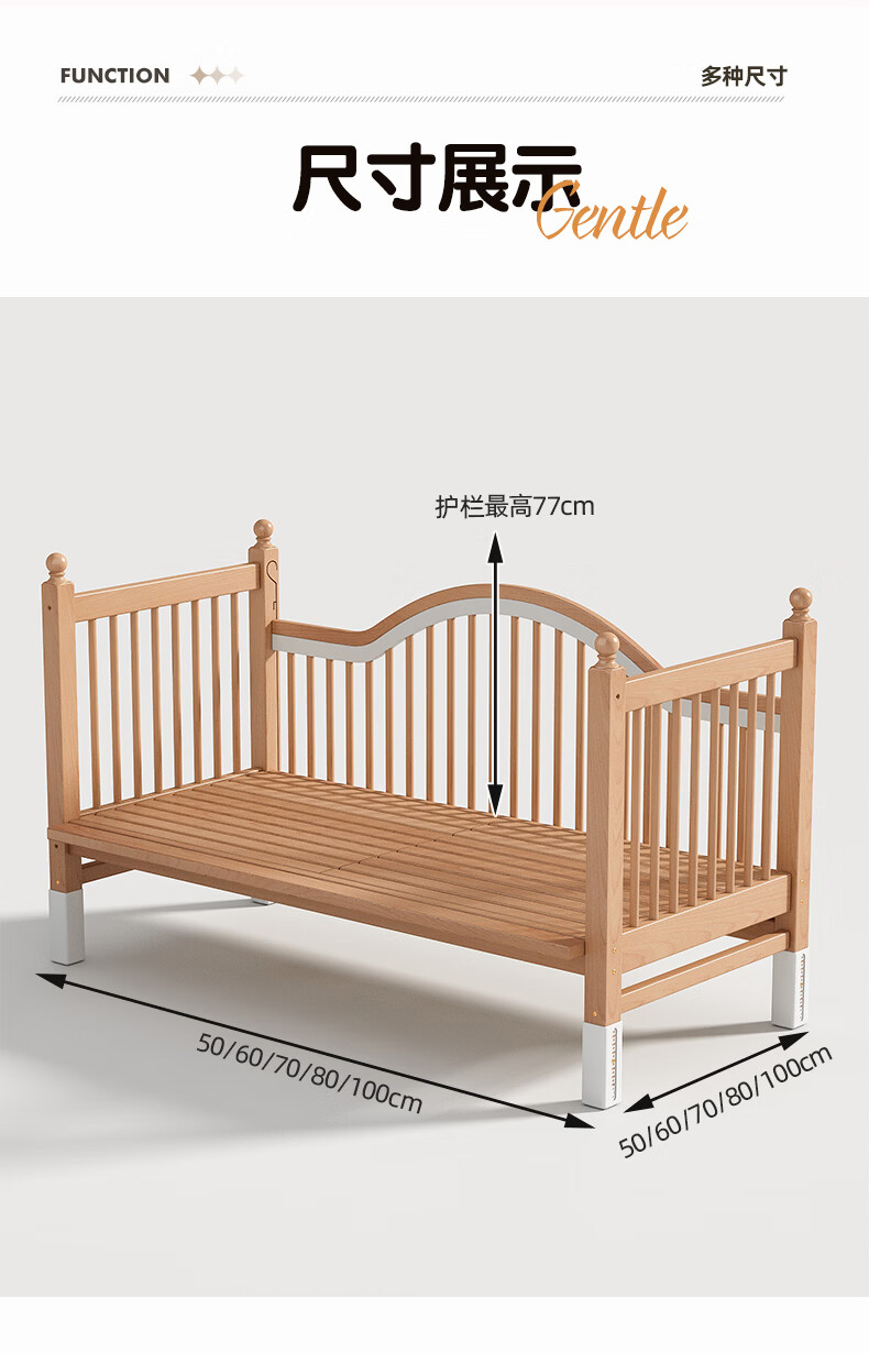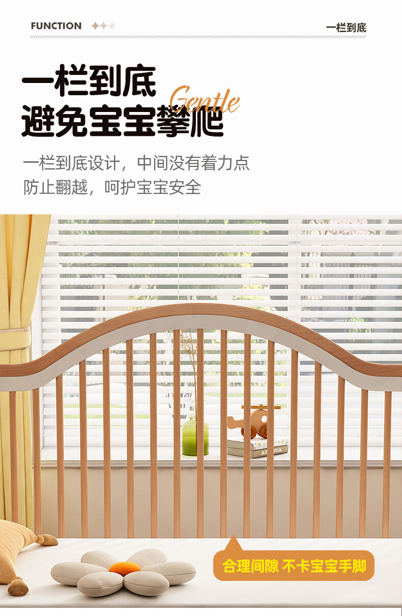 贝幸福 BAYLUCK榉木拼接床婴儿床实木儿童床加宽小孩床边床加高护栏可升降儿童床 单床(三面护栏)+10cm可拆洗空气纤维垫+纯棉床围 200*100CM【侧面升降+尾部带门 全榉木】