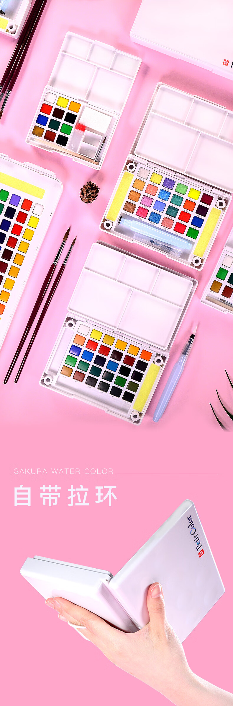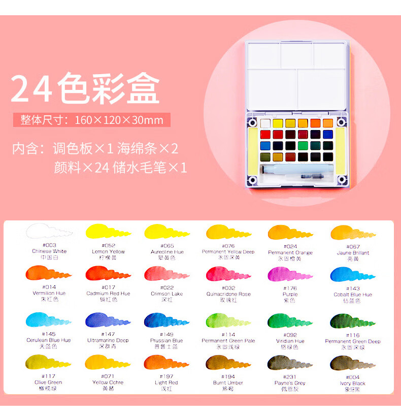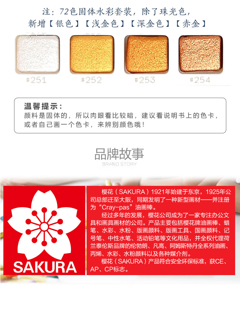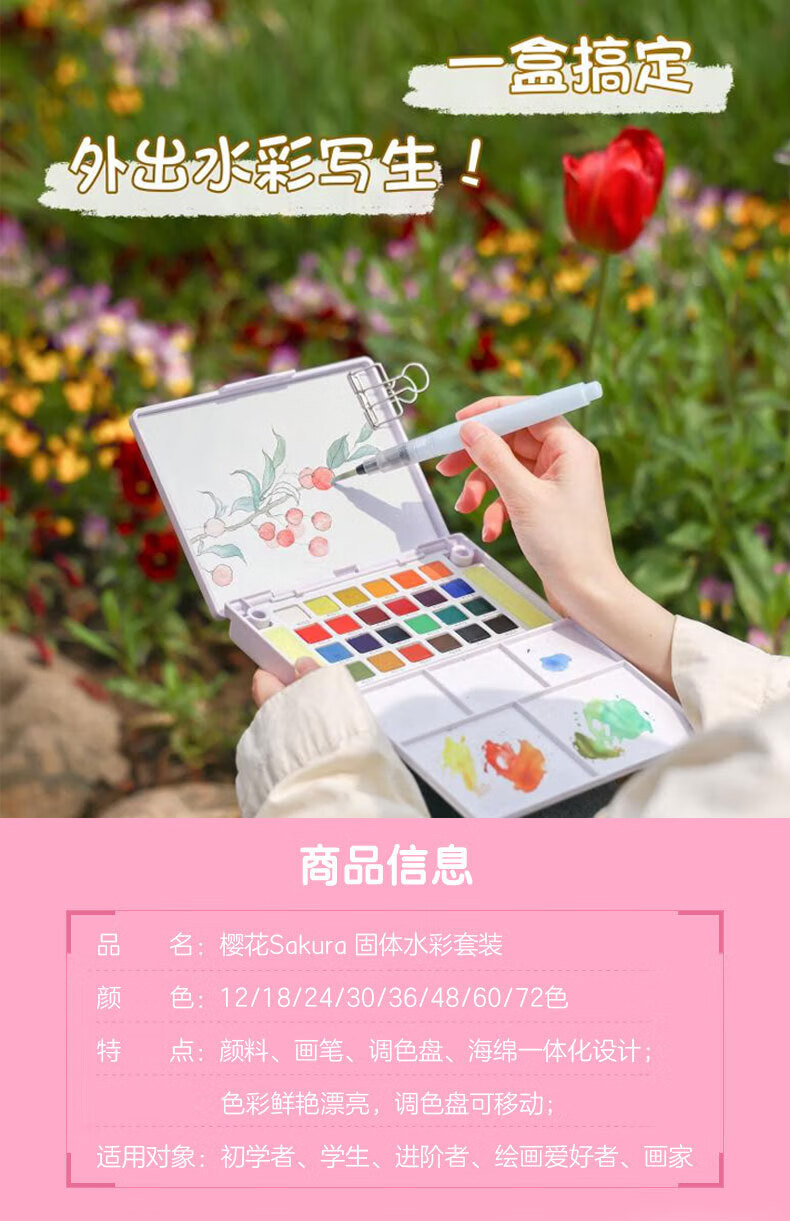 樱花日本樱花(SAKURA)固体水彩颜料套装水粉颜料绘画工具泰伦斯固体水彩水溶素描便清晰画笔套装水溶性 72色固体水彩套装(含4号和8号马毛画笔各1支)