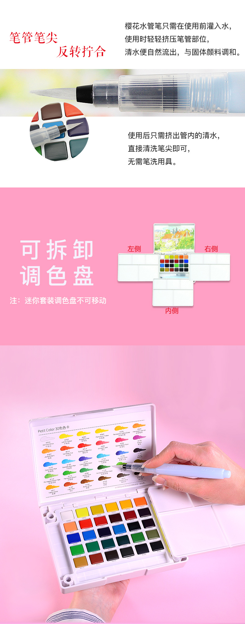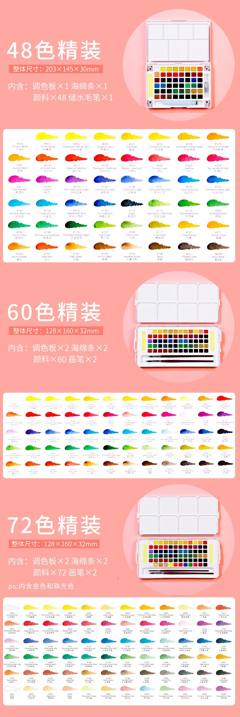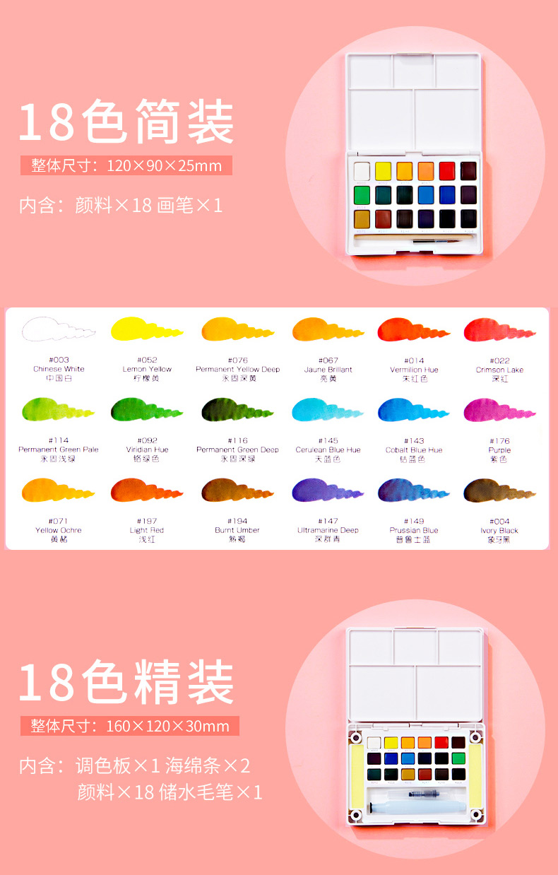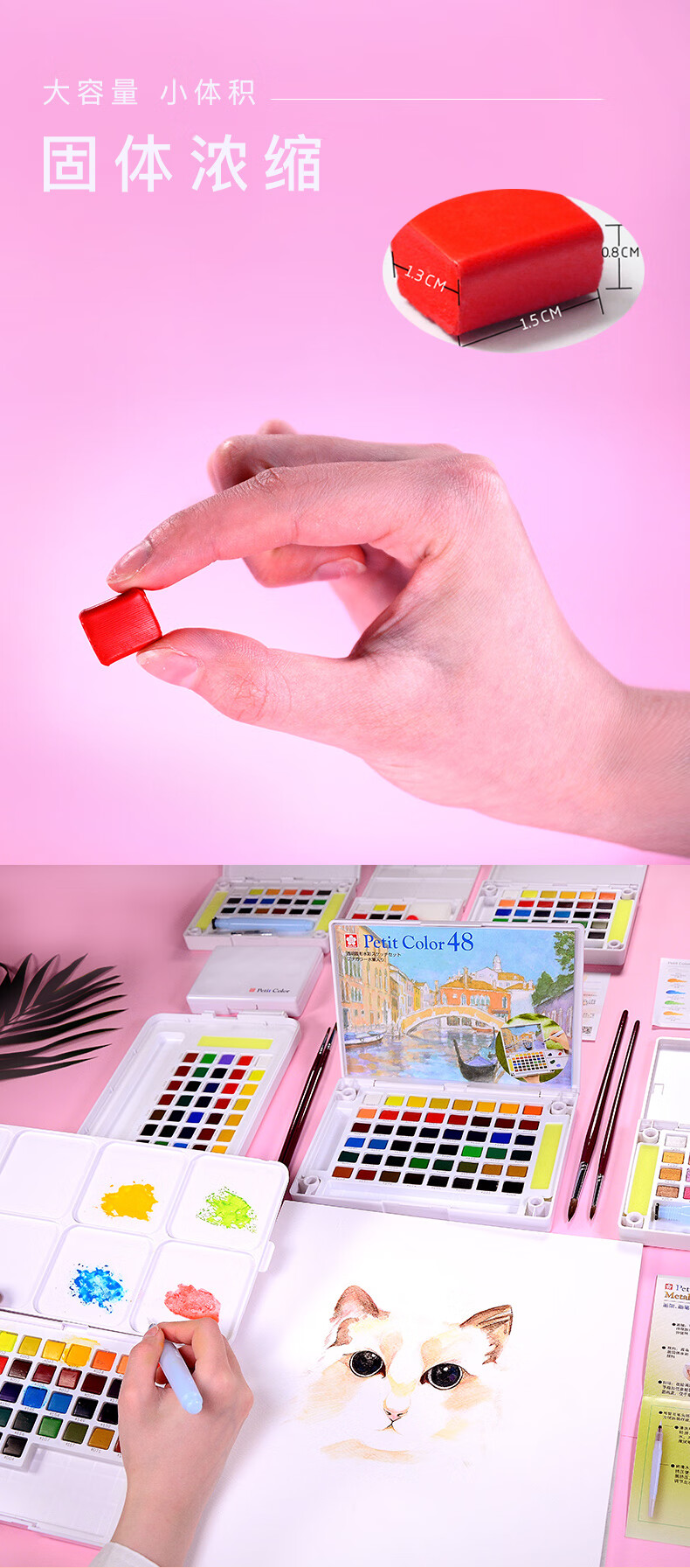 樱花日本樱花(SAKURA)固体水彩颜料套装水粉颜料绘画工具泰伦斯固体水彩水溶素描便清晰画笔套装水溶性 72色固体水彩套装(含4号和8号马毛画笔各1支)