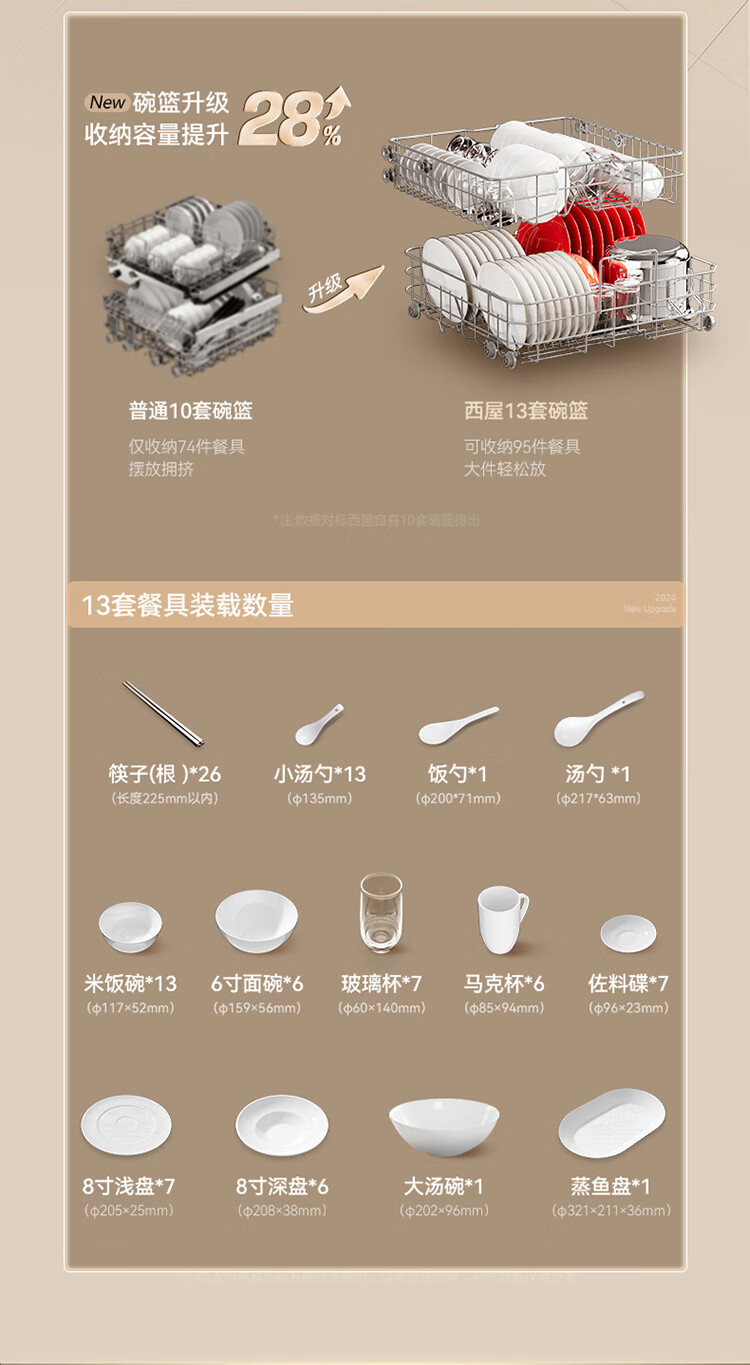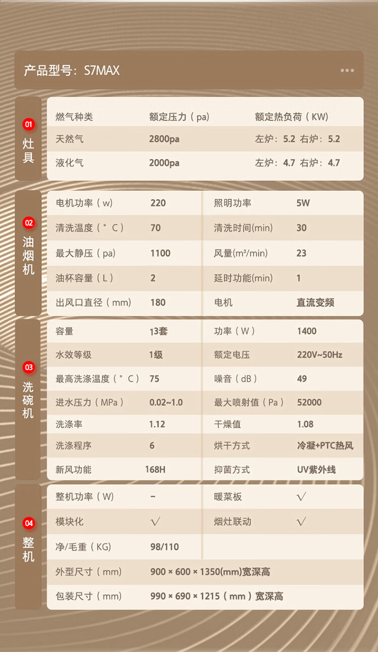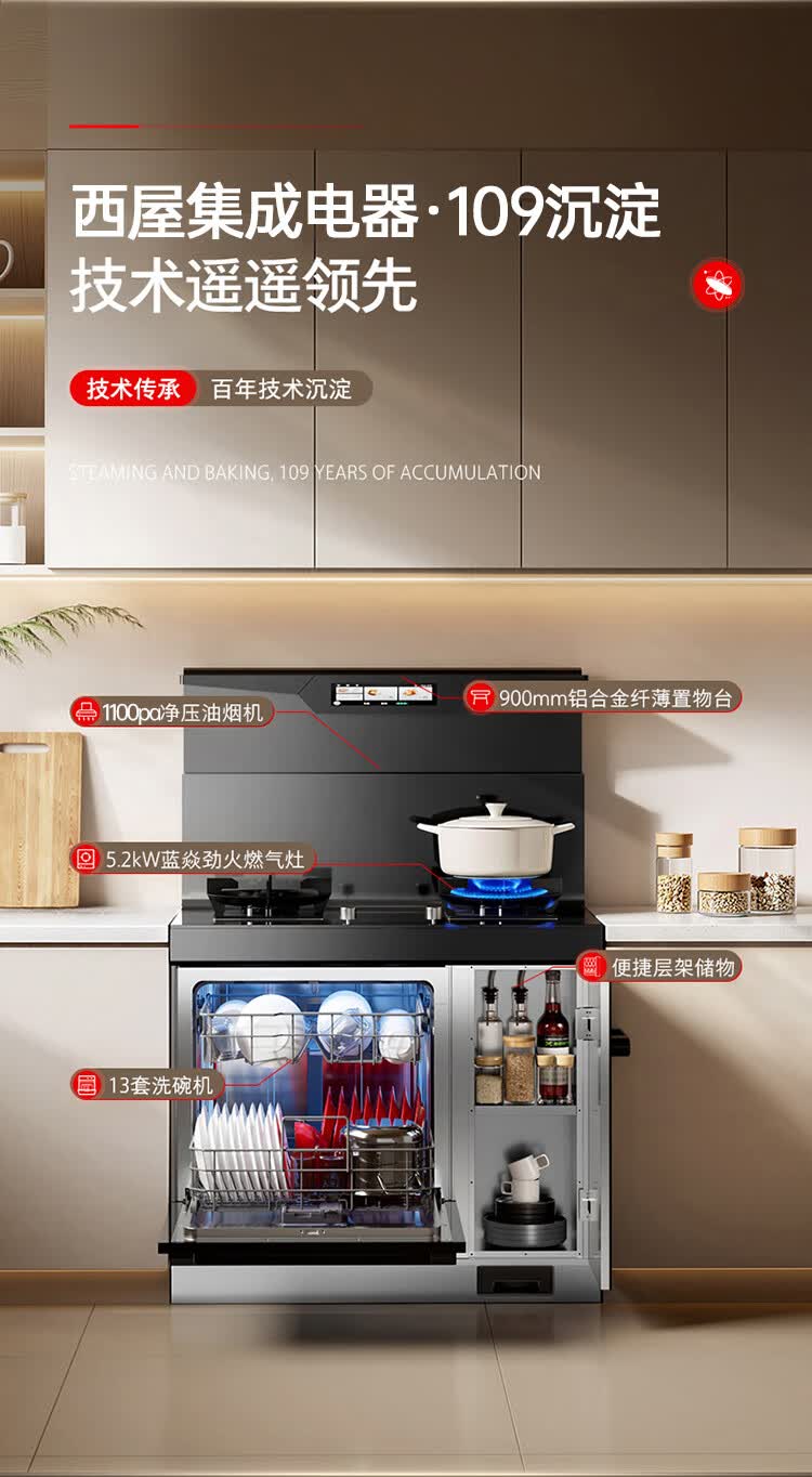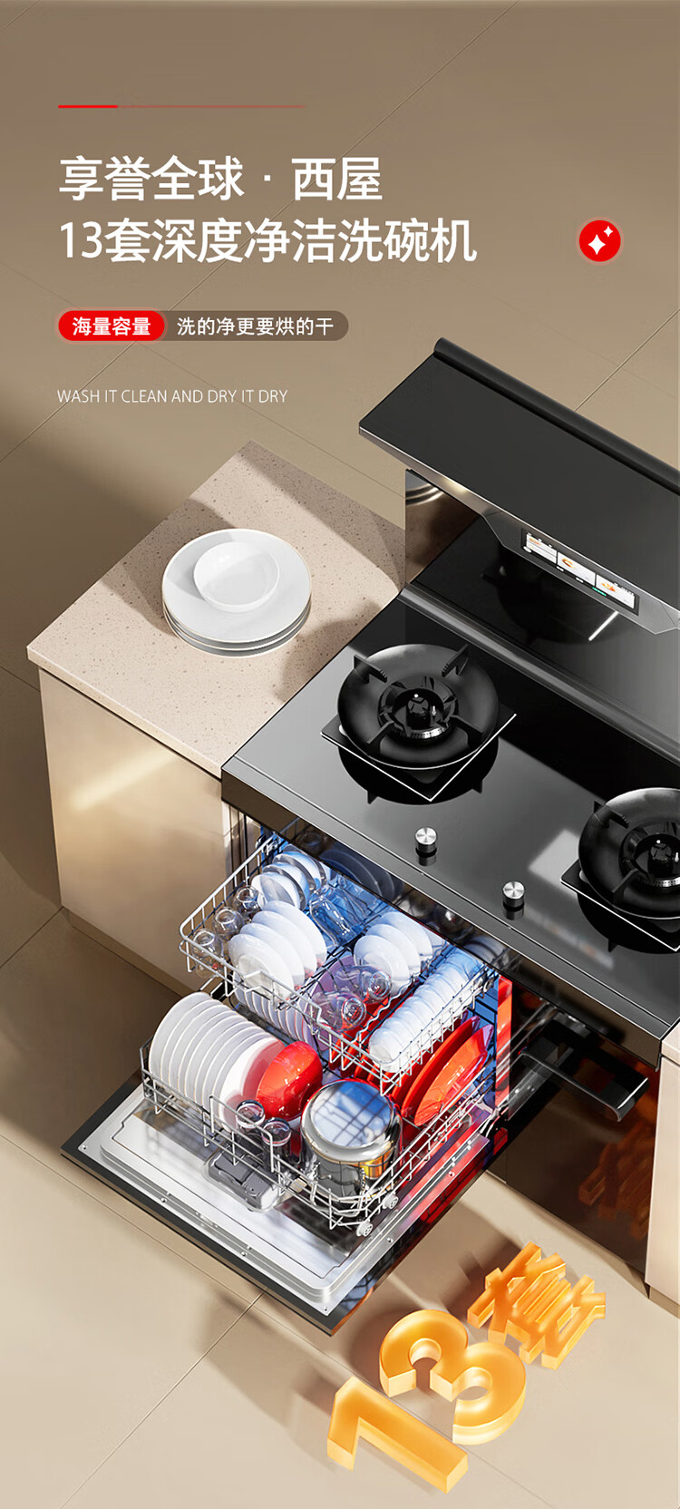 西屋集成灶烟灶消一体式13套洗碗机集成洗碗机 JJZT-S7MAX 集成灶13套洗碗机 左排烟 天然气12T