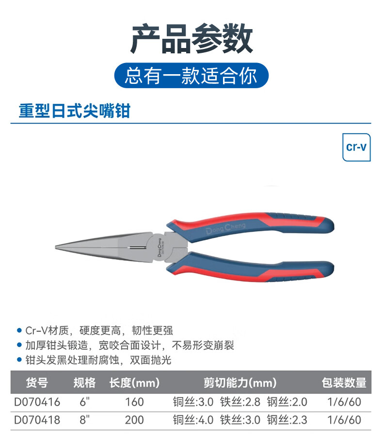东成尖嘴钳子电工专用工业级多功能工具小手工用迷你钳家用耐磨 【重型日式款】5寸尖嘴钳