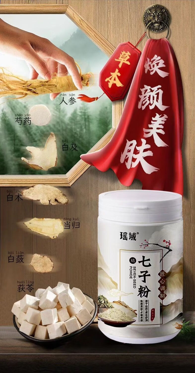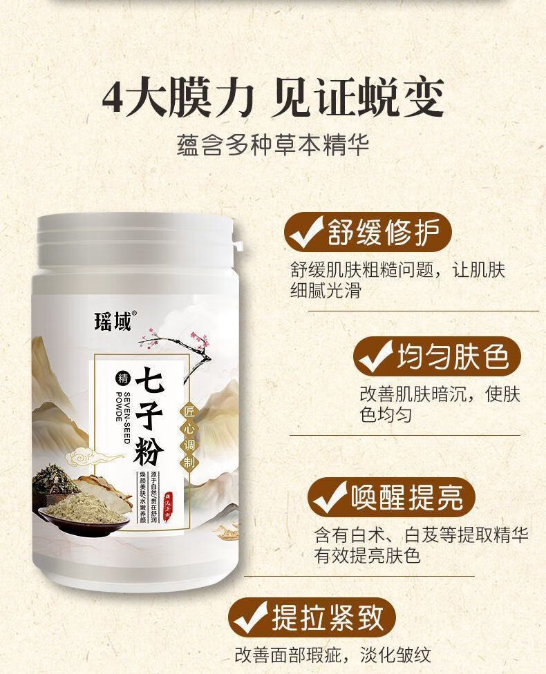 瑶域纯中药七子软膜粉七子粉抗皱提亮肤色嫩白淡斑补水保湿美容院专用 七子粉2瓶+珍珠粉2瓶送工具4件套