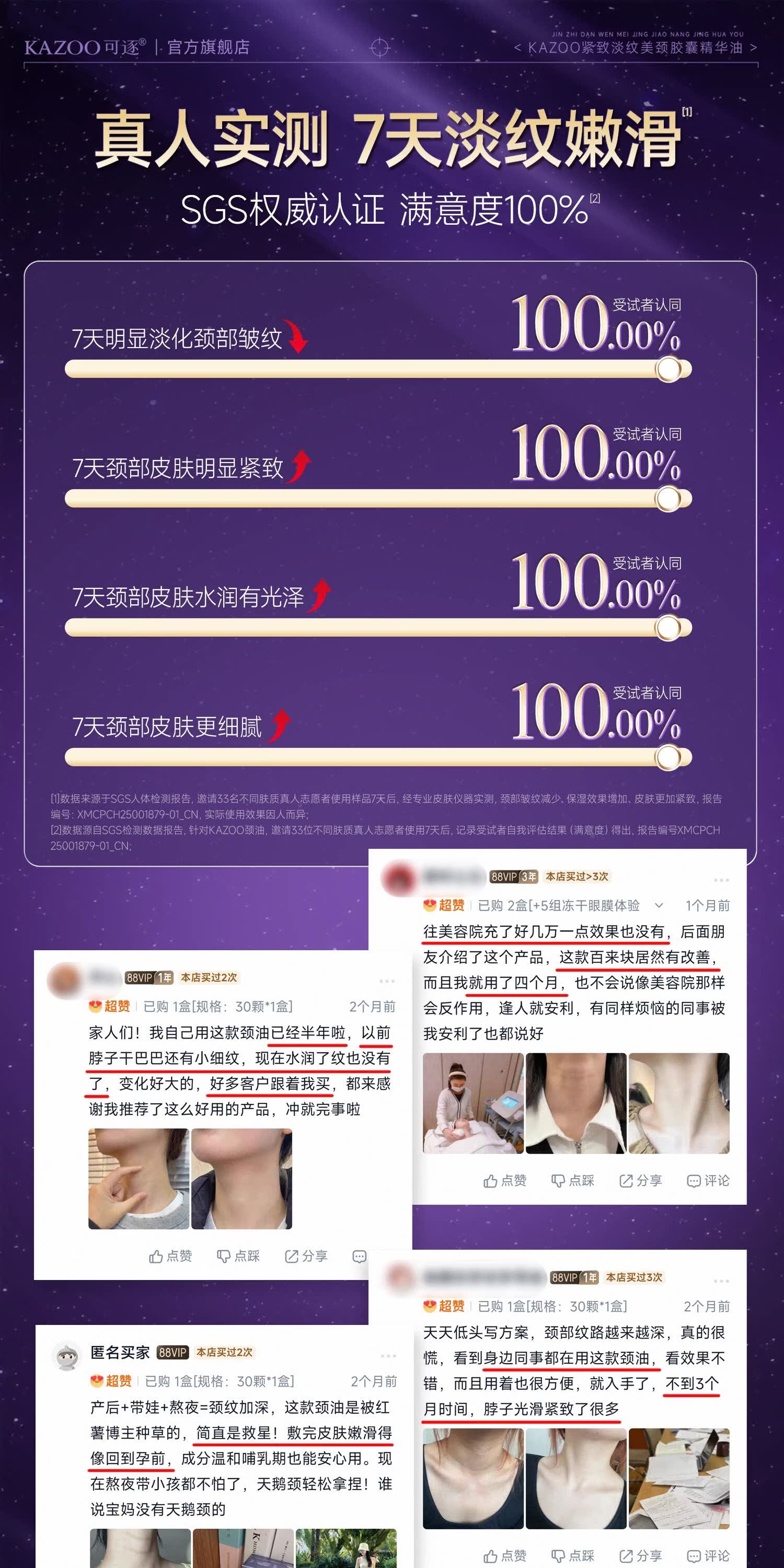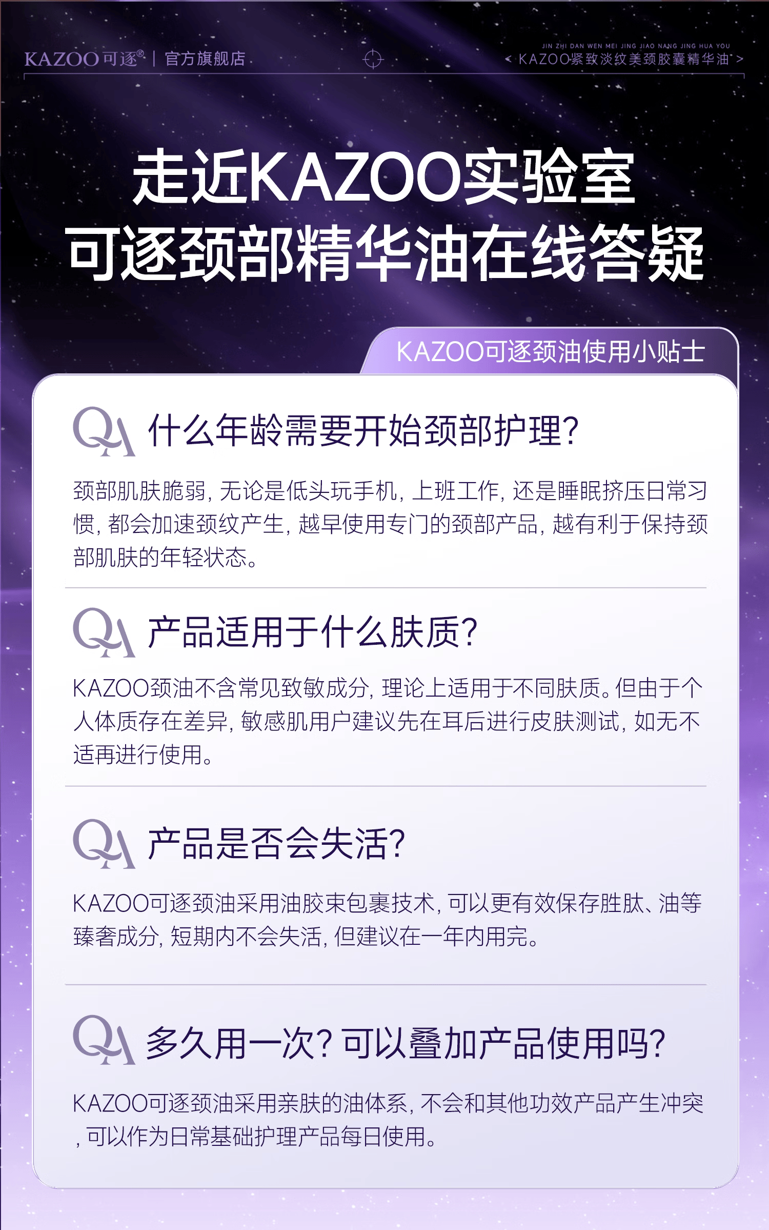 KAZOO可逐颈油颈霜颈膜颈部精华油淡化颈纹霜颈纹护理美颈神器