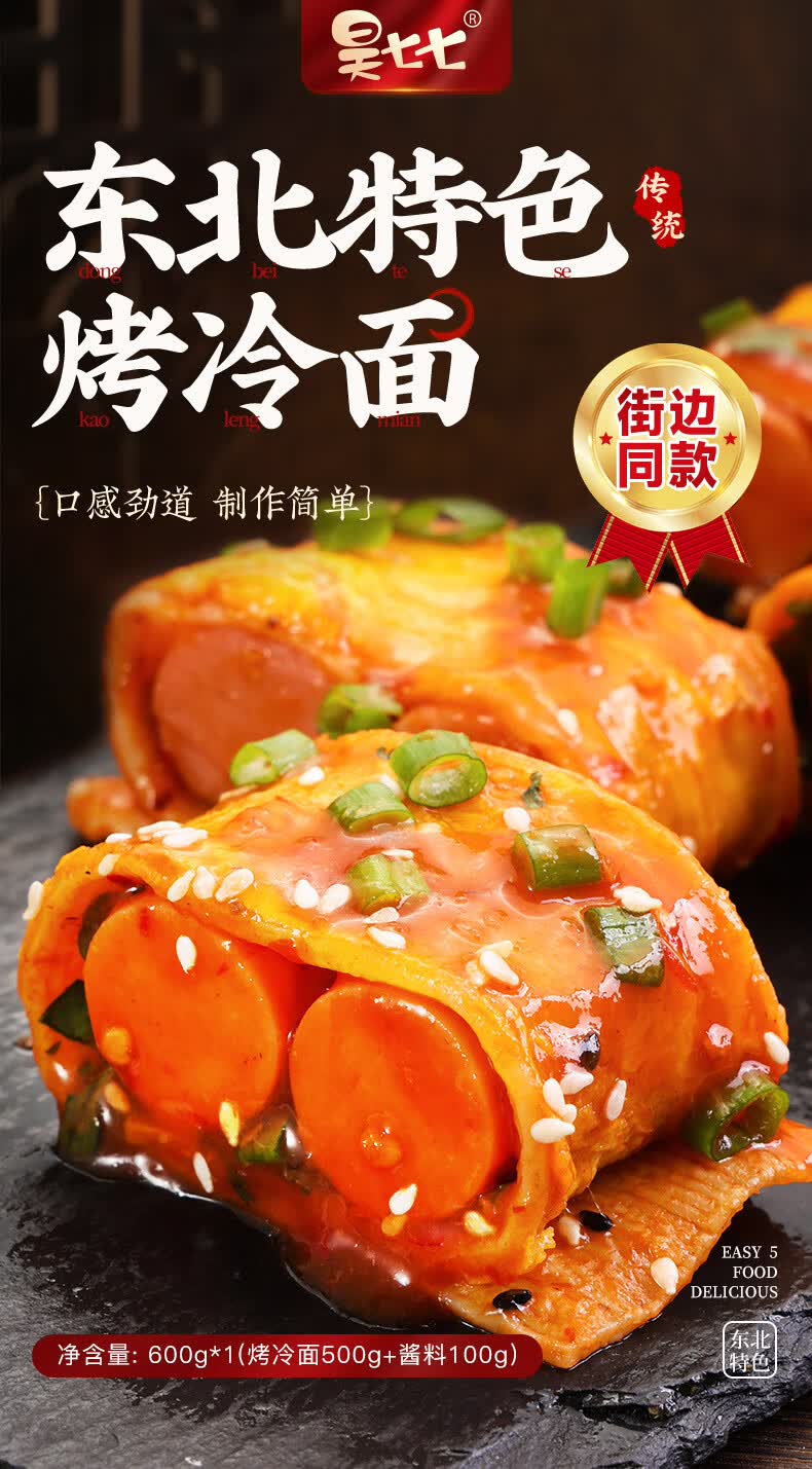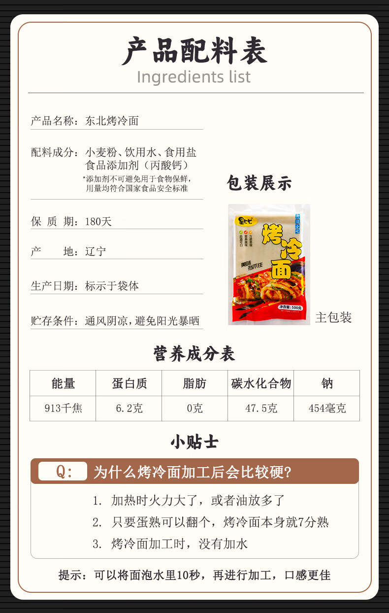 昊七七正宗东北烤冷面500g*1袋装含冷面酱料早餐速食特色冷面皮10片