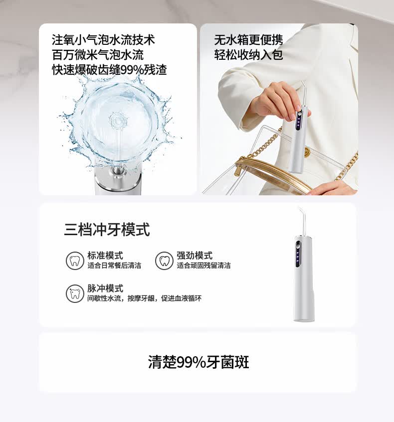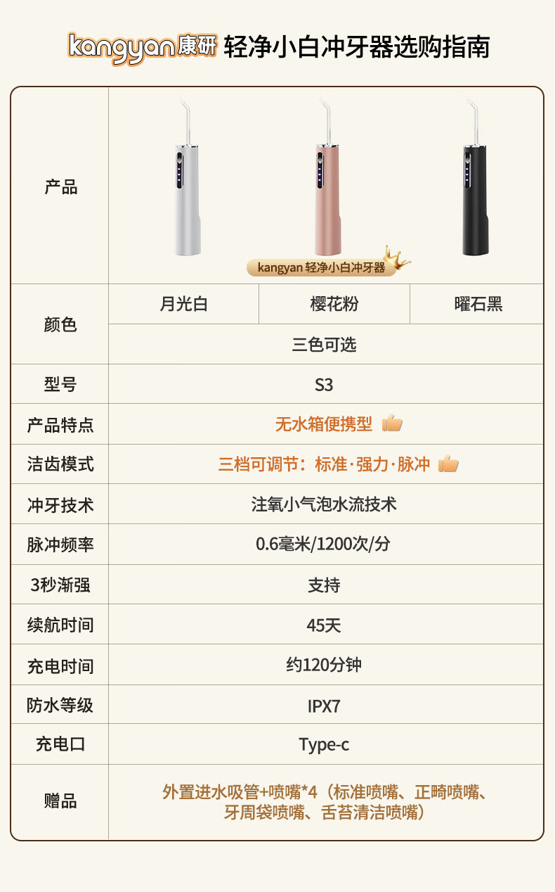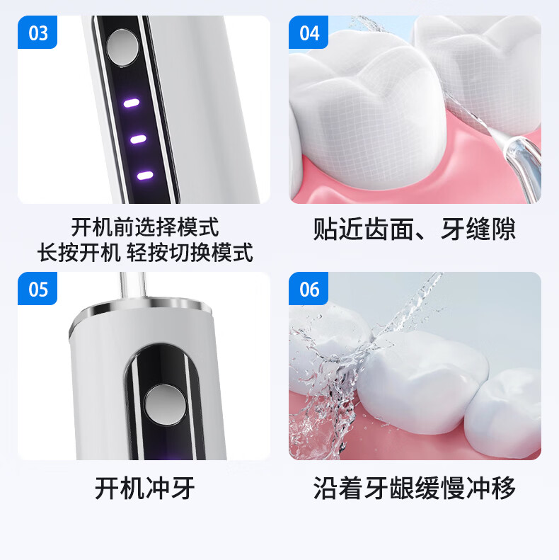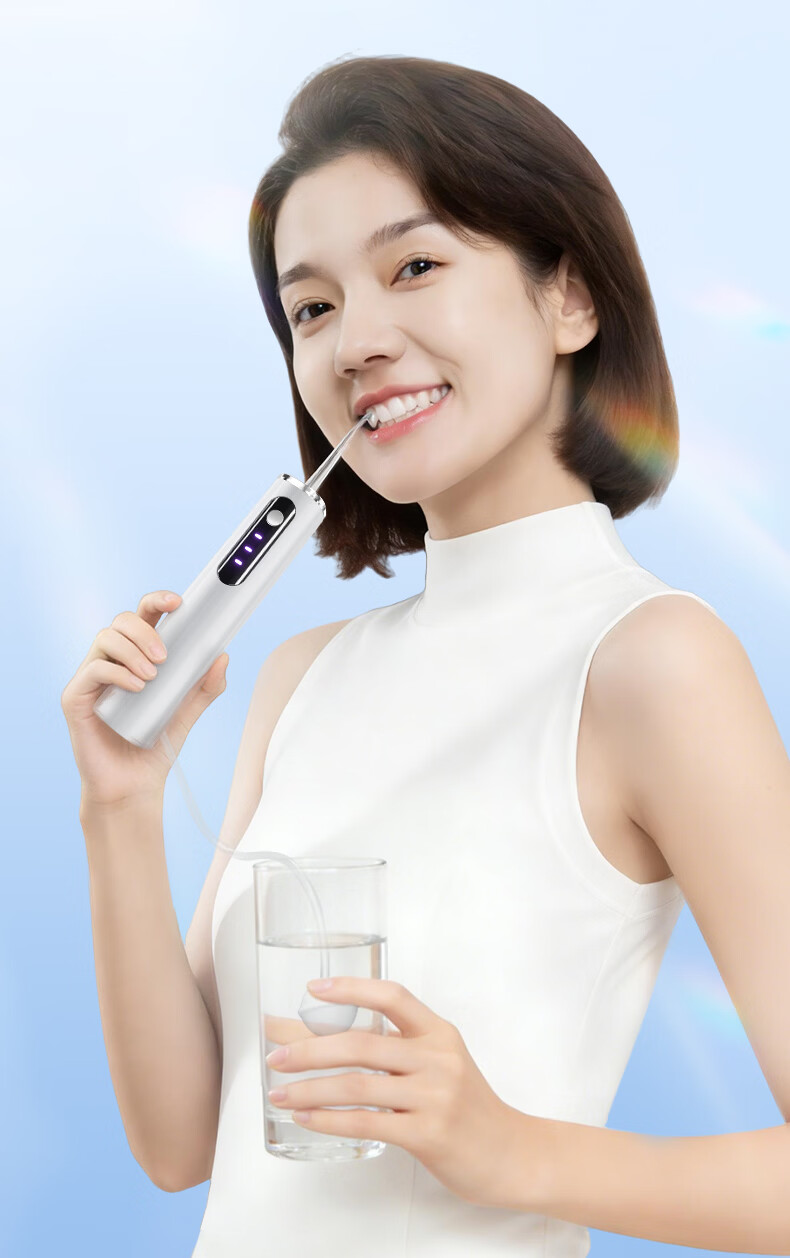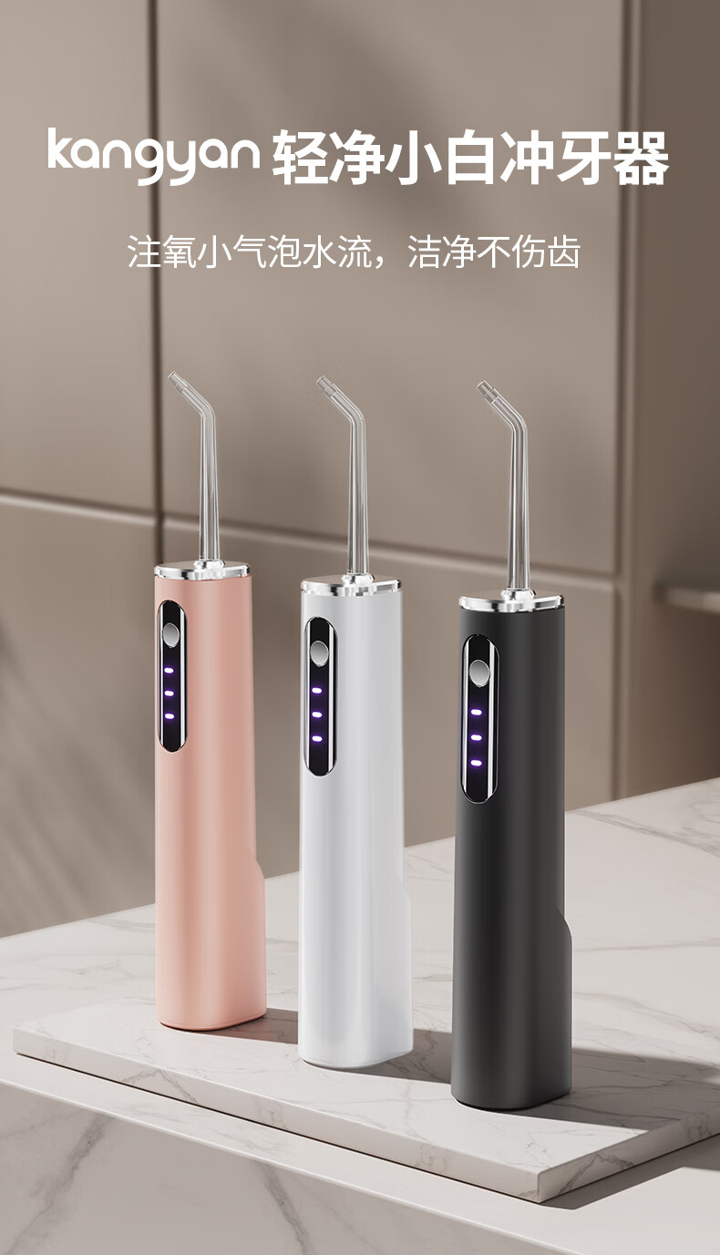 KANGYAN无水箱冲牙器 注氧小气泡水牙线 家用便携式正畸洗牙器 敏感牙洁牙器 多档调节配吸水管 高级【月光白】45天长续航|三档洁齿模式| 4支喷头