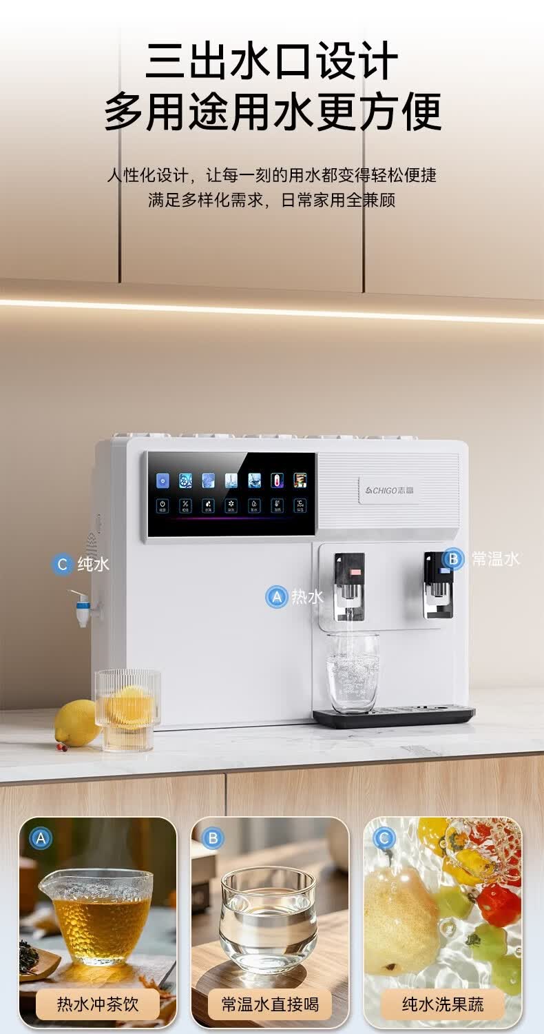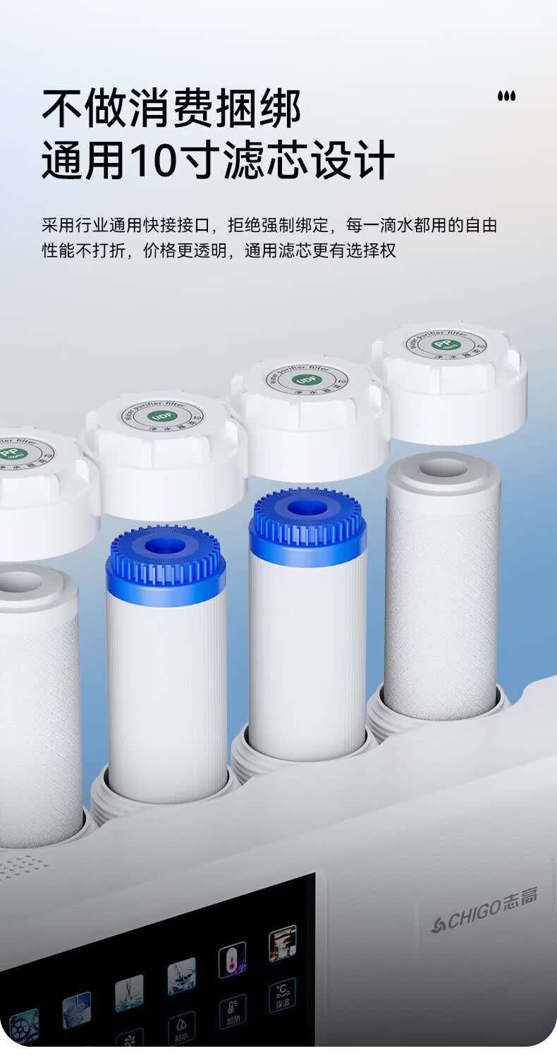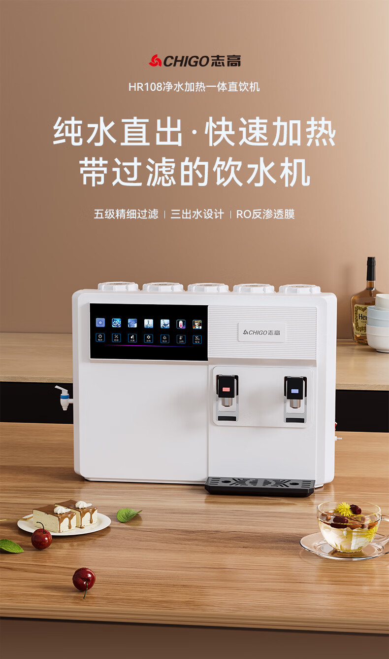 志高(CHIGO)净水器家用净饮机RO反渗透直饮加热一体机直接自来水农村自吸台式壁挂式净热净水机通用滤芯HR108 HR108-三出水口-通用滤芯(包安装)