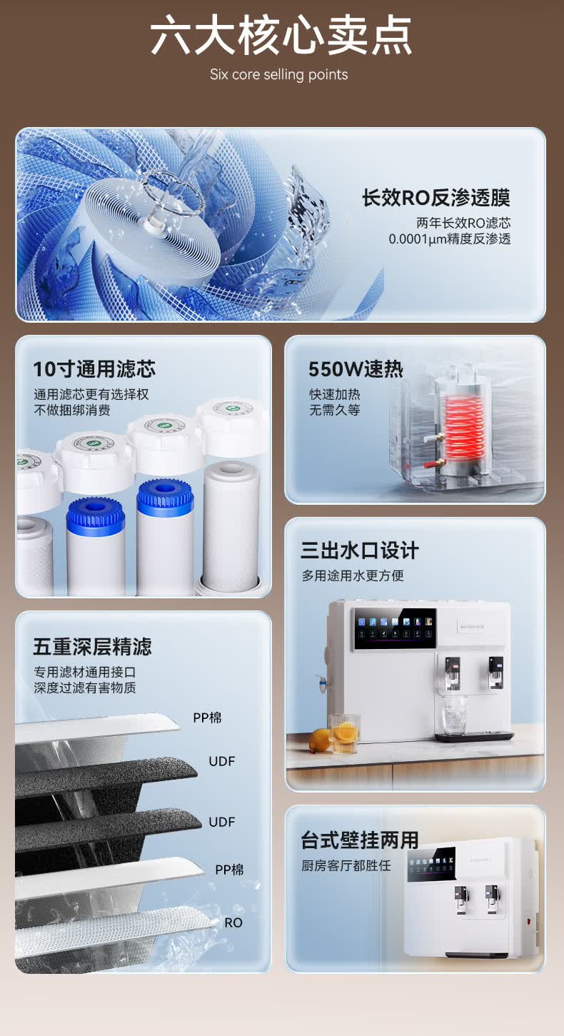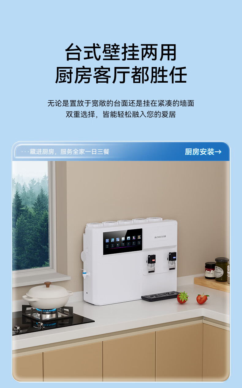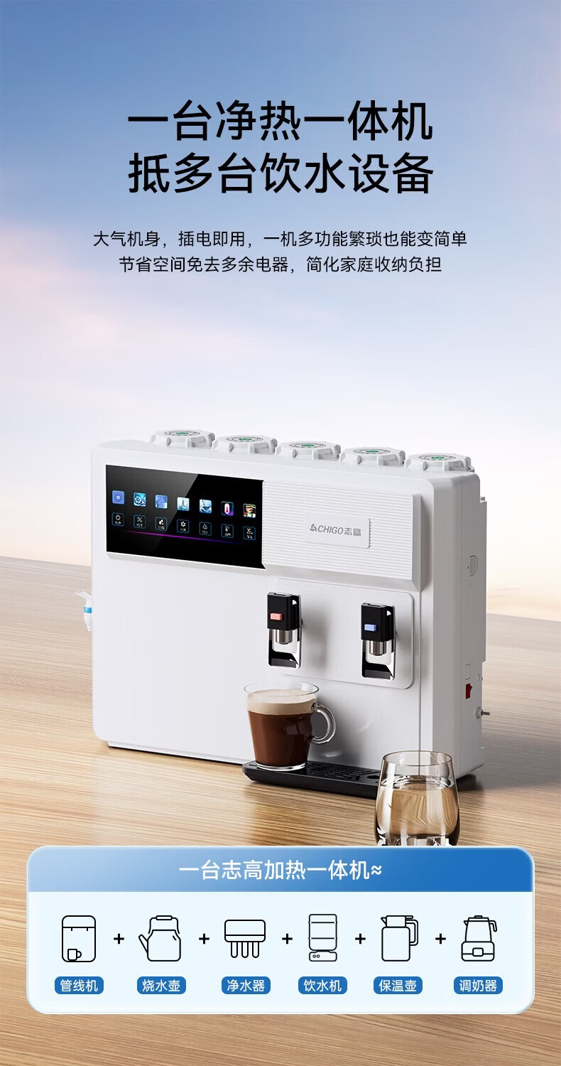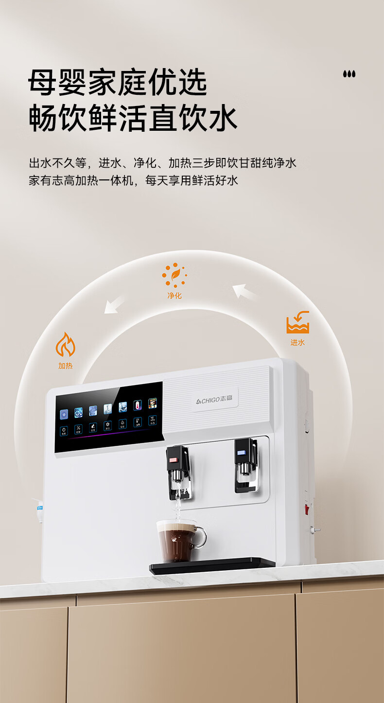 志高(CHIGO)净水器家用净饮机RO反渗透直饮加热一体机直接自来水农村自吸台式壁挂式净热净水机通用滤芯HR108 HR108-三出水口-通用滤芯(包安装)