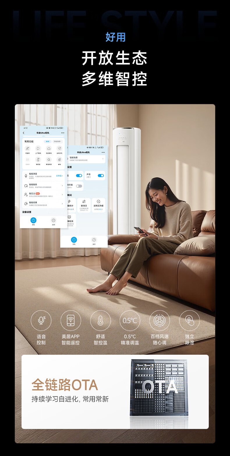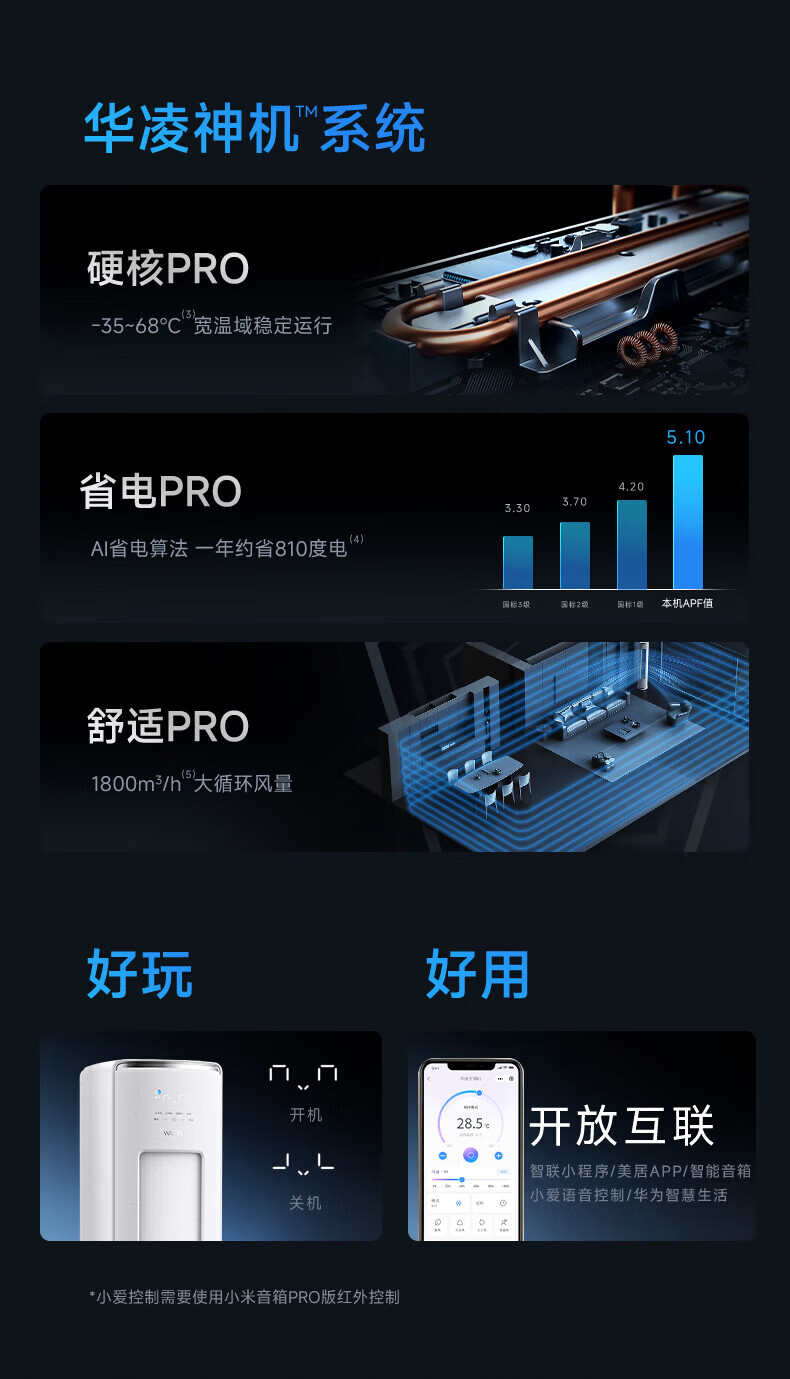 华凌空调 神机二代ultra 3匹 新一级能效 双排铜管 大风量 静音 变频冷暖 大客厅 立式柜机 【神机二代 3匹柜机】静音除湿