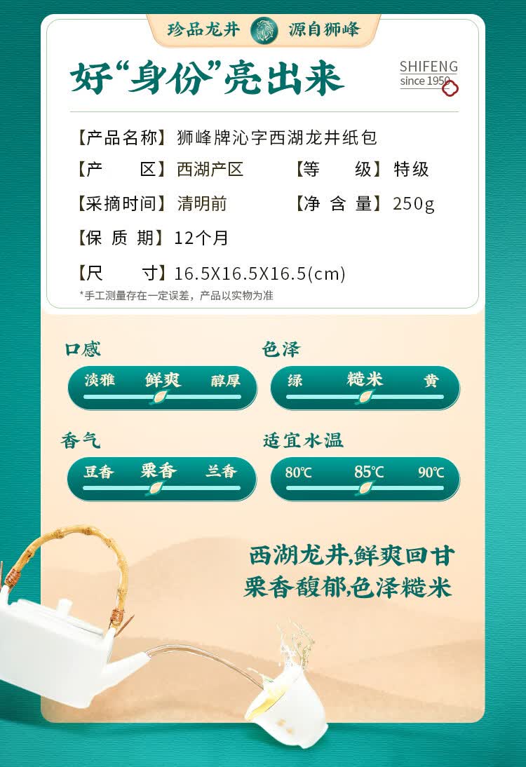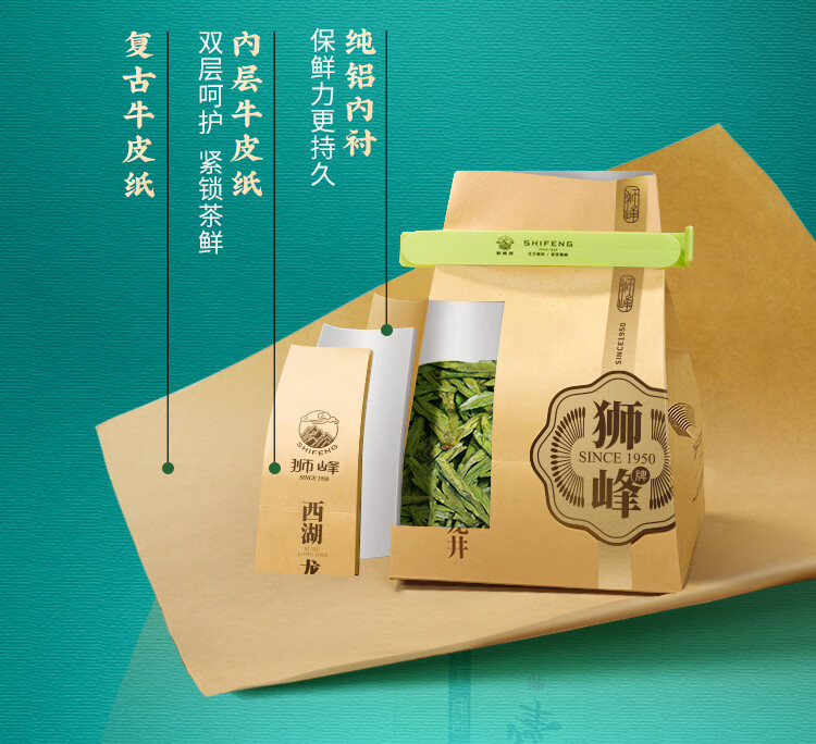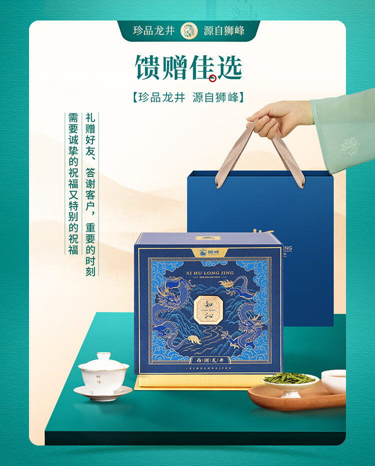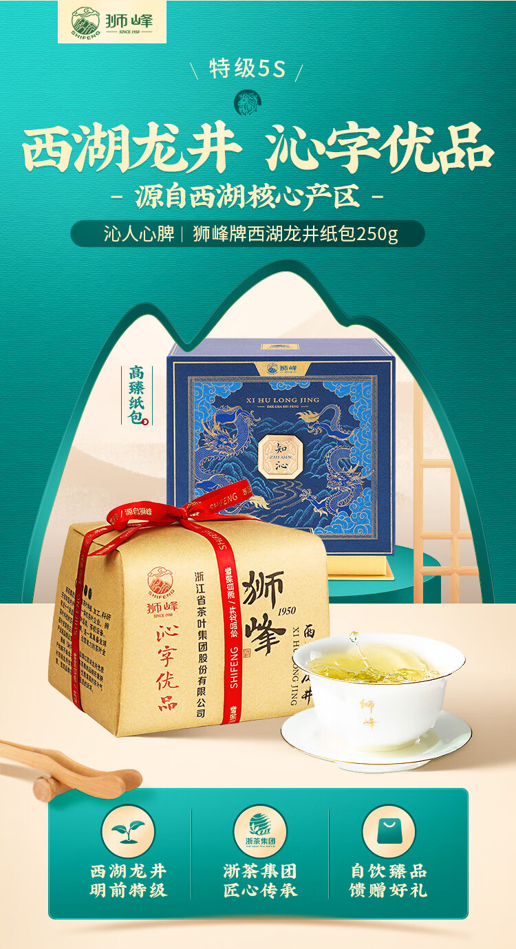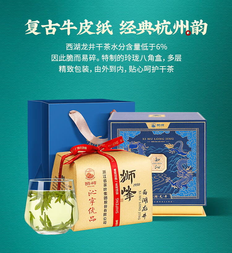 狮峰牌2026年新茶上市绿茶西湖龙井茶叶明前特级250g纸包礼盒装送长辈