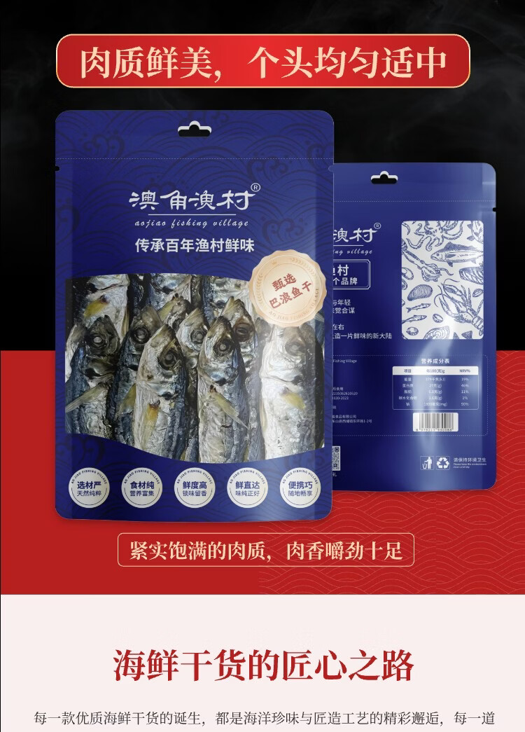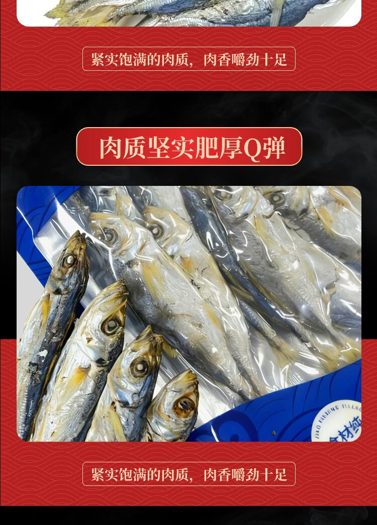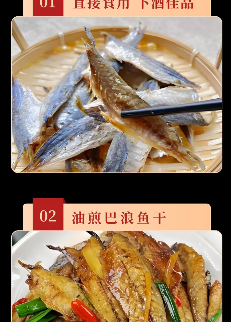 【珍干吧】福建特产即食熟巴浪鱼干海鲜干货海鱼干货小鱼干零食 黄尾巴浪鱼干238g*6袋