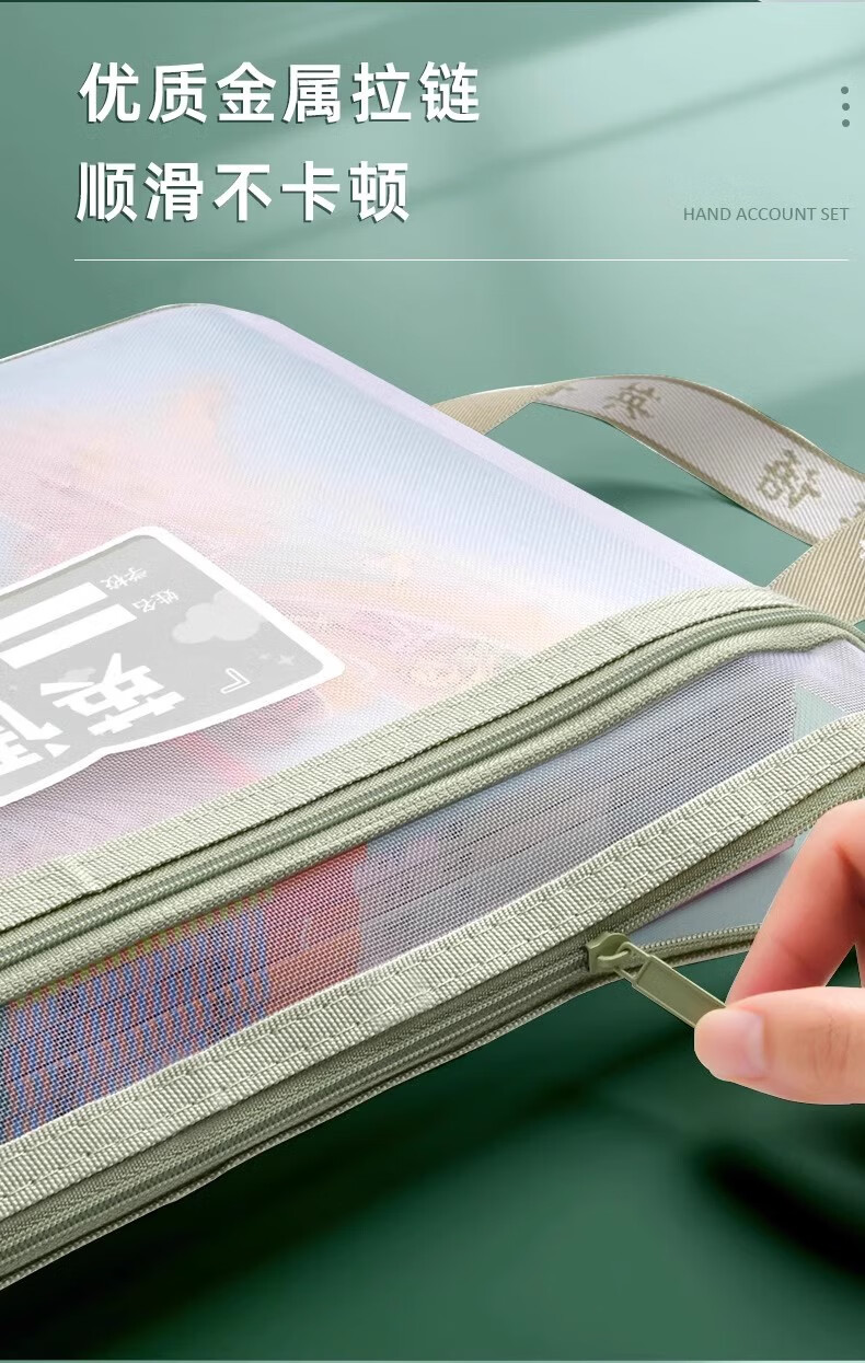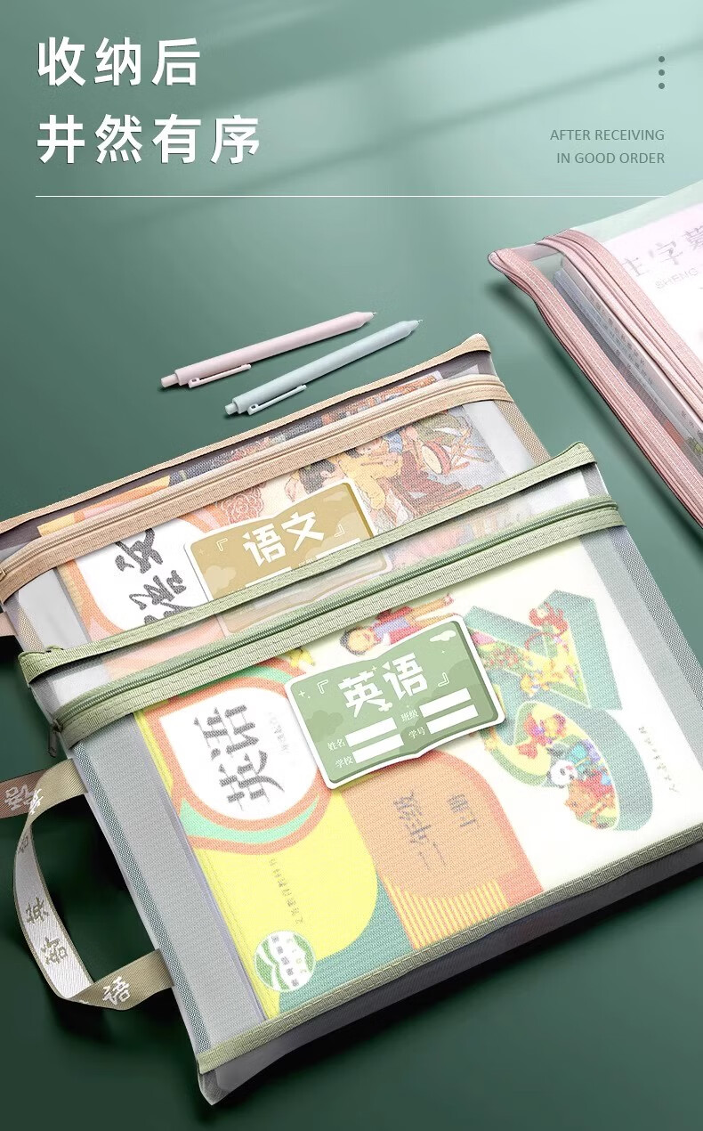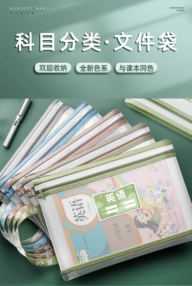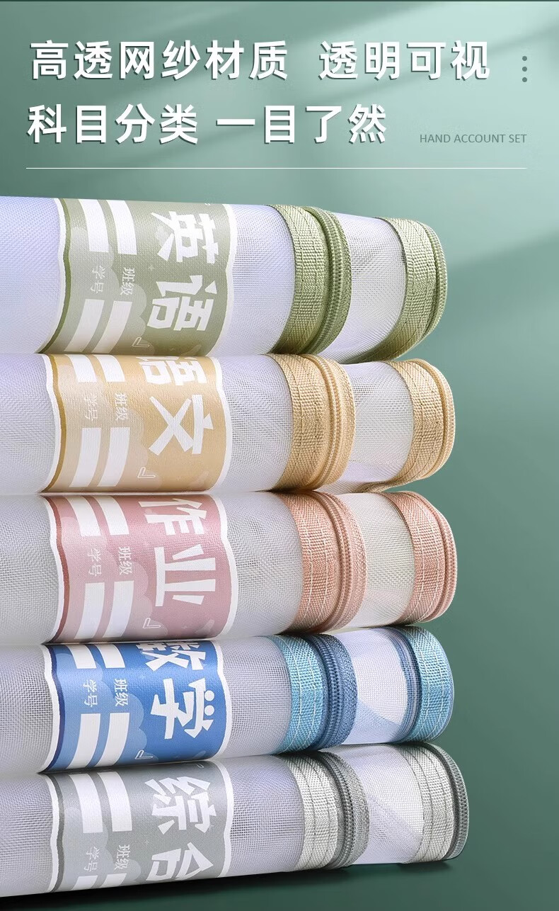 一树梨花 学科科目分类文件袋 拉链式双层大容量小学生初高中生作业课本手提袋透明网纱拎书资料试卷收纳袋 【老师推荐】双层/5个装/语+数+英+作业+综合