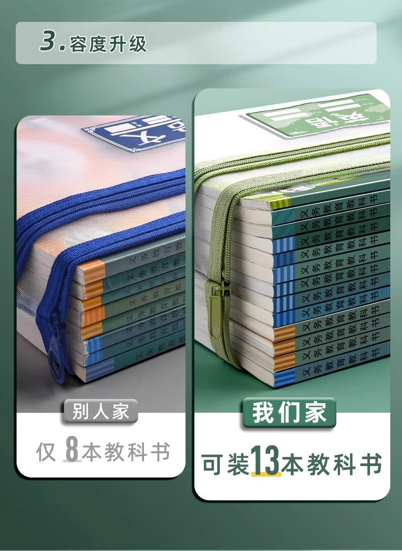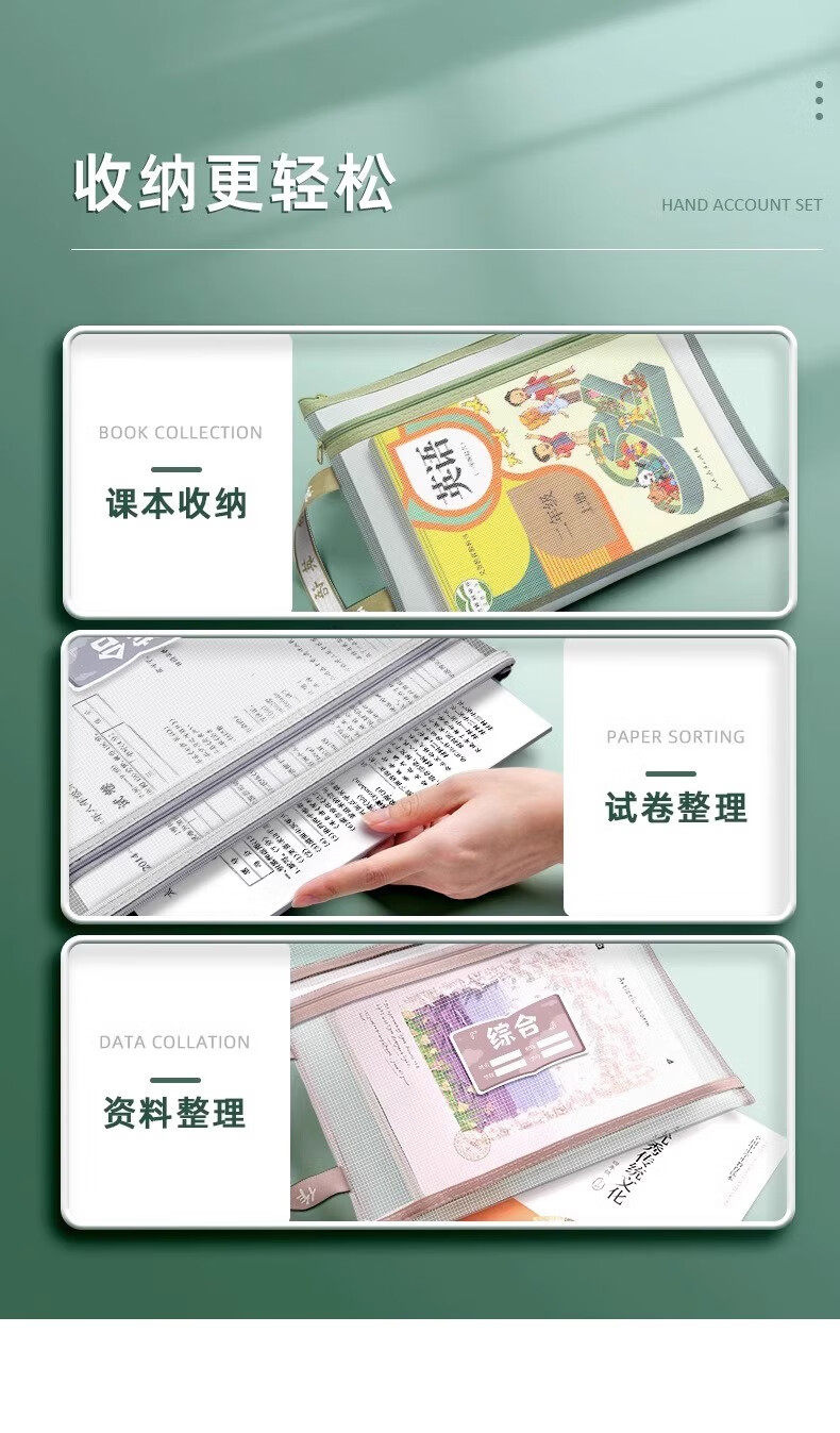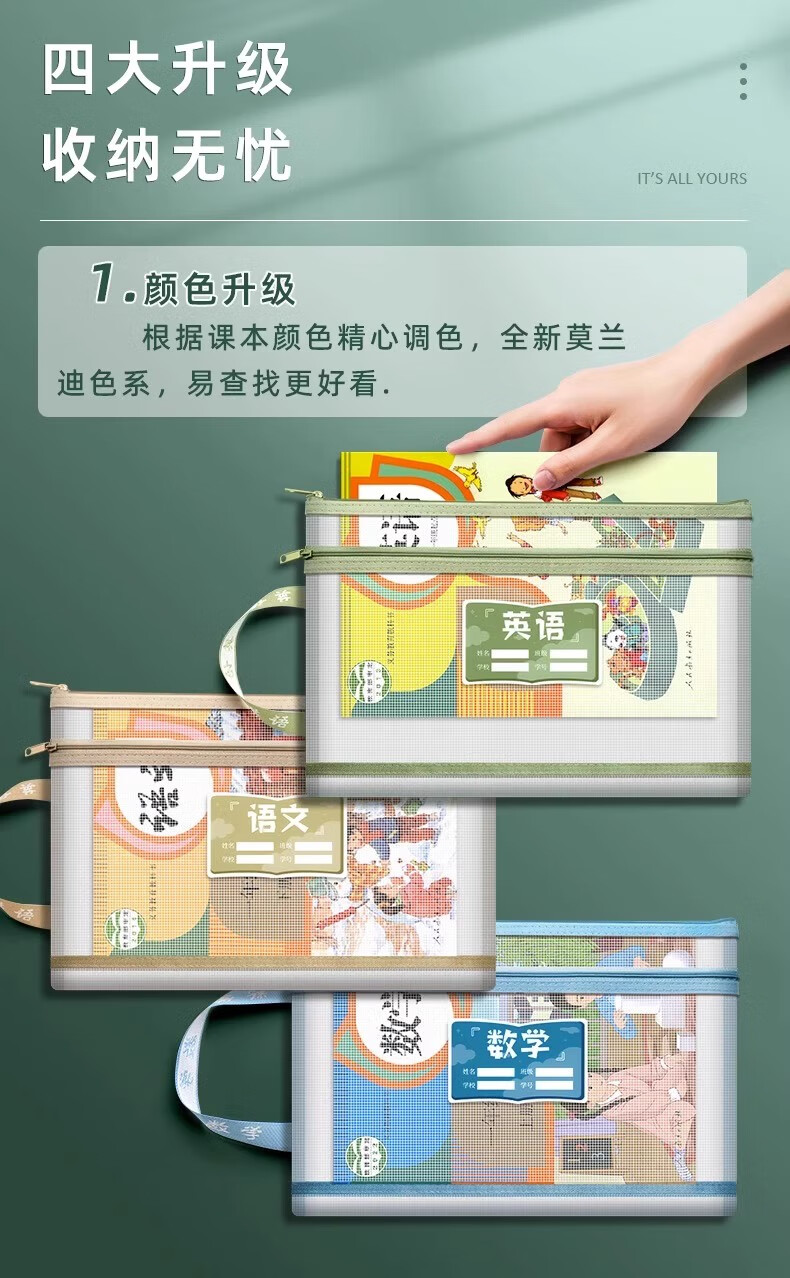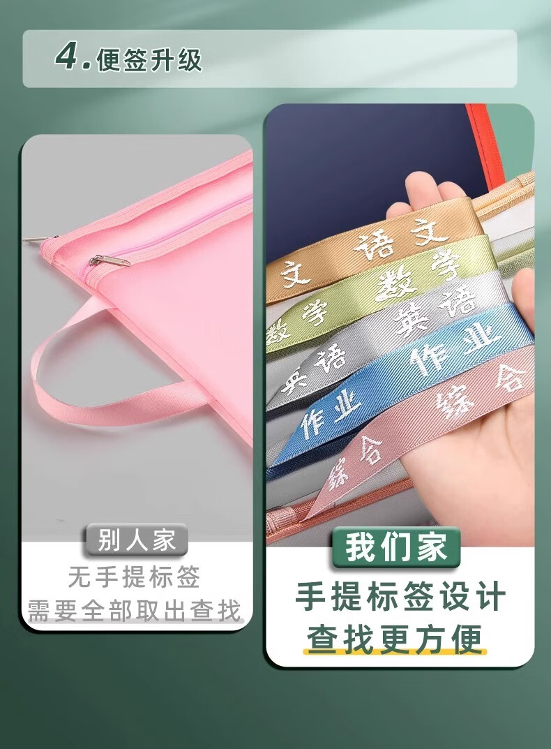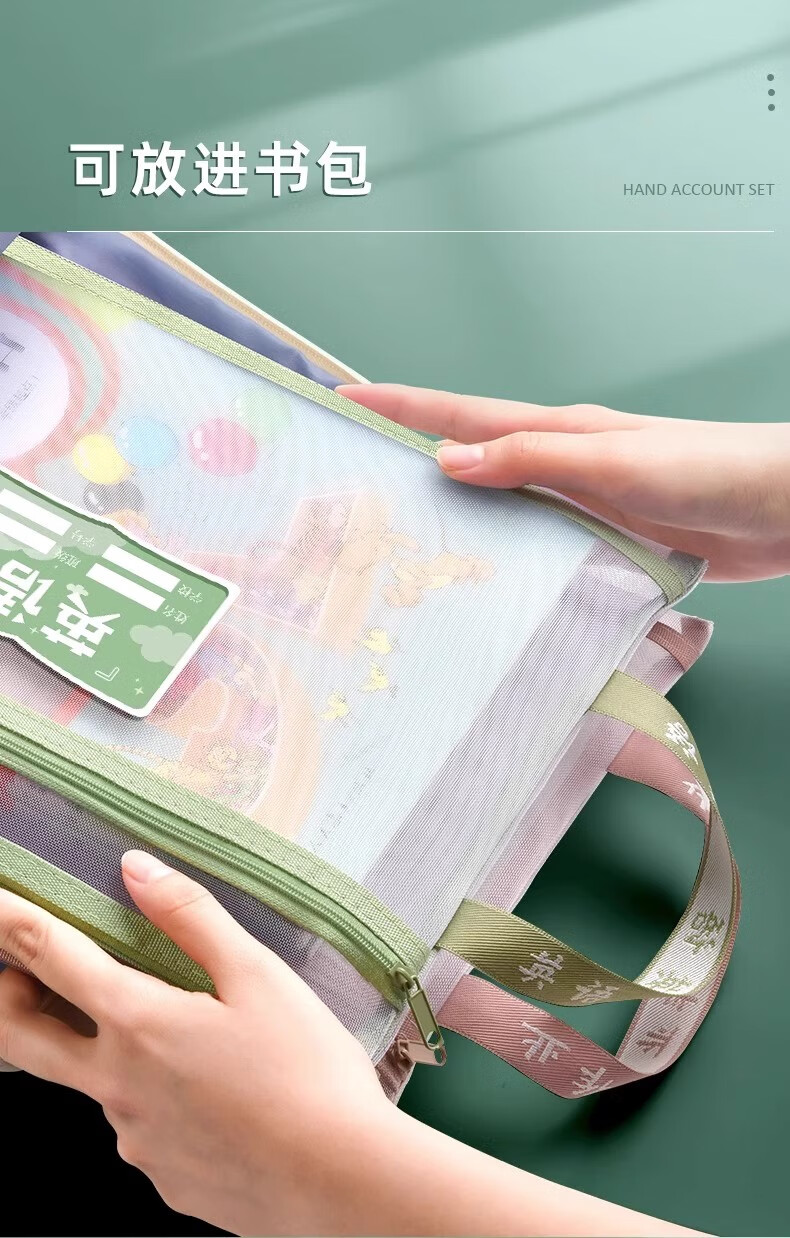 一树梨花 学科科目分类文件袋 拉链式双层大容量小学生初高中生作业课本手提袋透明网纱拎书资料试卷收纳袋 【老师推荐】双层/5个装/语+数+英+作业+综合