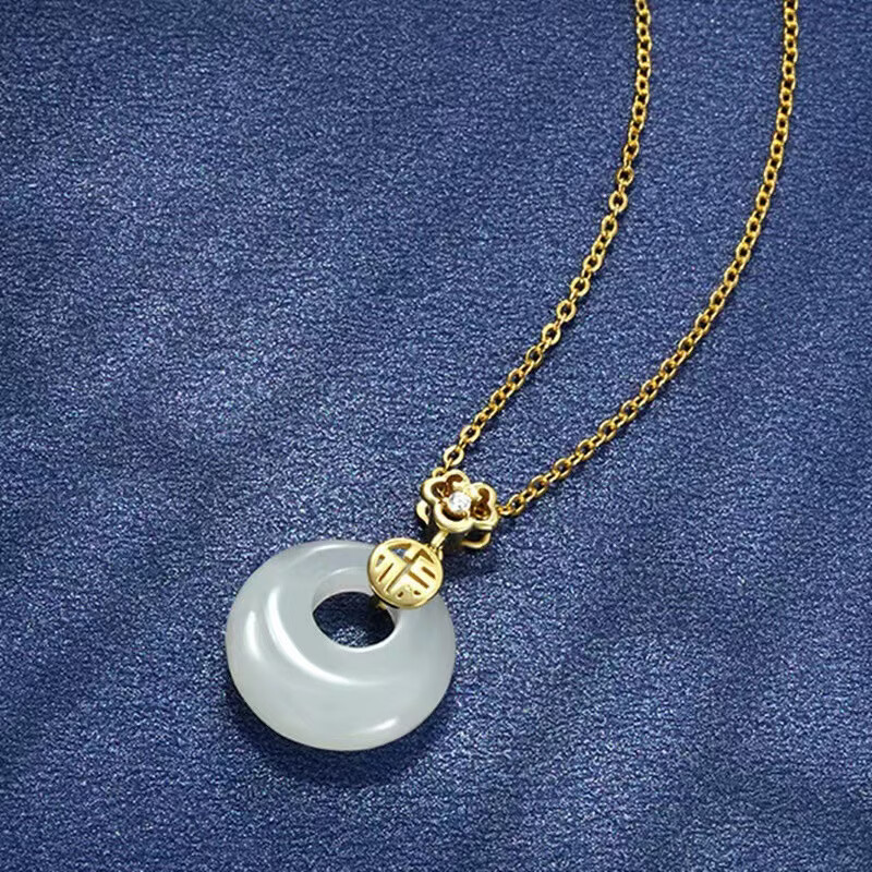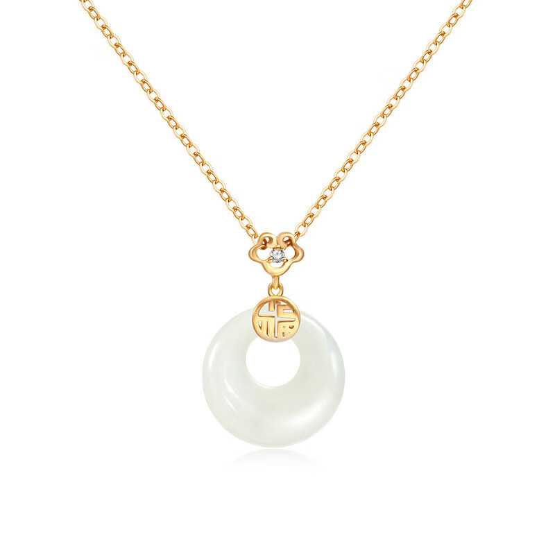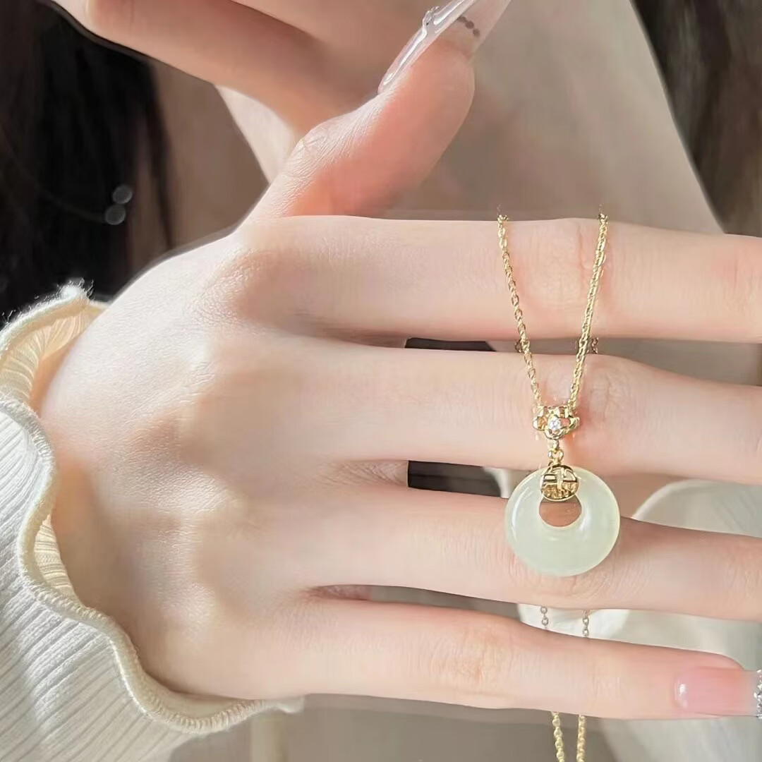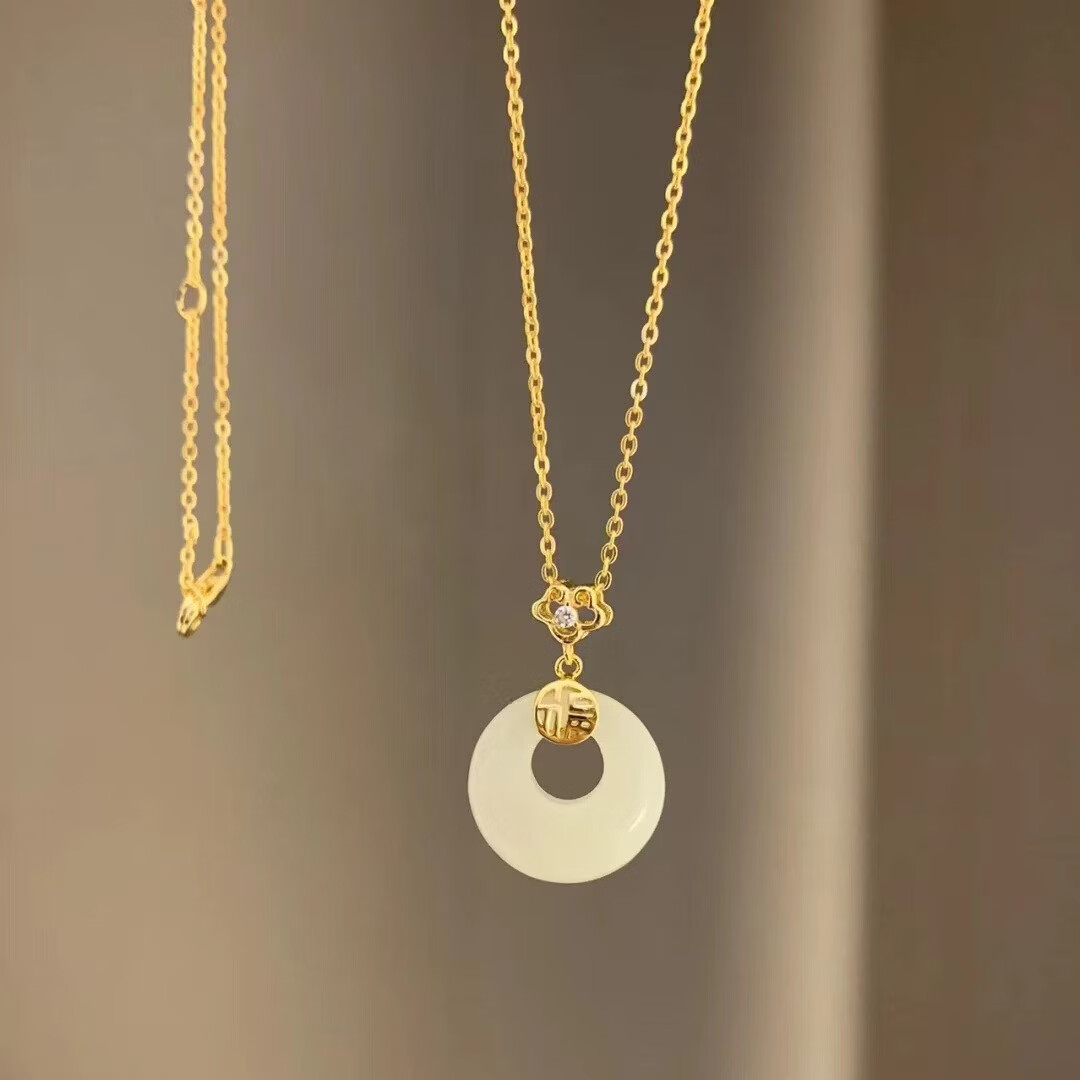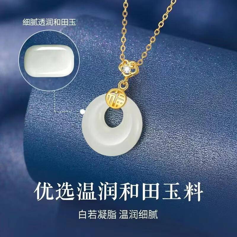 S925和田玉平安扣项链女新中式民族古风小众高级感和田玉首饰 黄金色【白玉髓】 925银