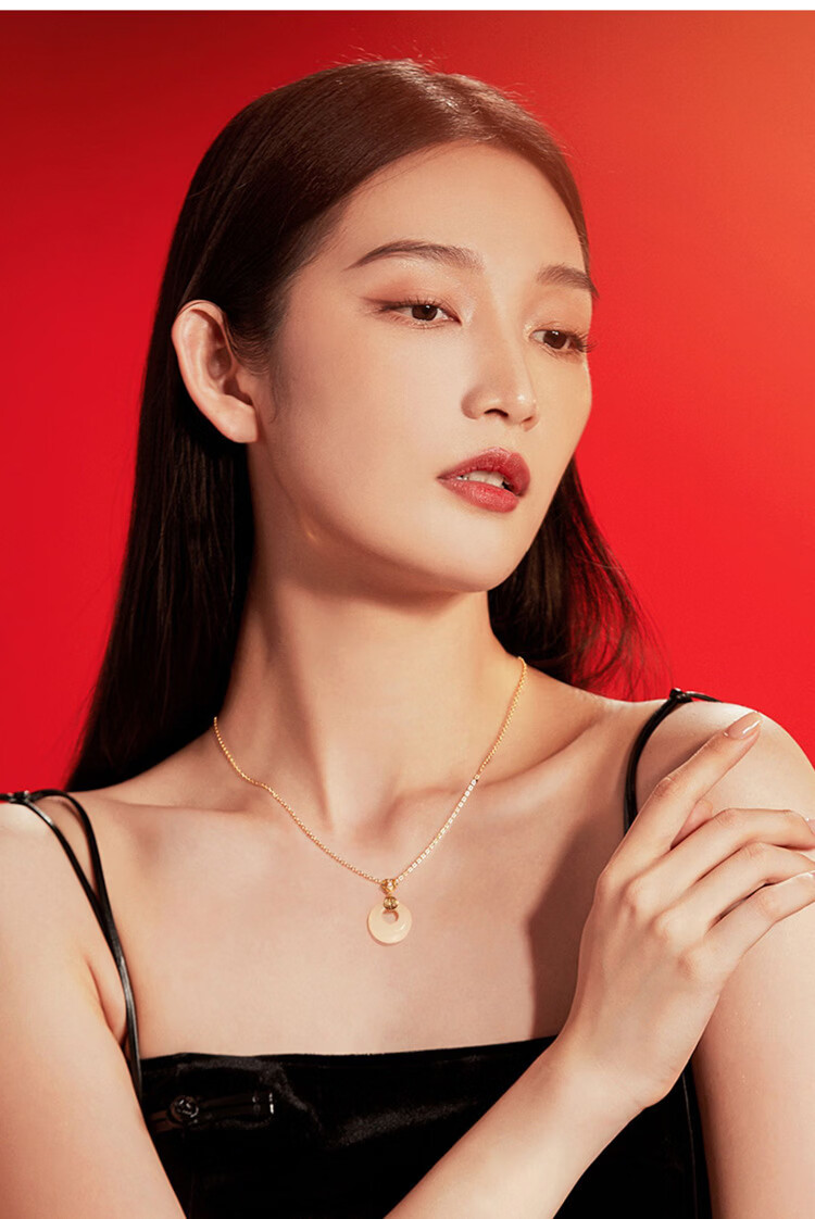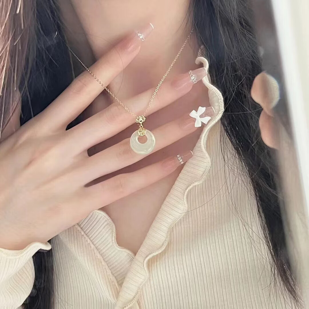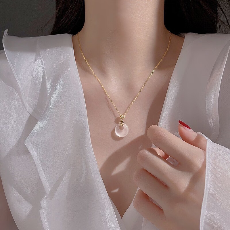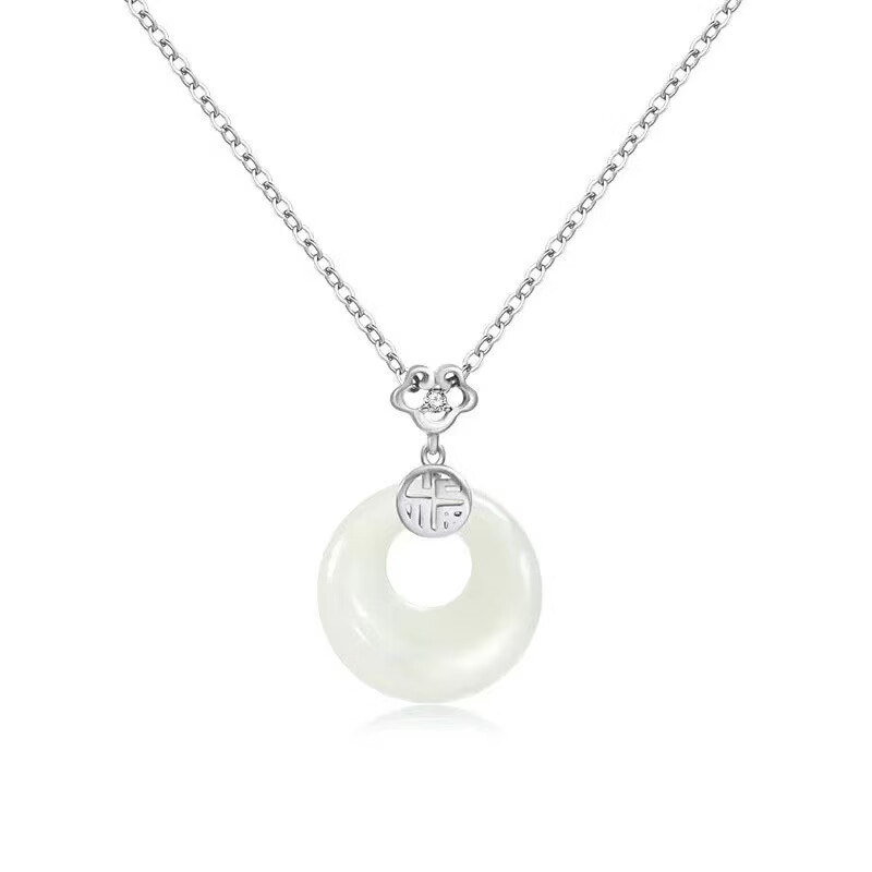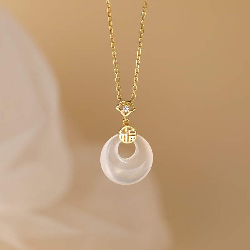 S925和田玉平安扣项链女新中式民族古风小众高级感和田玉首饰 黄金色【白玉髓】 925银