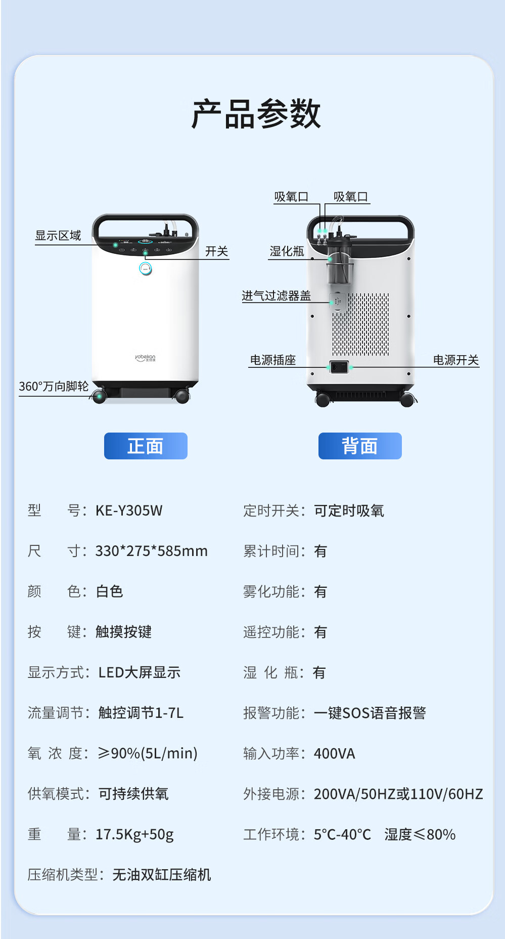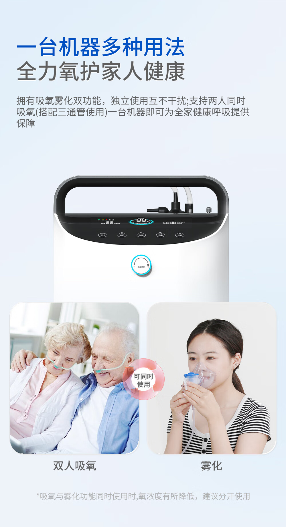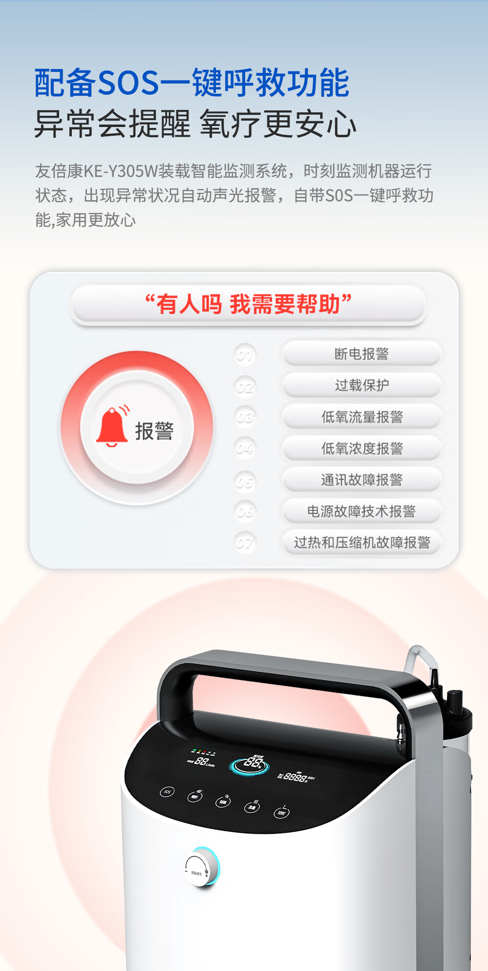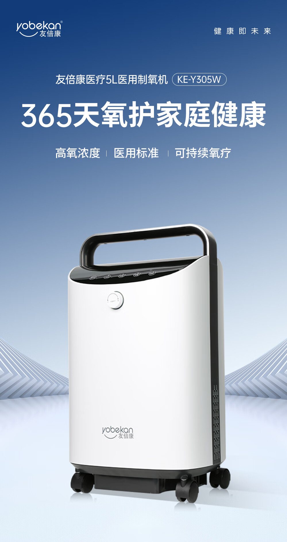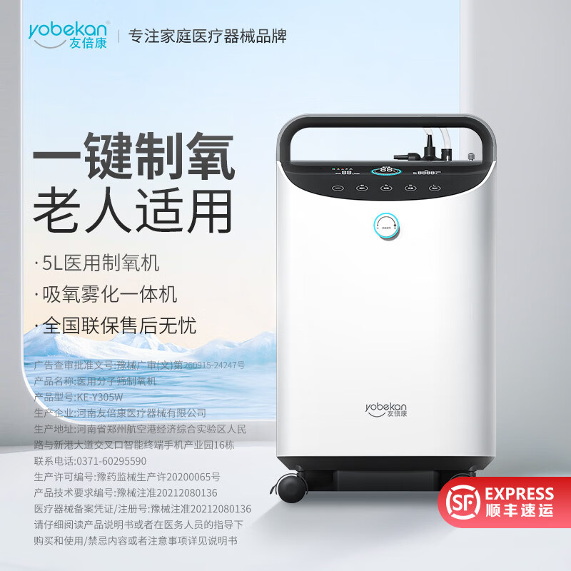 友倍康(yobekan)5L升医用制氧机一体机老人孕妇吸氧机家用氧气机带雾化KE-Y305W 【5L院线高端款】Ai智能调节流量+语音交互