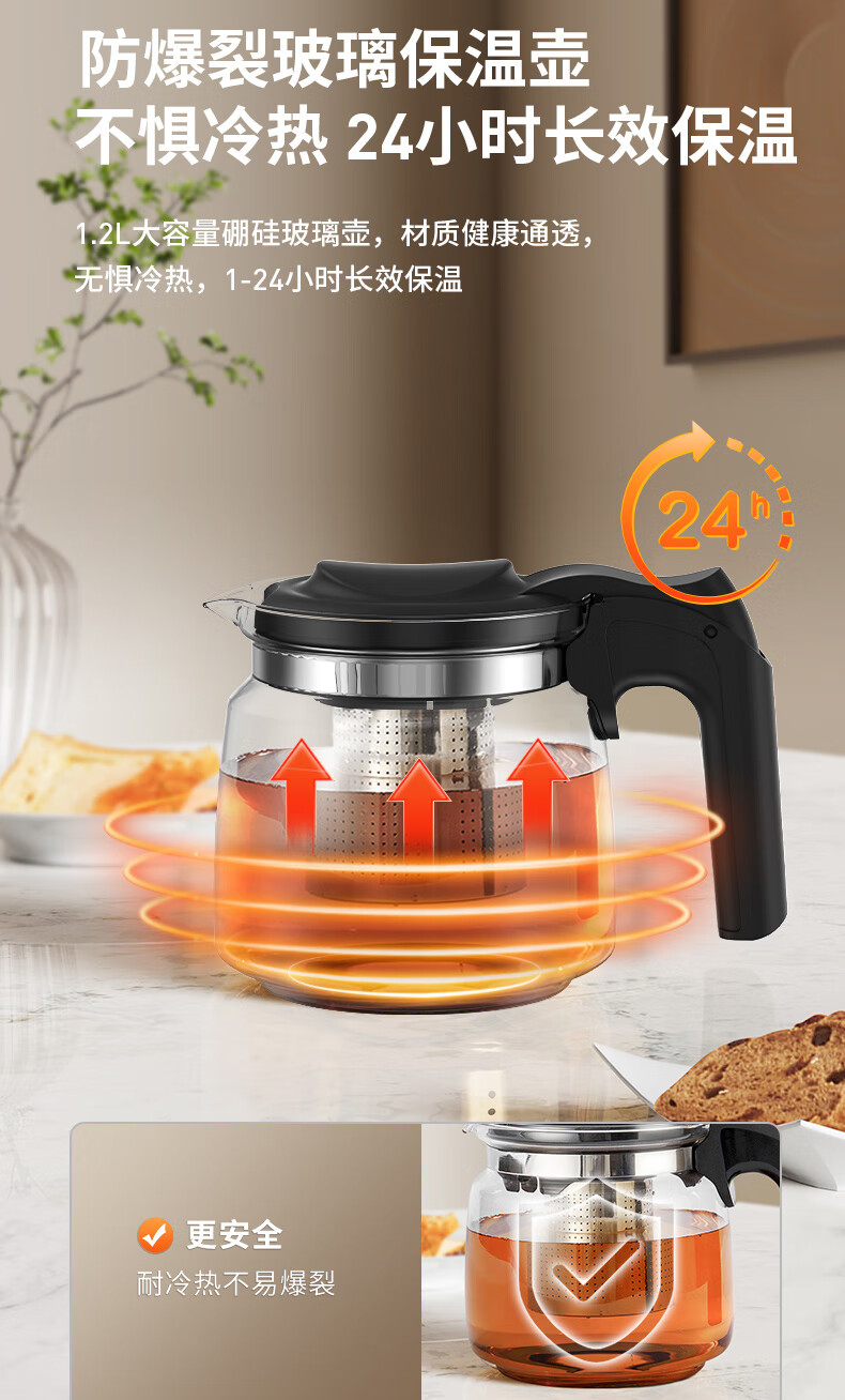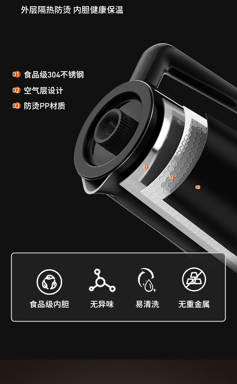 摩飞电器(Morphyrichards) 电热水壶便携式烧水壶旅行保温电热水杯316不锈钢烧水杯密封调温MR6060 0.3L 椰奶白