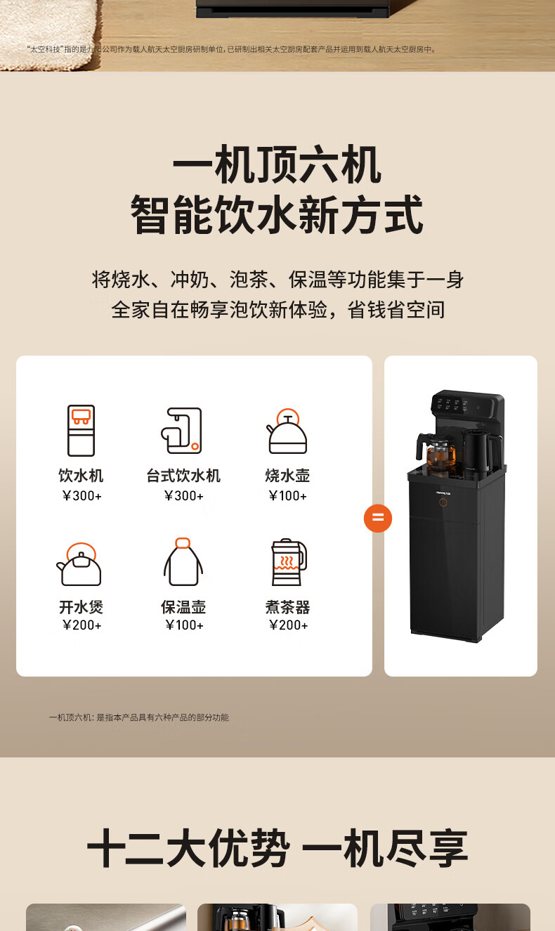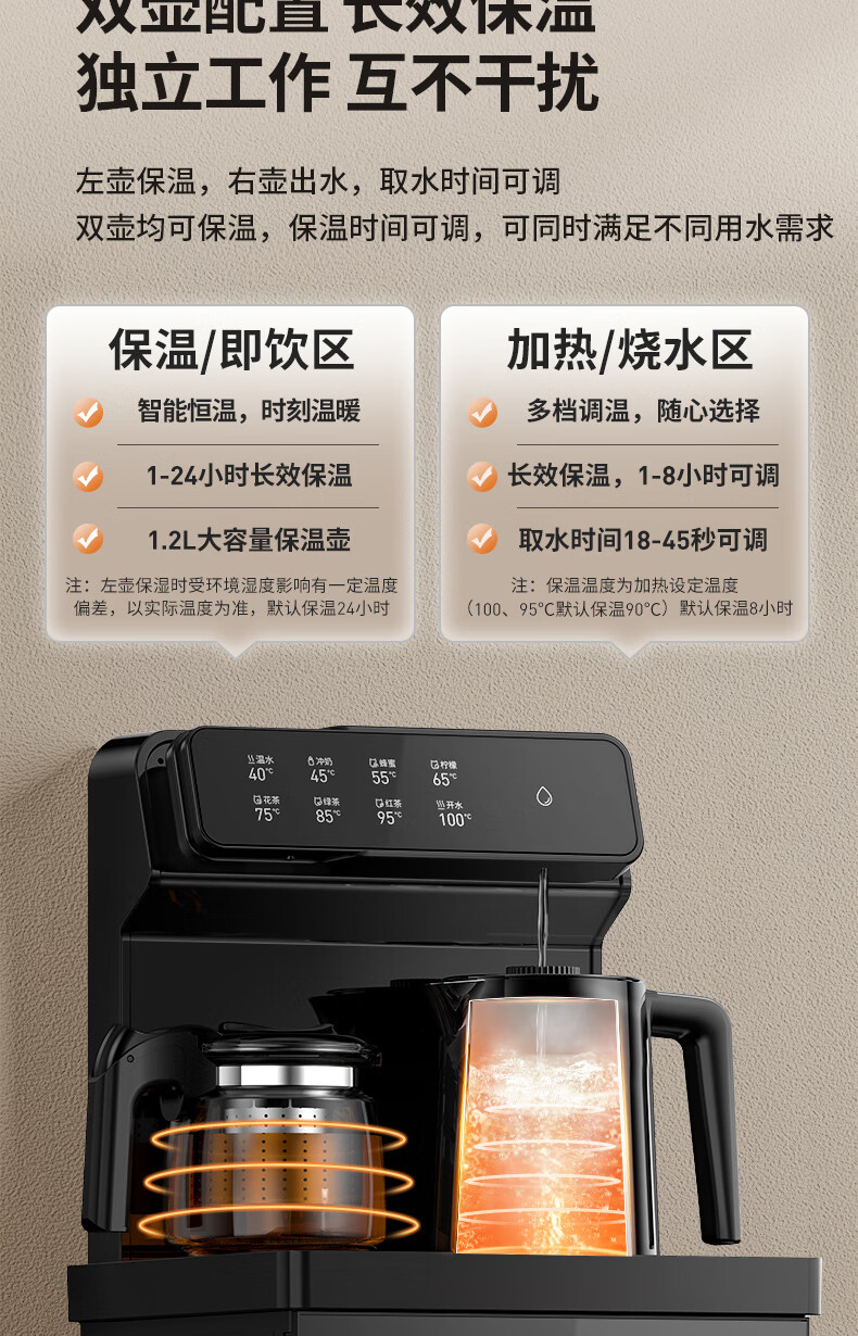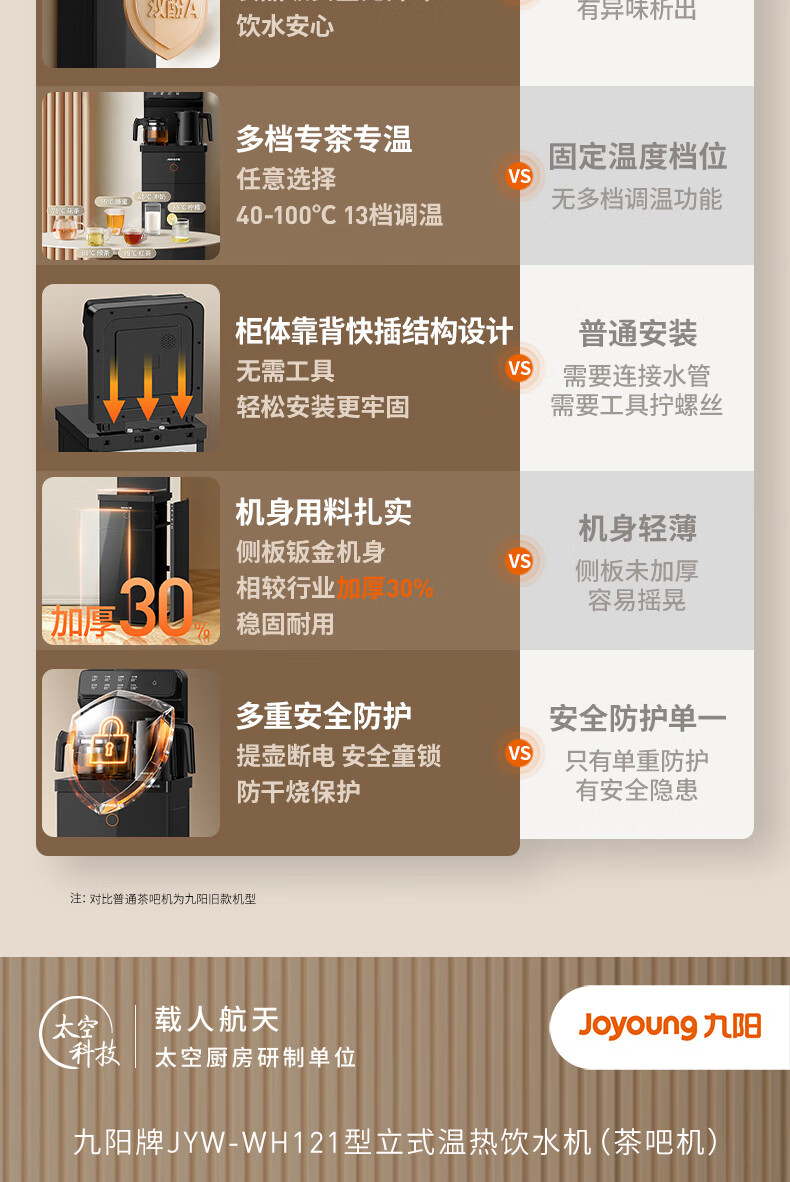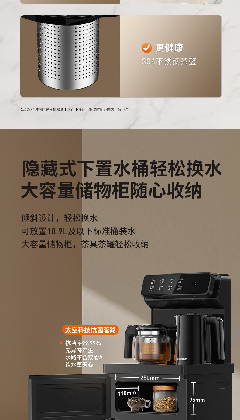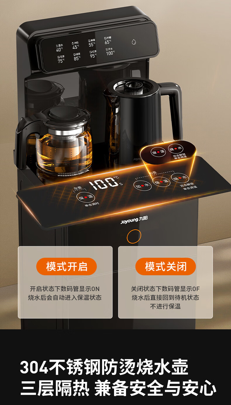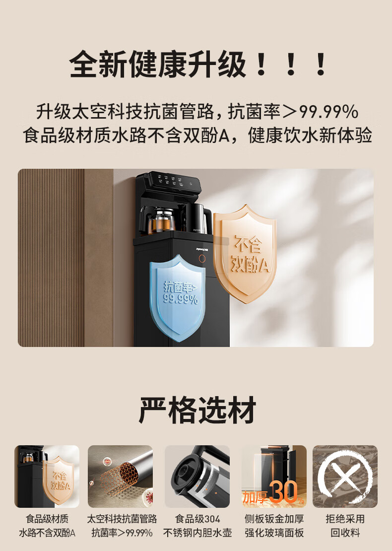 九阳(Joyoung)茶吧机家用高端客厅用立式智能制热烧水一体直饮饮水机推荐 椰子灰【语音+遥控+台面触控】 制热型 WH200