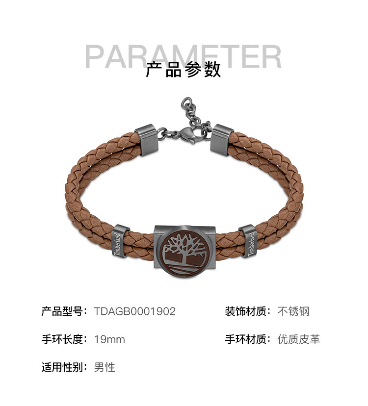 添柏岚(Timberland)男士手链手镯时尚潮流个性编织手绳首饰装饰手环送男友生日礼物 TDAGB0001901