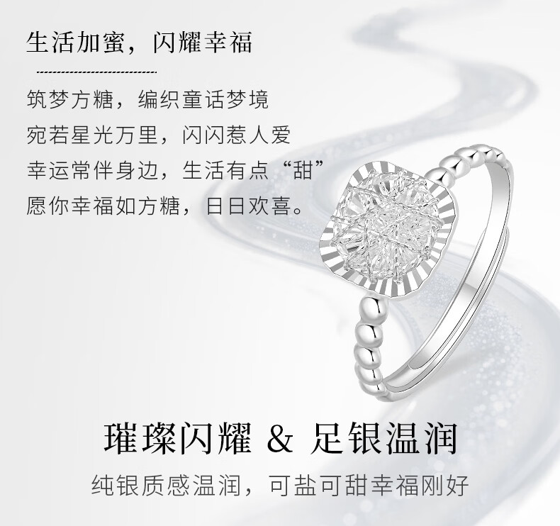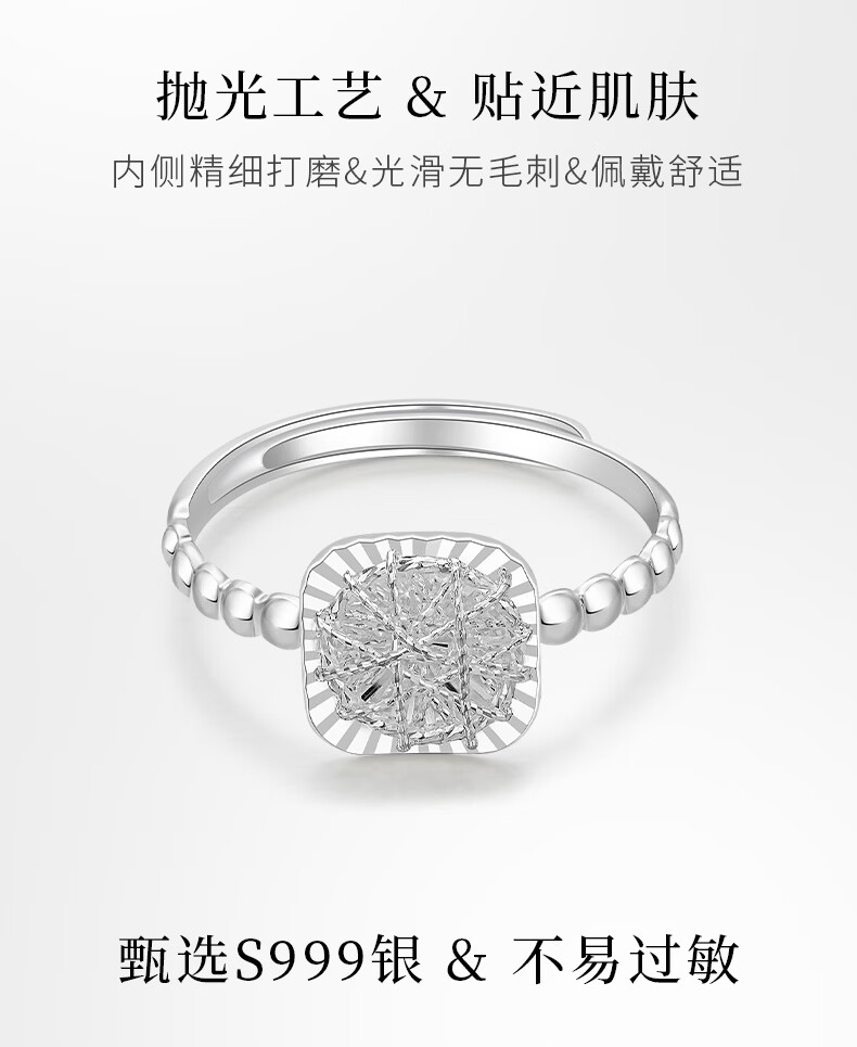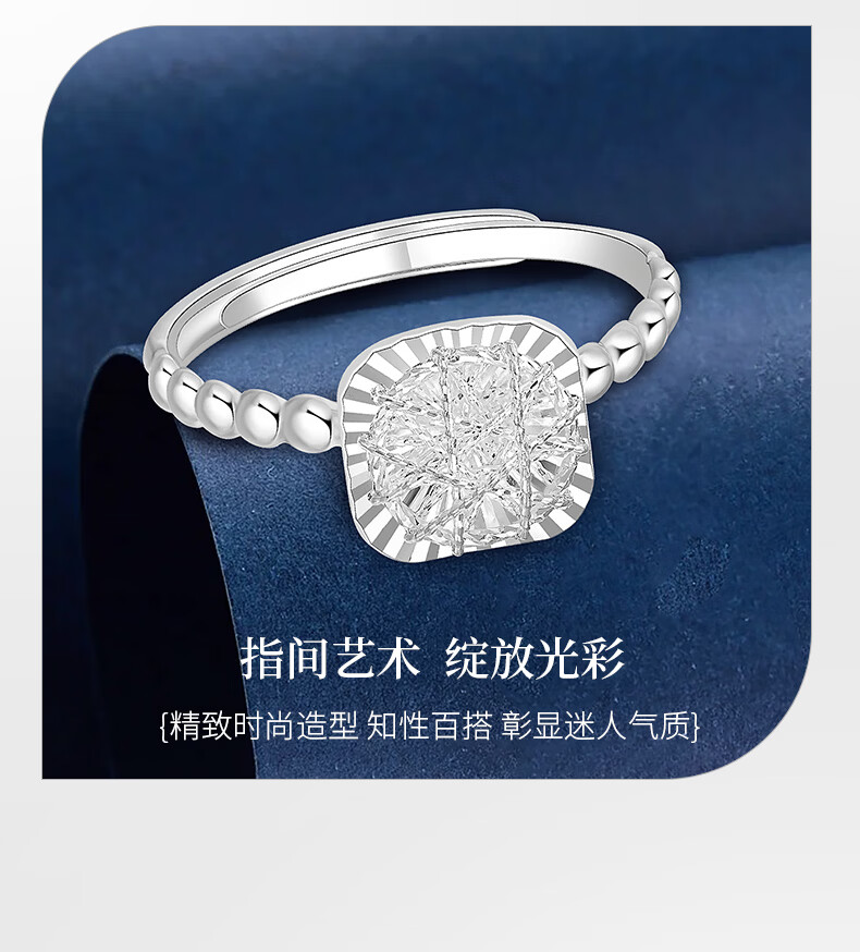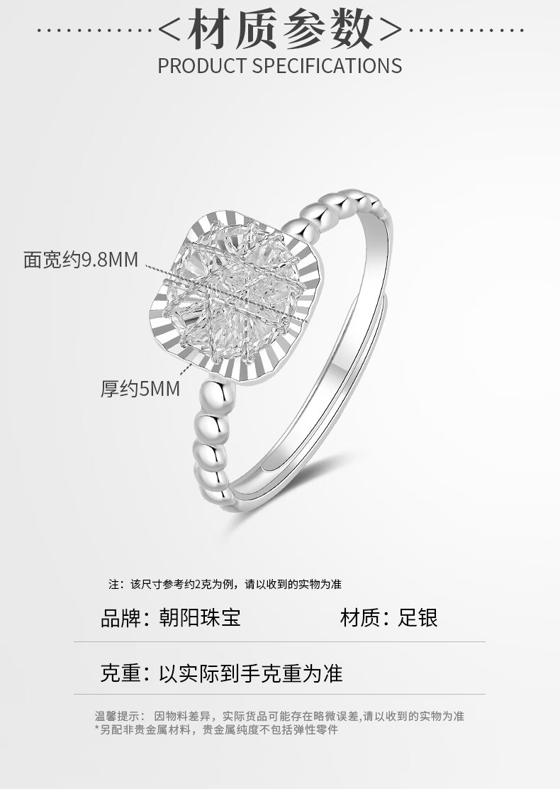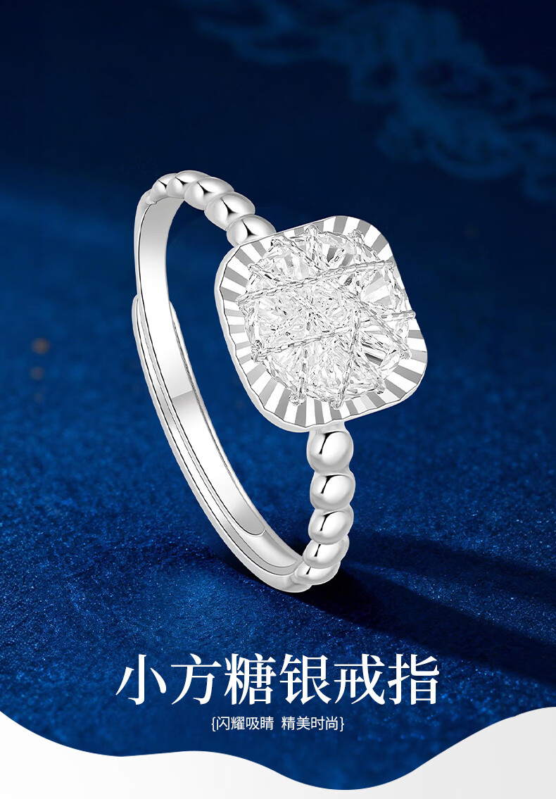 朝阳珠宝银戒指足银999纯银小方糖戒指开口女款送女友老婆纪念日生日礼物 【999银】方糖戒指-开口可调节