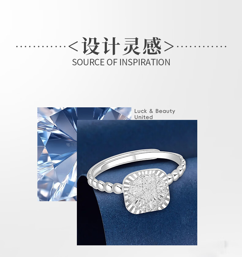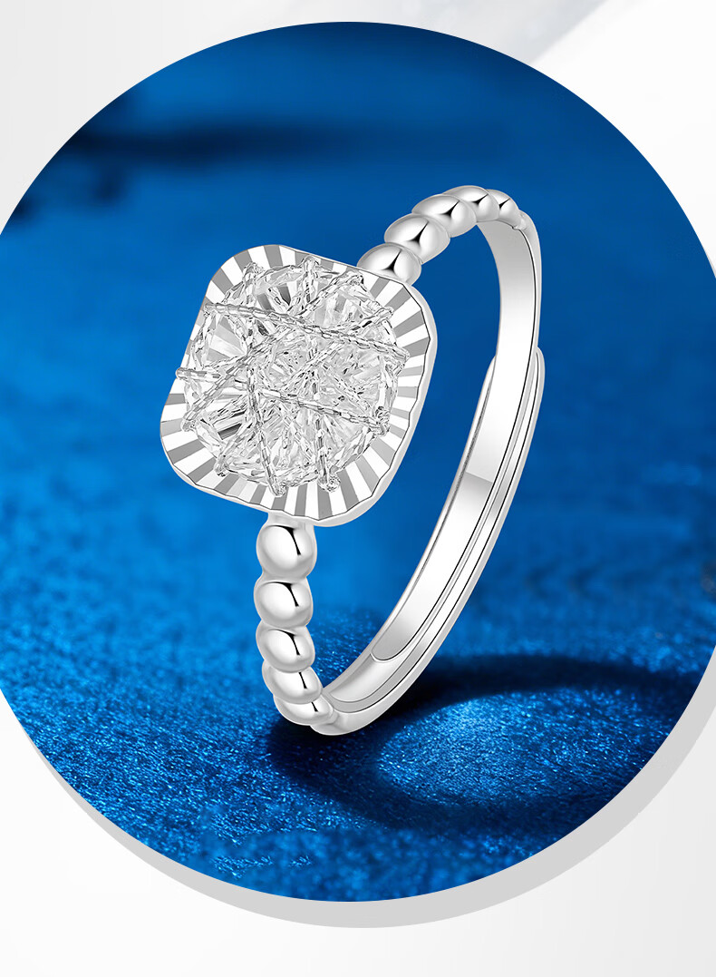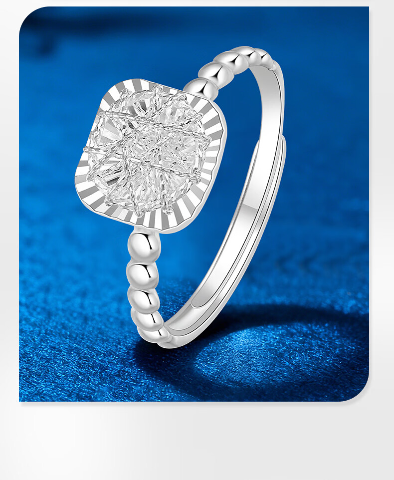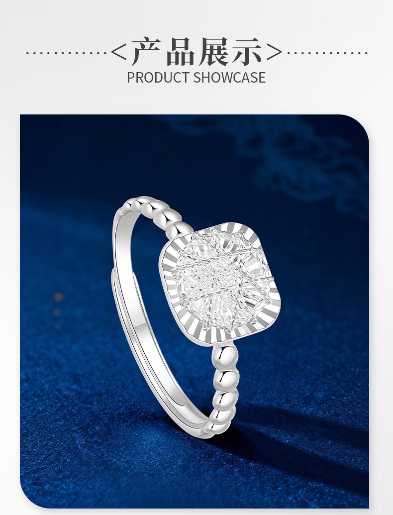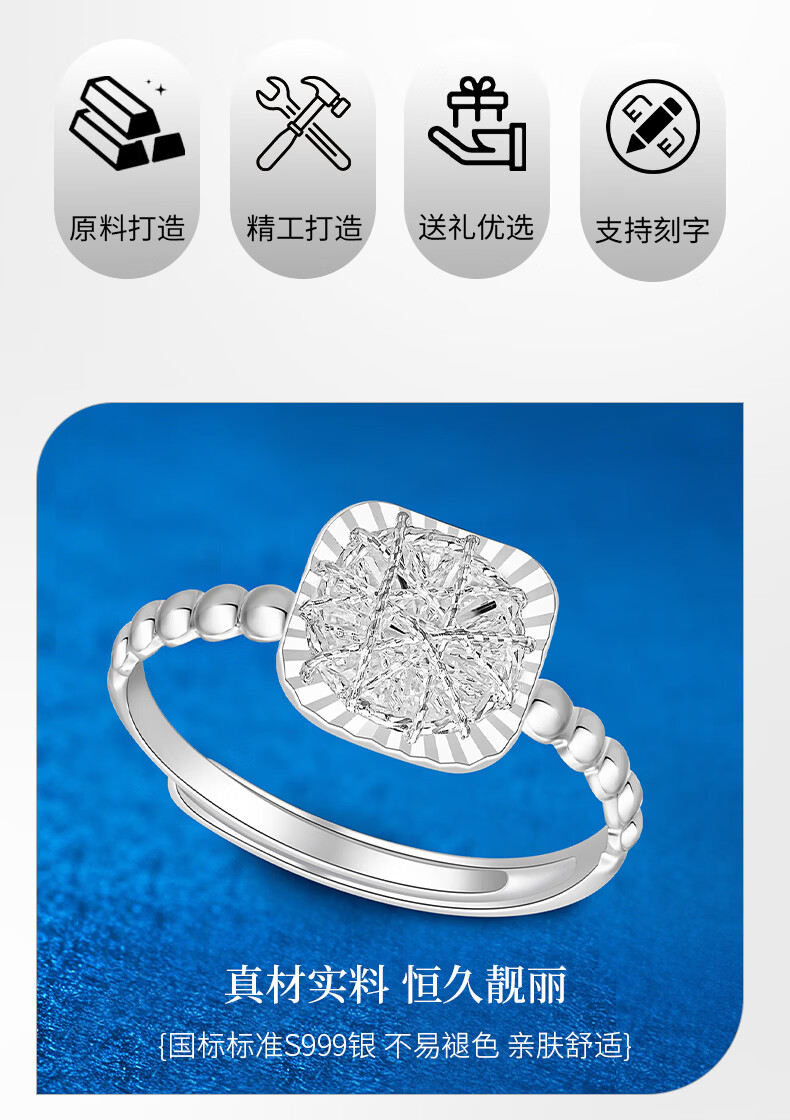 朝阳珠宝银戒指足银999纯银小方糖戒指开口女款送女友老婆纪念日生日礼物 【999银】方糖戒指-开口可调节