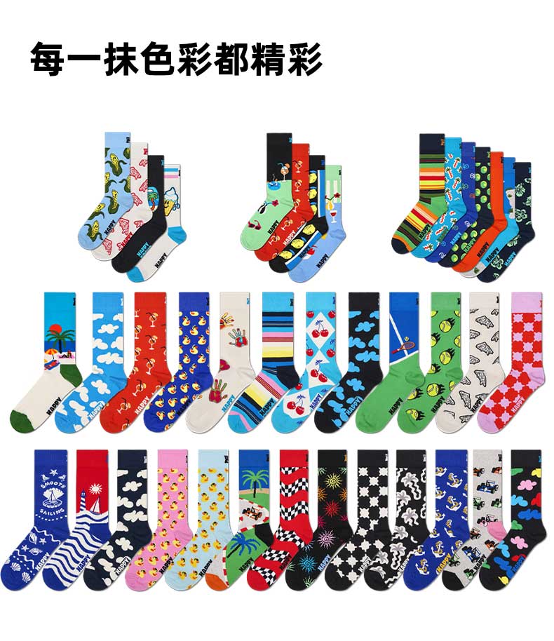 Happy Socks【25年新款】秋冬主题多巴胺礼盒袜子女男士袜运动袜时尚中筒袜 夏日之风 2双 M 36-40