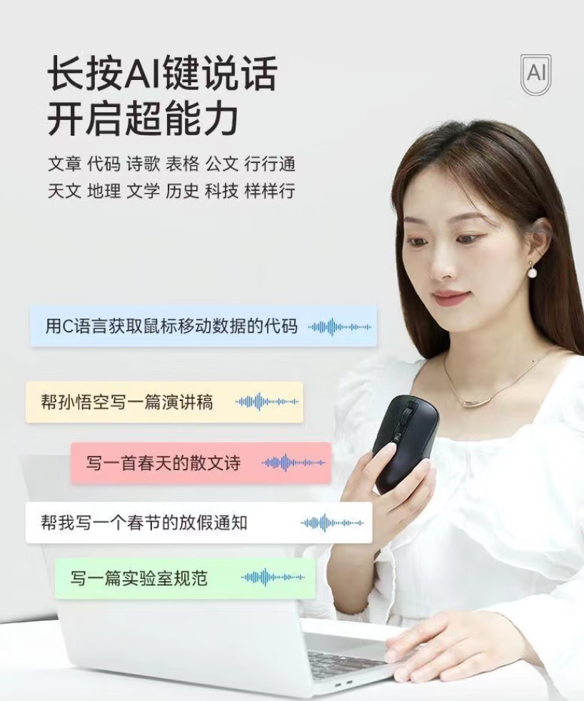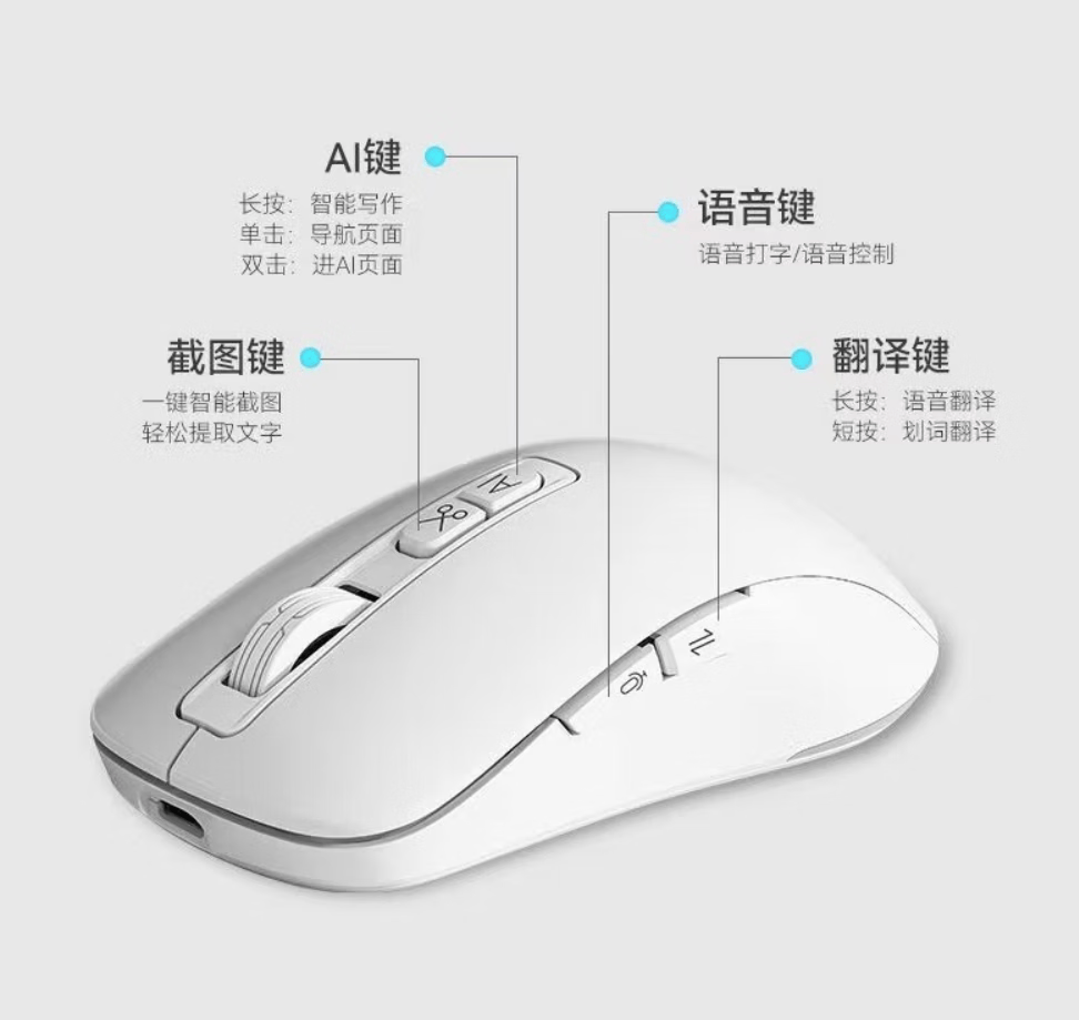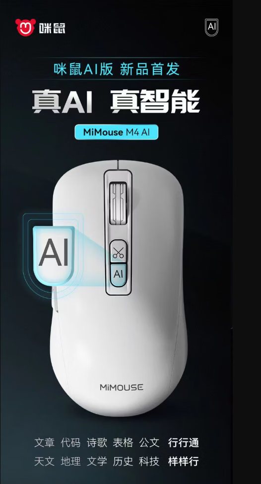 咪鼠科技(MiMouse)M4AI智能ai鼠标AI智能写作PPT语音打字翻译无线充电笔记本台式机电脑办公产品便携差旅 M4 AI黑色【热卖爆款 对称设计】