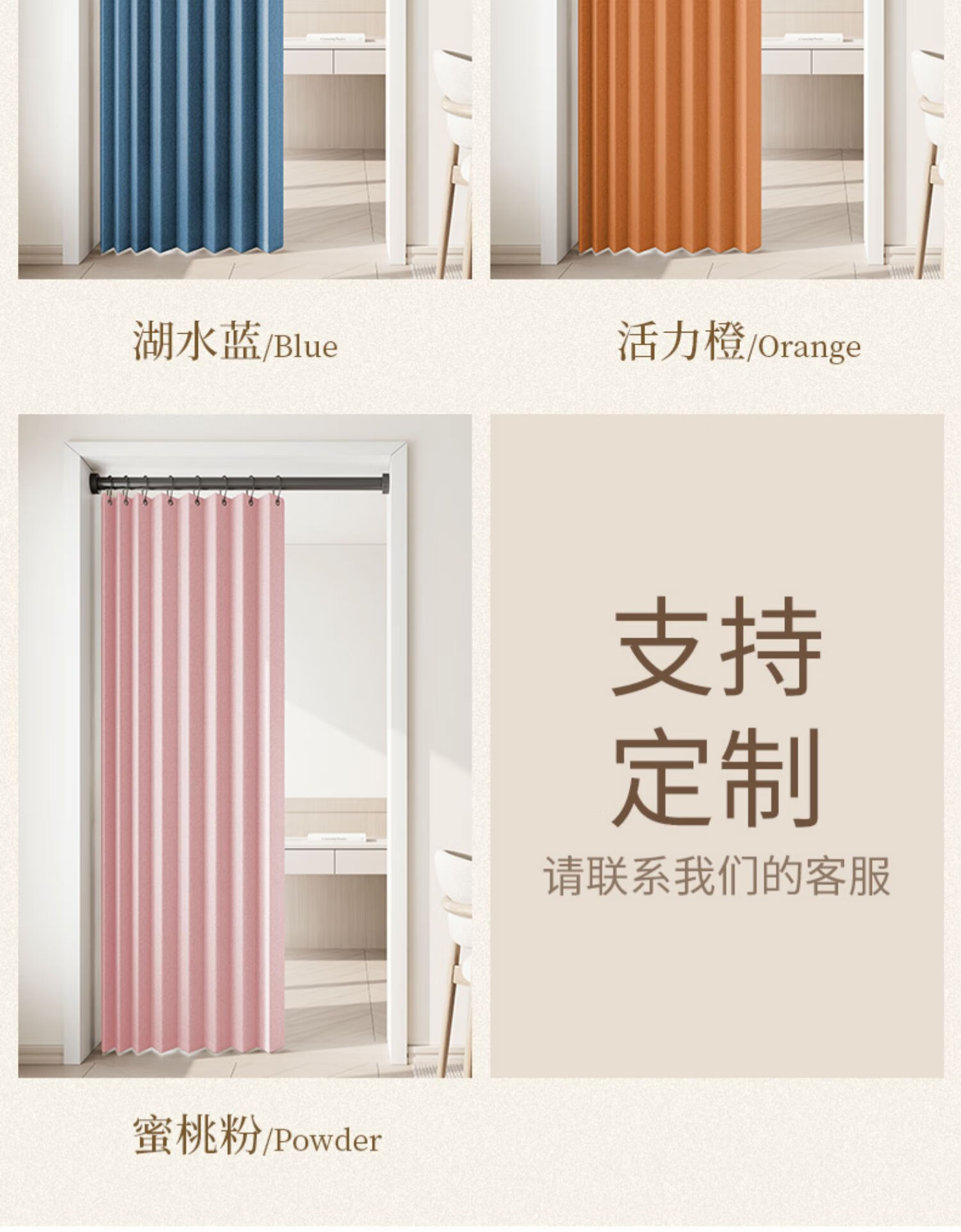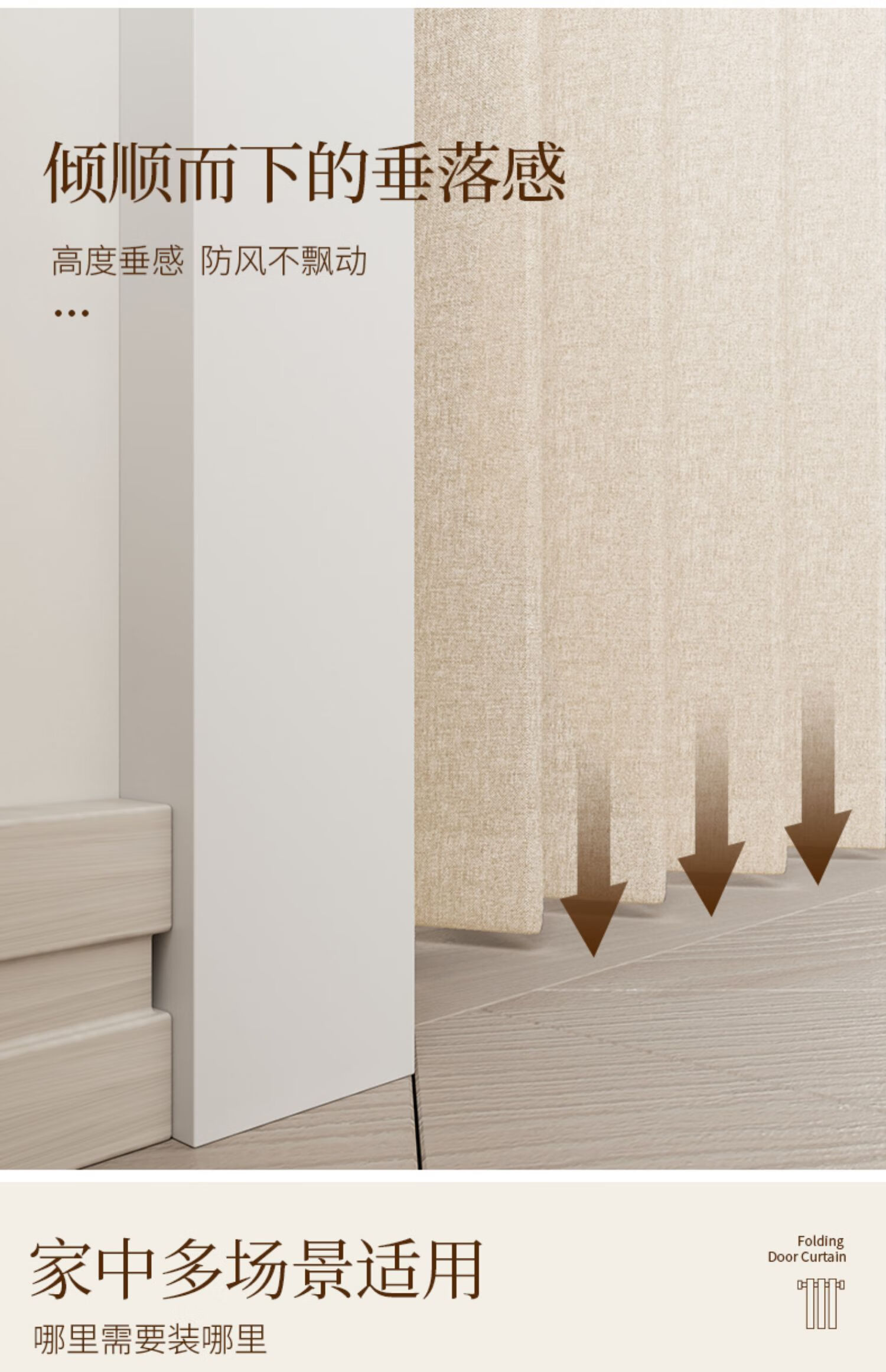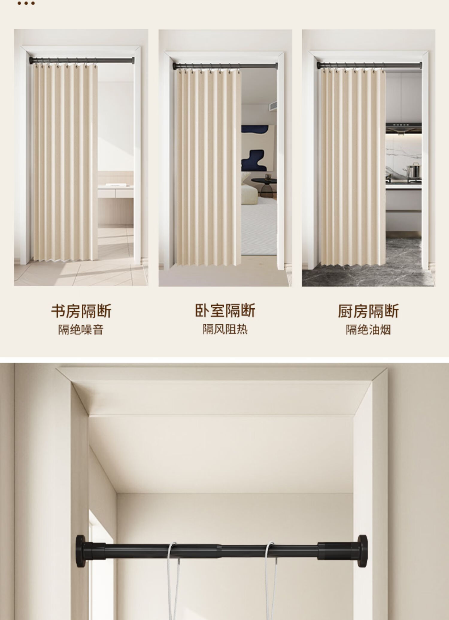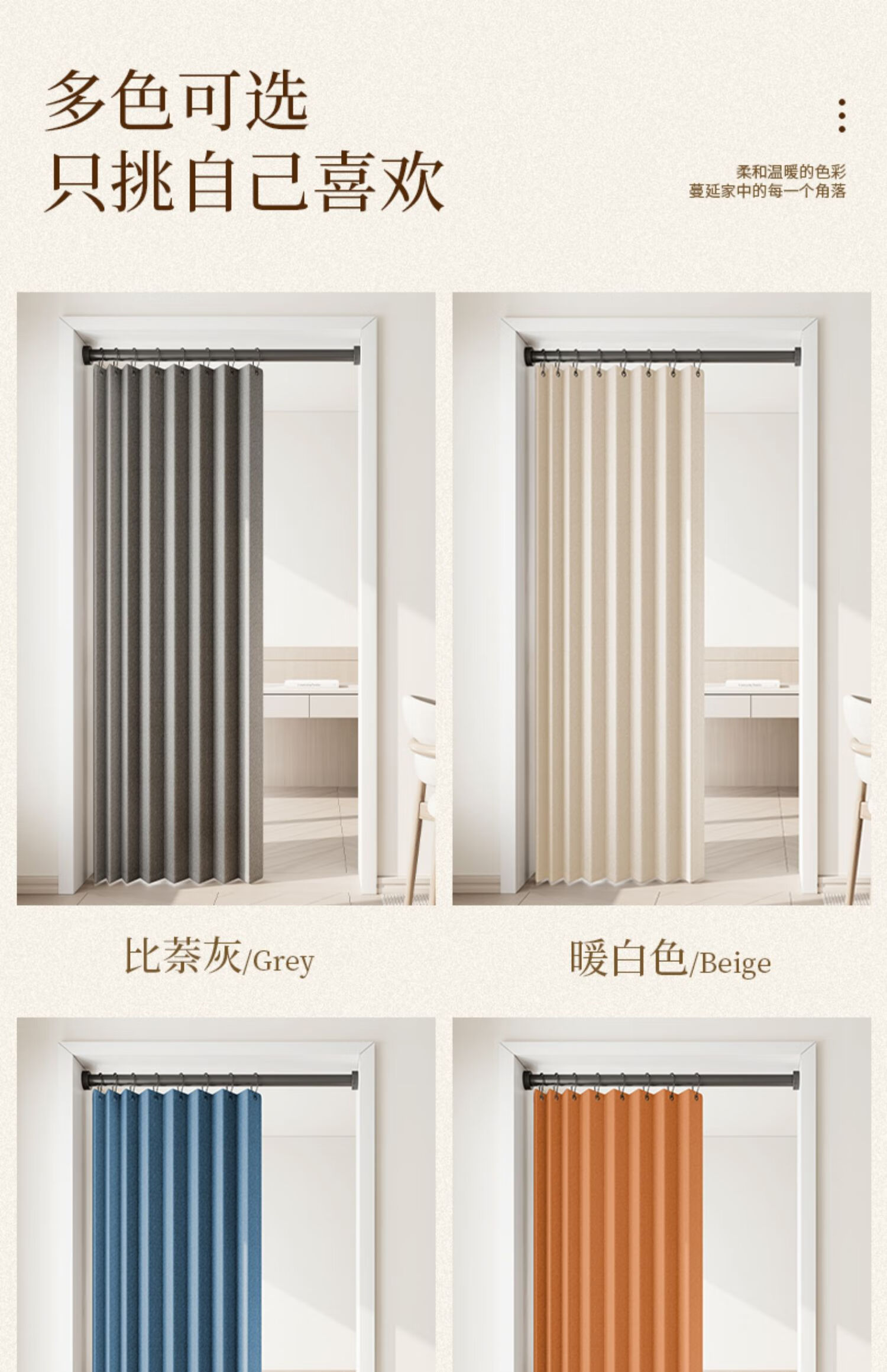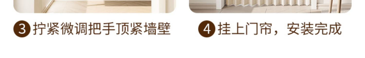 施香曼定制折叠门帘阻风风热加厚隔断帘卧室厨房遮挡帘免打孔家用简约 暖米色单帘 [适用175-195墙宽]200宽*200