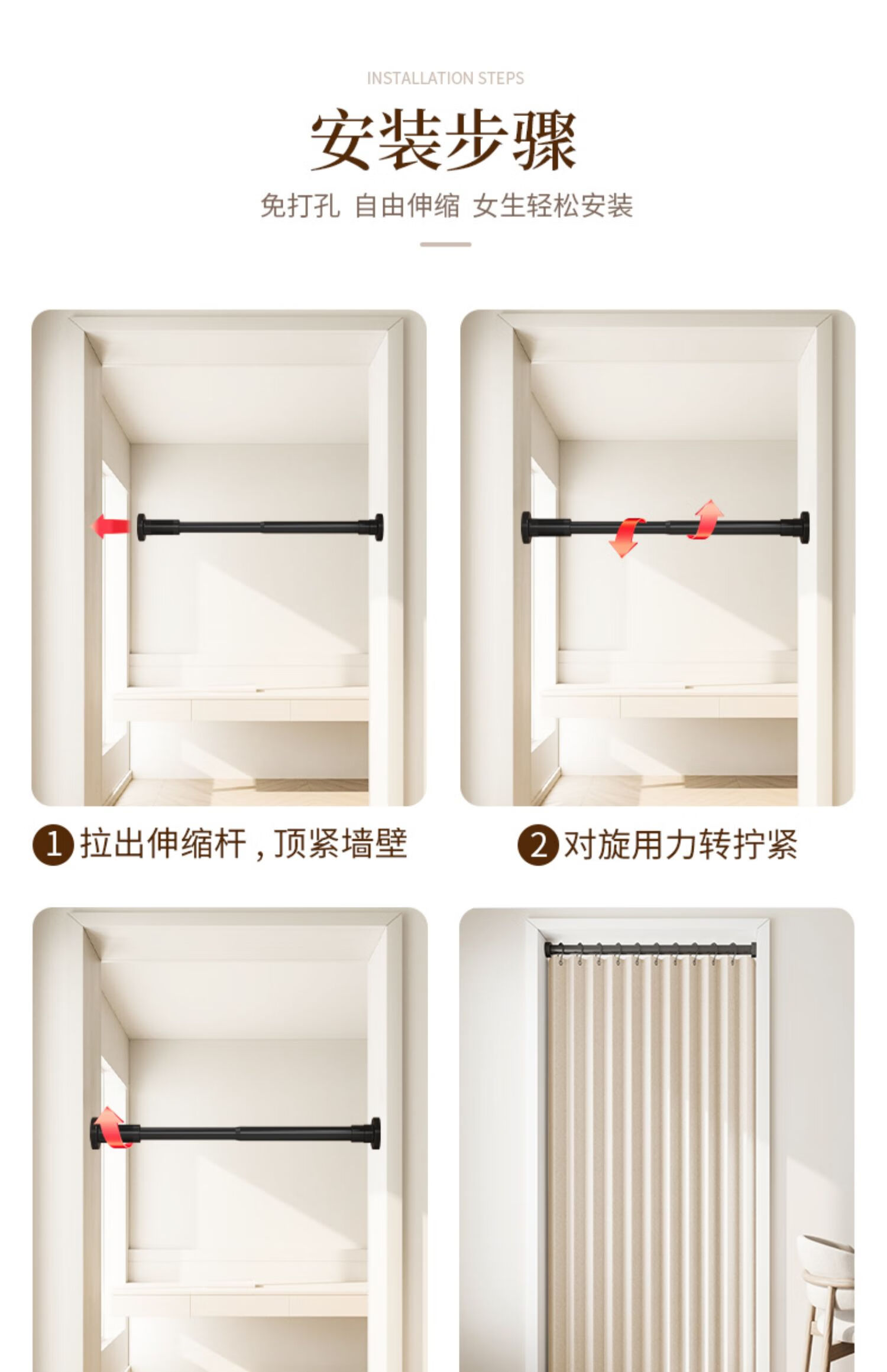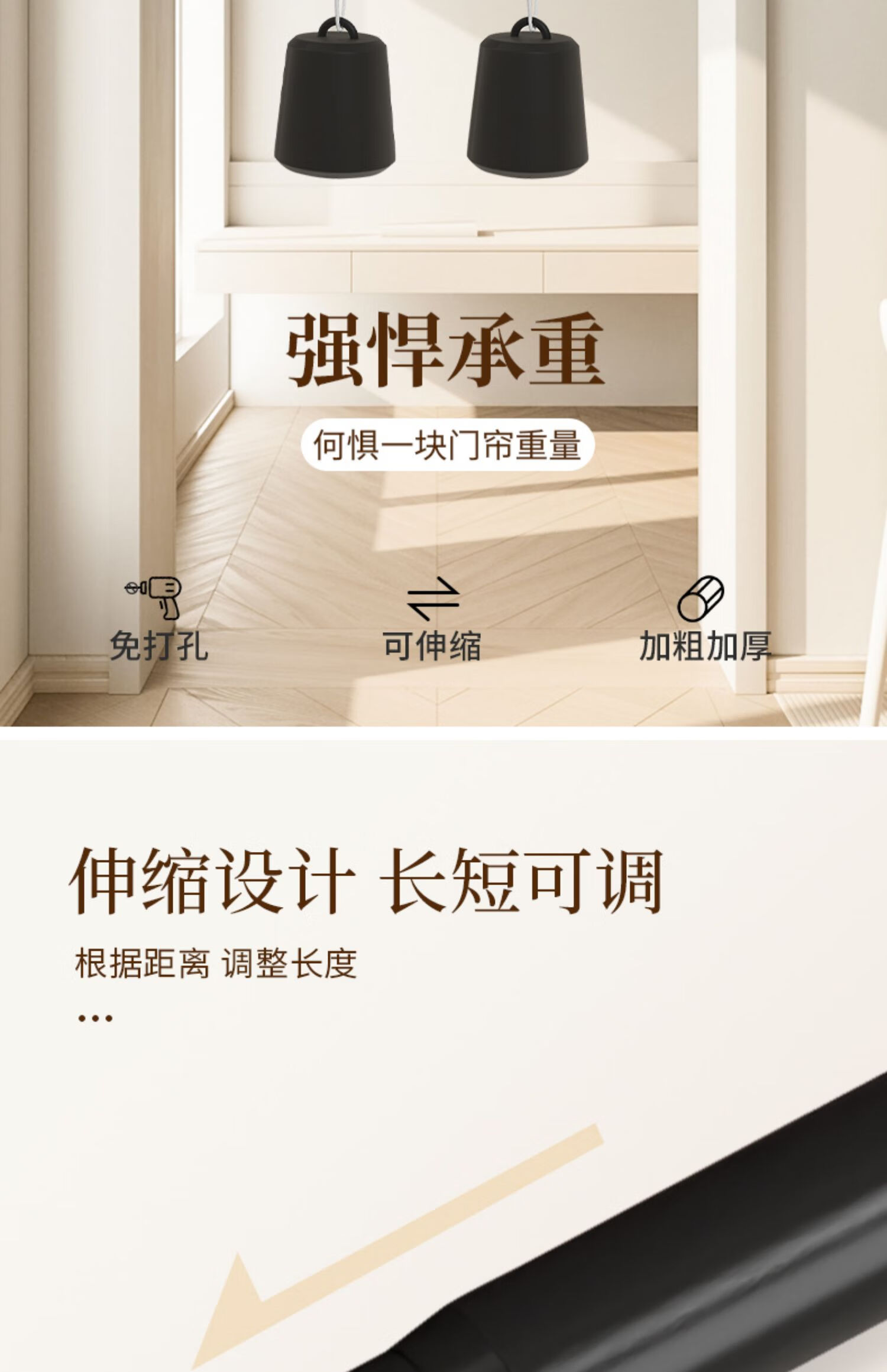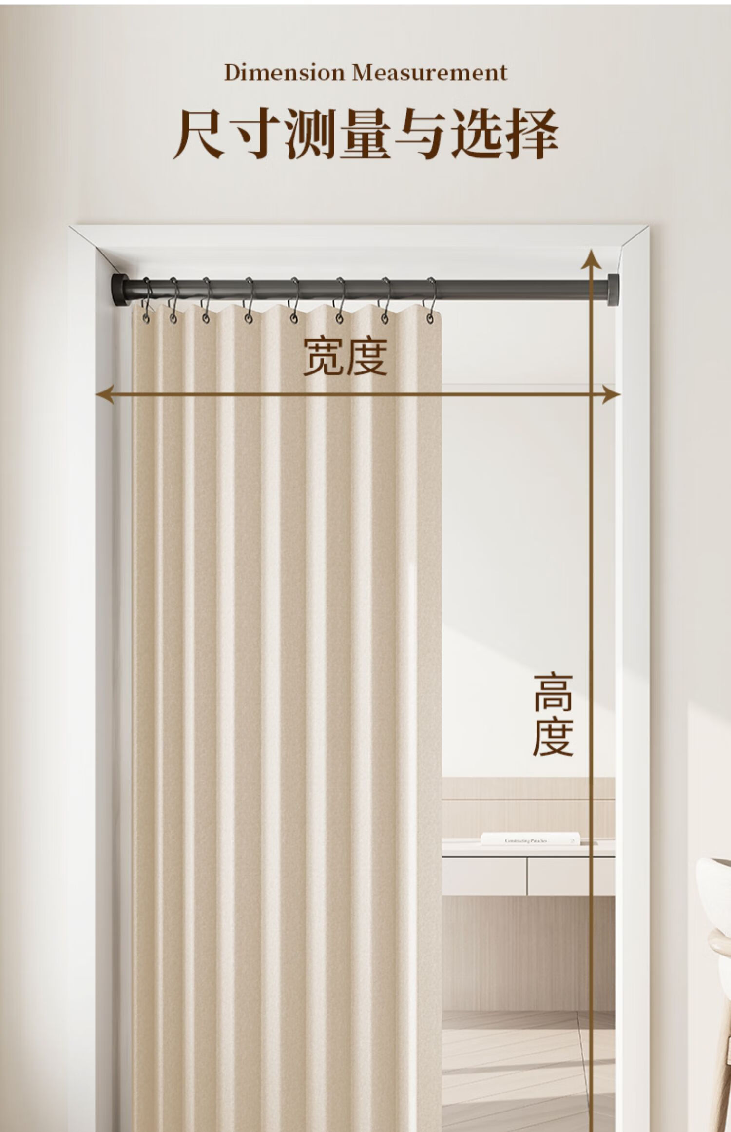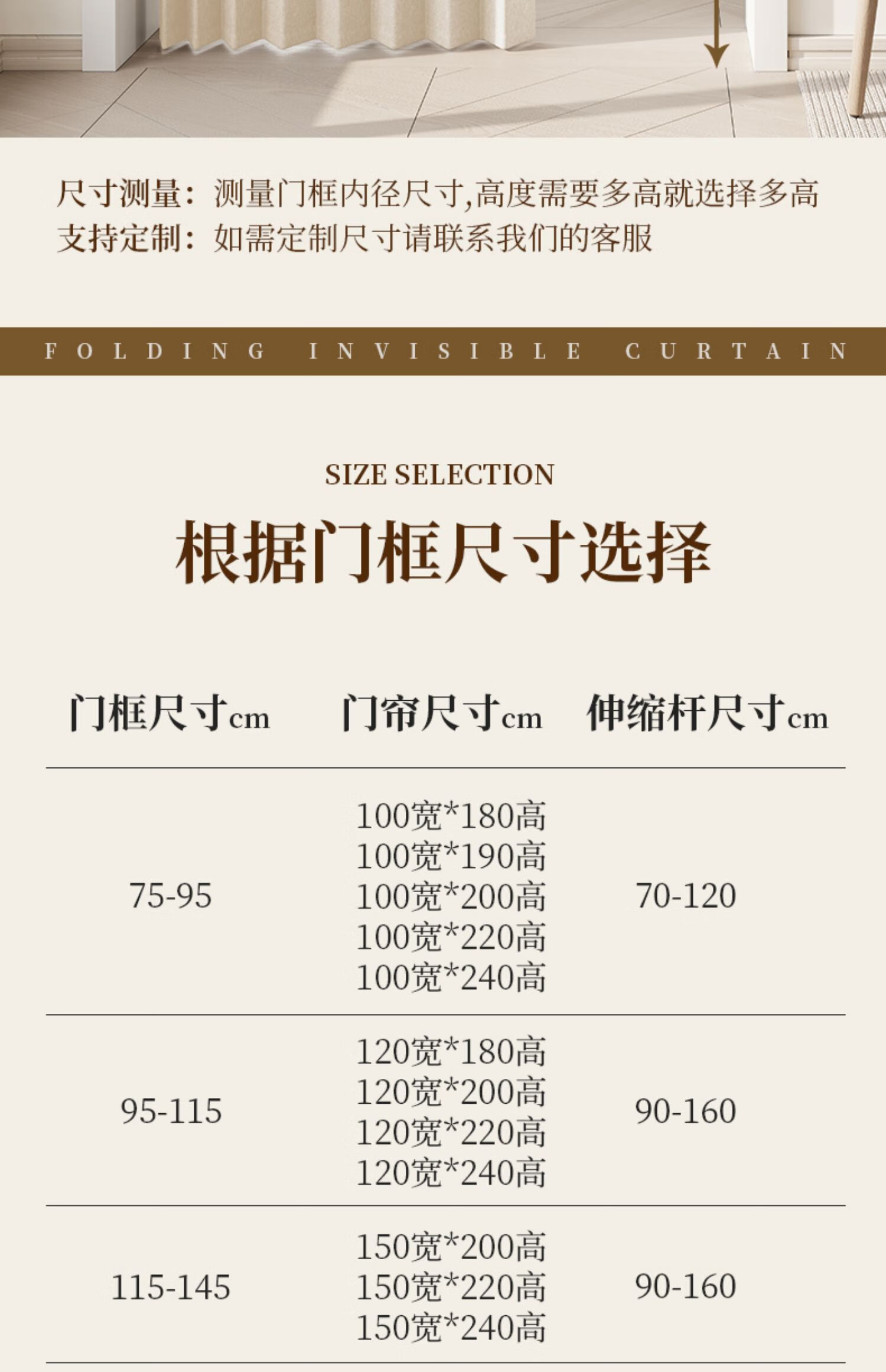 施香曼定制折叠门帘阻风风热加厚隔断帘卧室厨房遮挡帘免打孔家用简约 暖米色单帘 [适用175-195墙宽]200宽*200