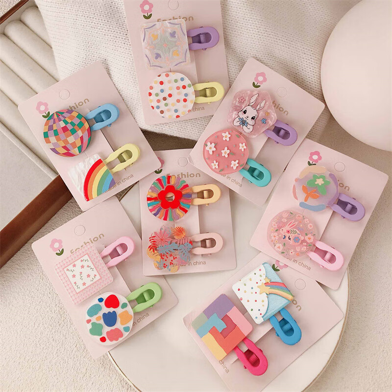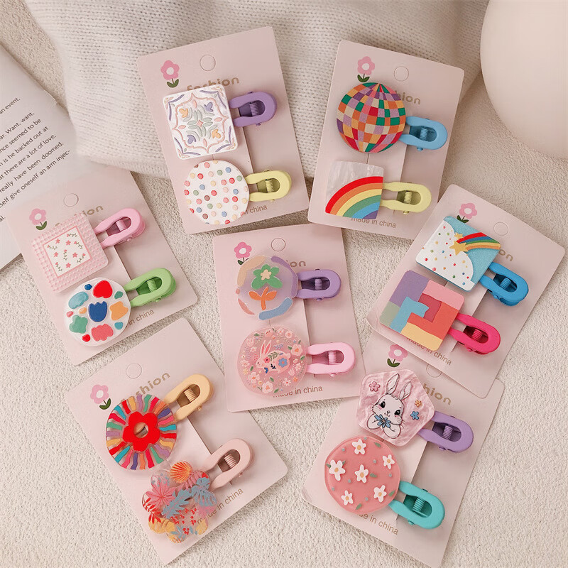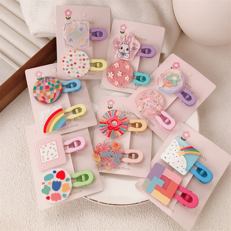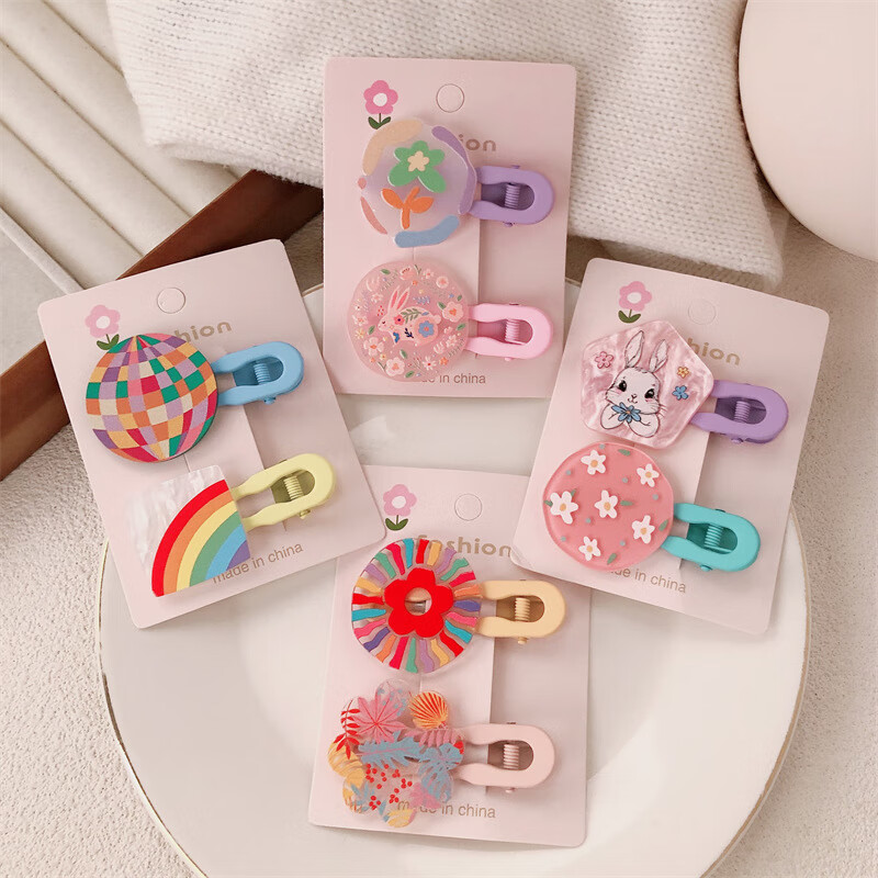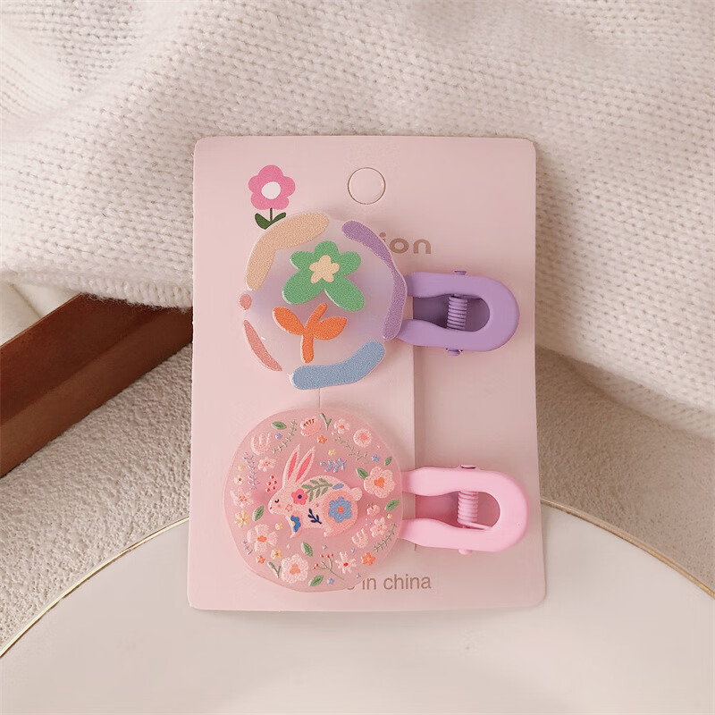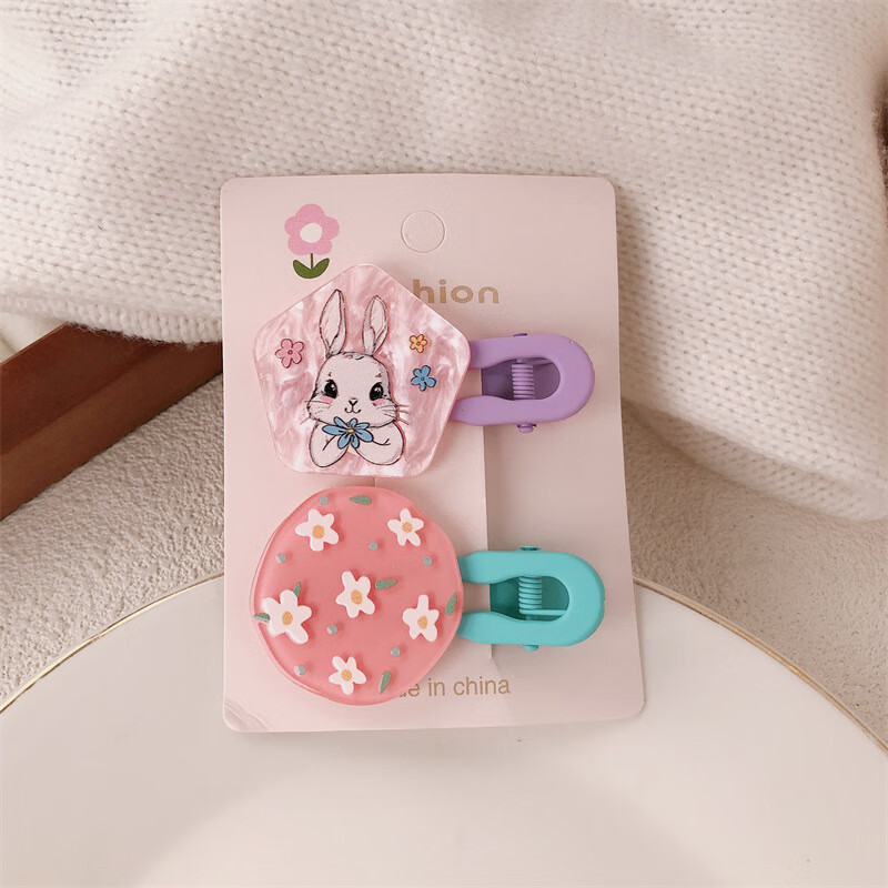【甄选厂家】韩系儿童奶油糖果色印碎花格纹大号鸭嘴夹女童亲子喷 1 花朵兔子一对