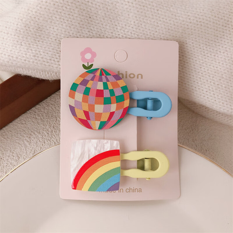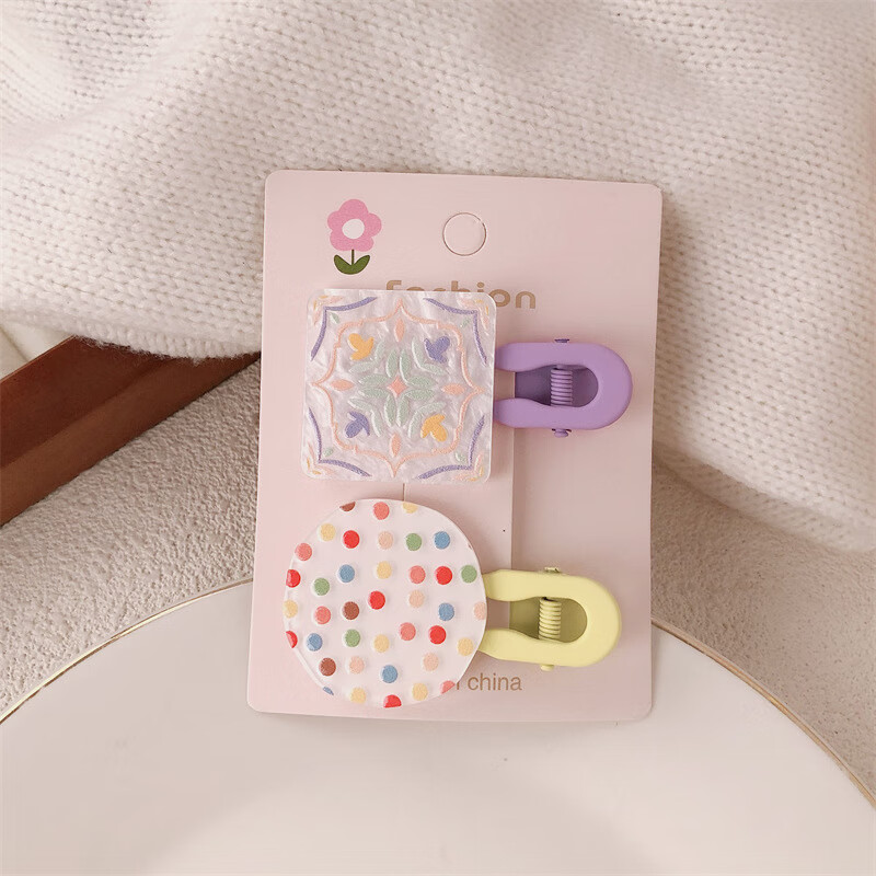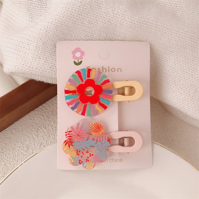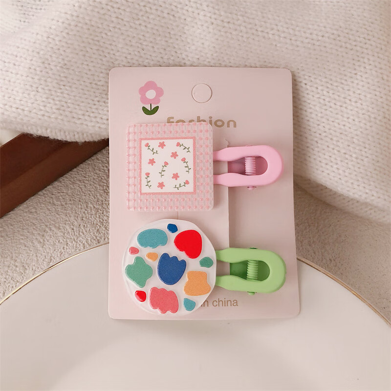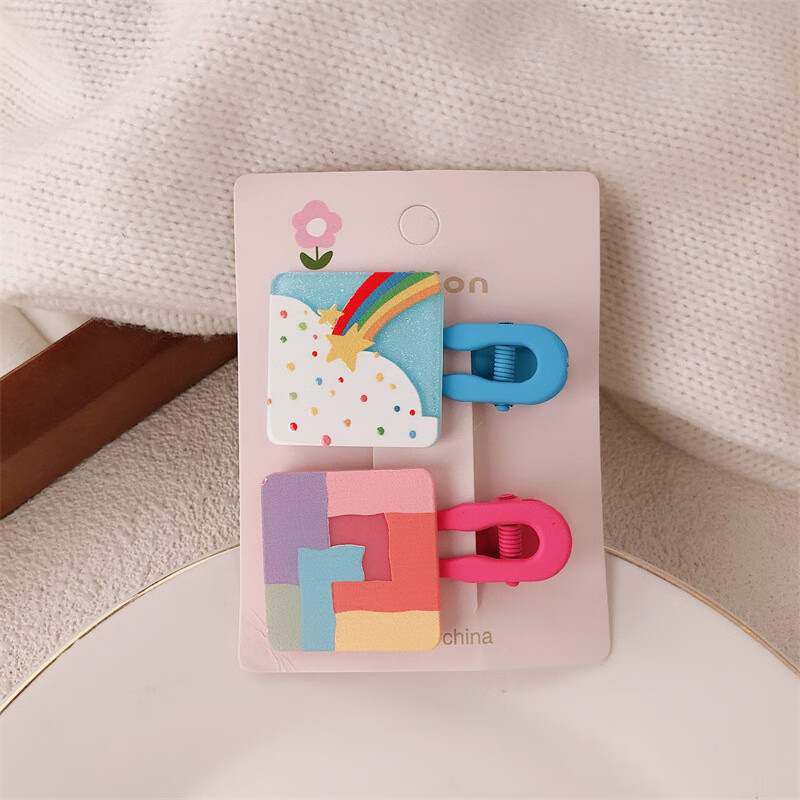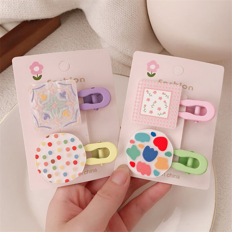 【甄选厂家】韩系儿童奶油糖果色印碎花格纹大号鸭嘴夹女童亲子喷 1 花朵兔子一对