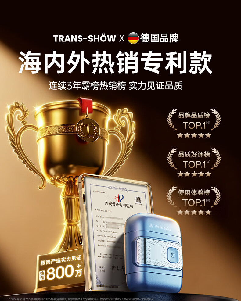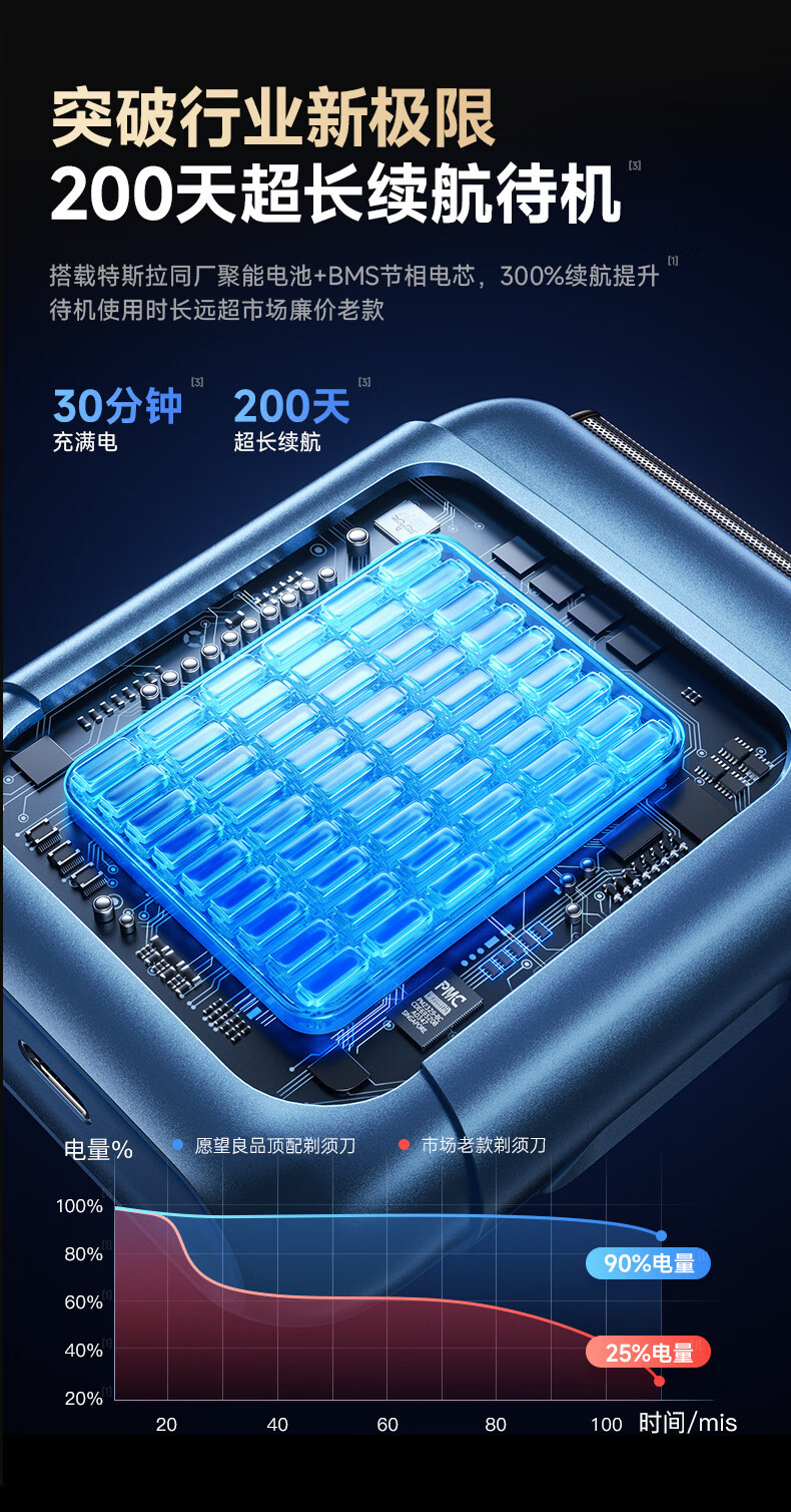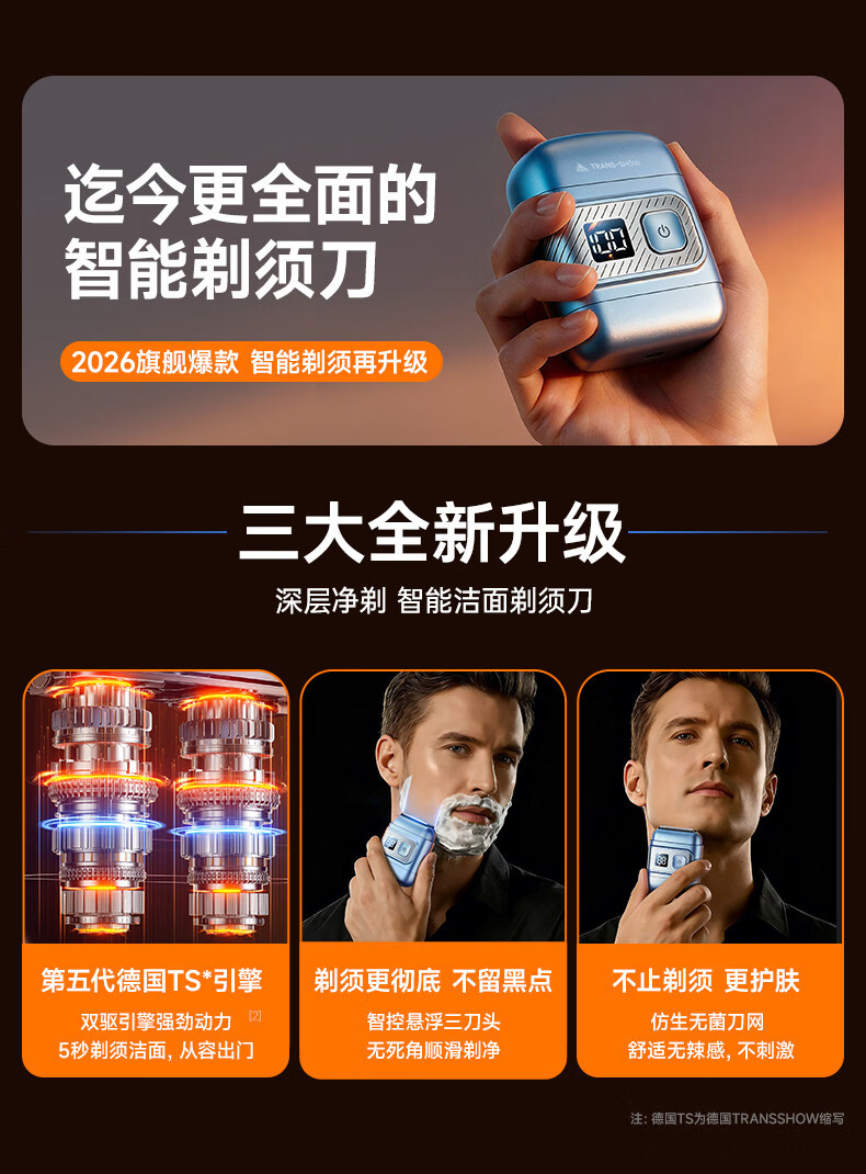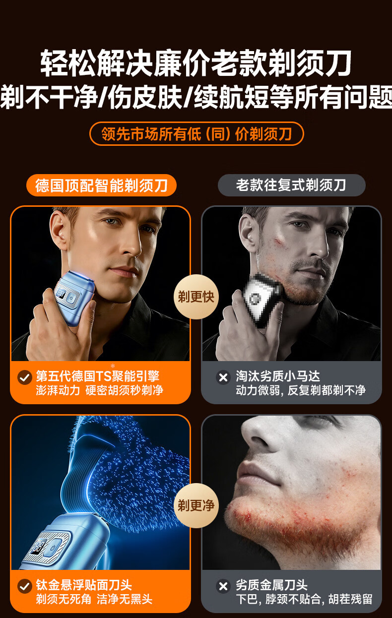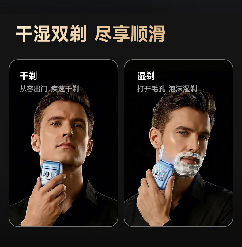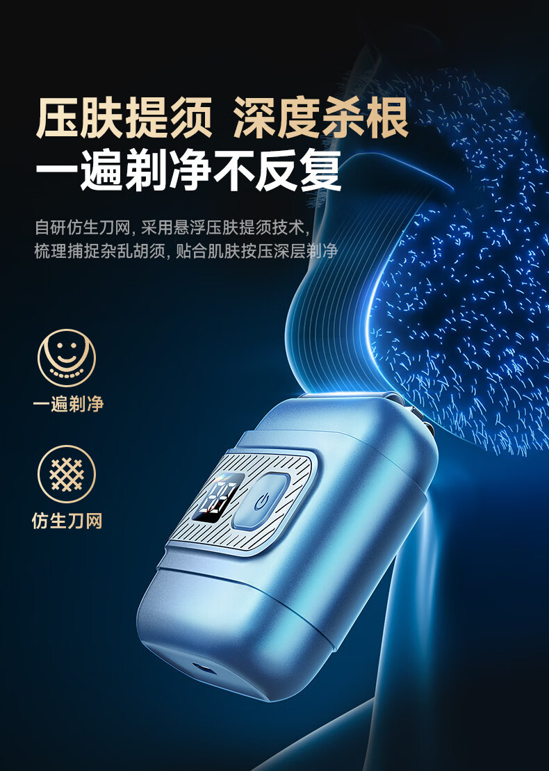 权尚【德国品牌丨一遍剃净】剃须刀电动便携款男士刮胡刀 2026新款浓密胡茬敏感肌秒剃净全身可水洗 【锐锋蓝·顶配升级款】AI动态贴合·智能数显 【德国旗舰·精美礼盒】100w热销·丝滑不留痕