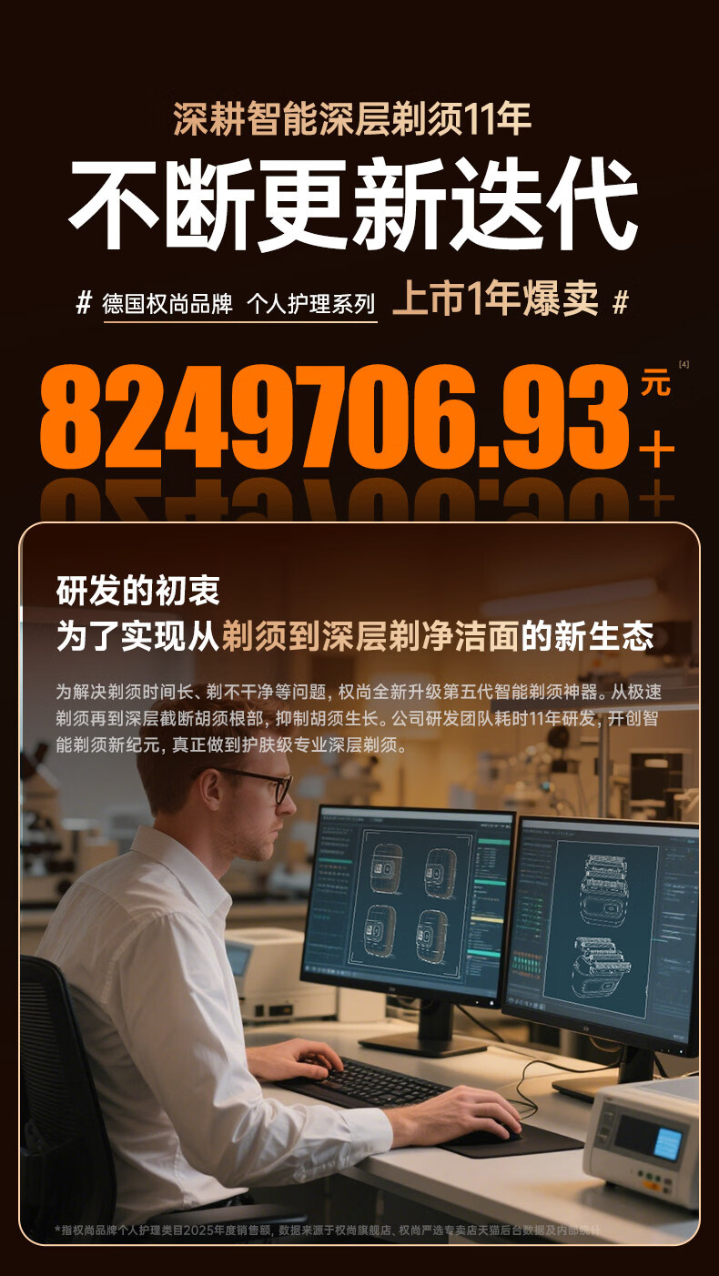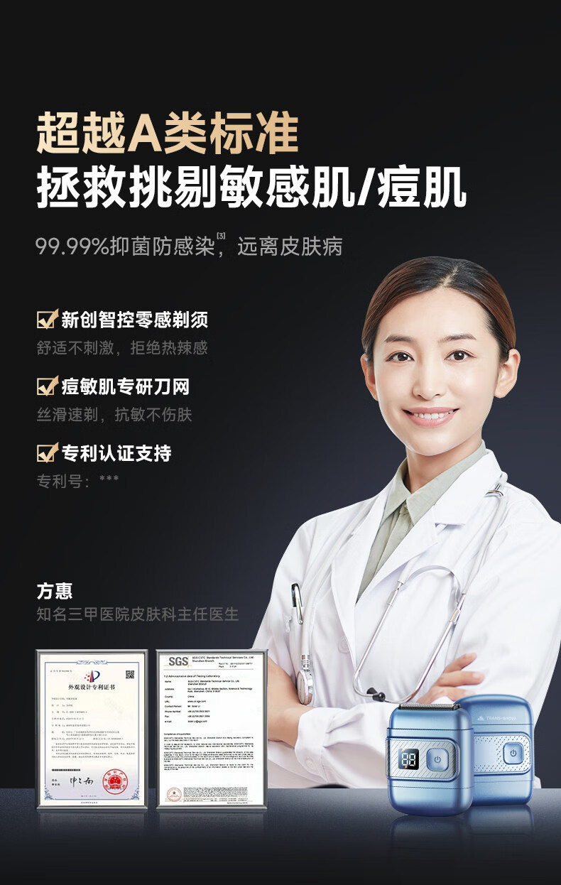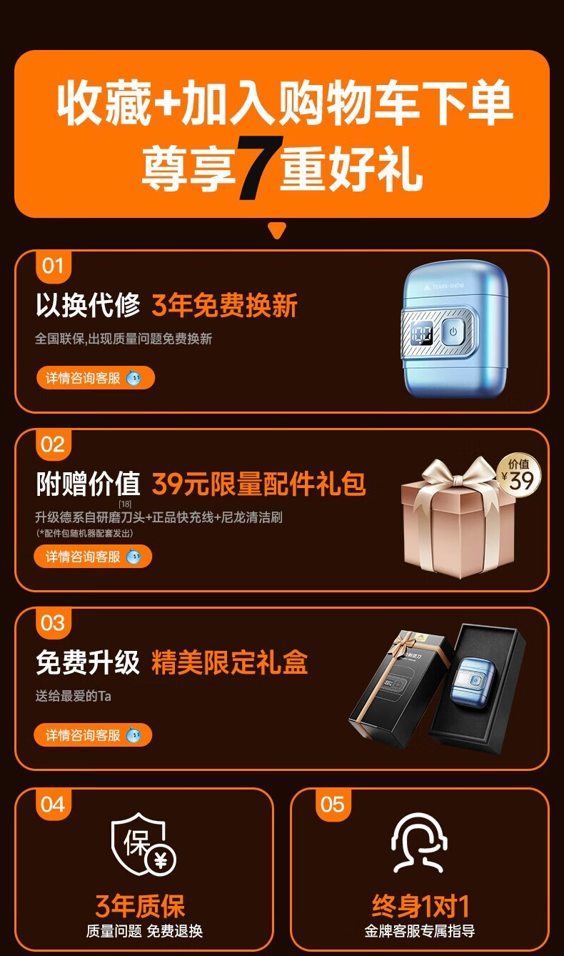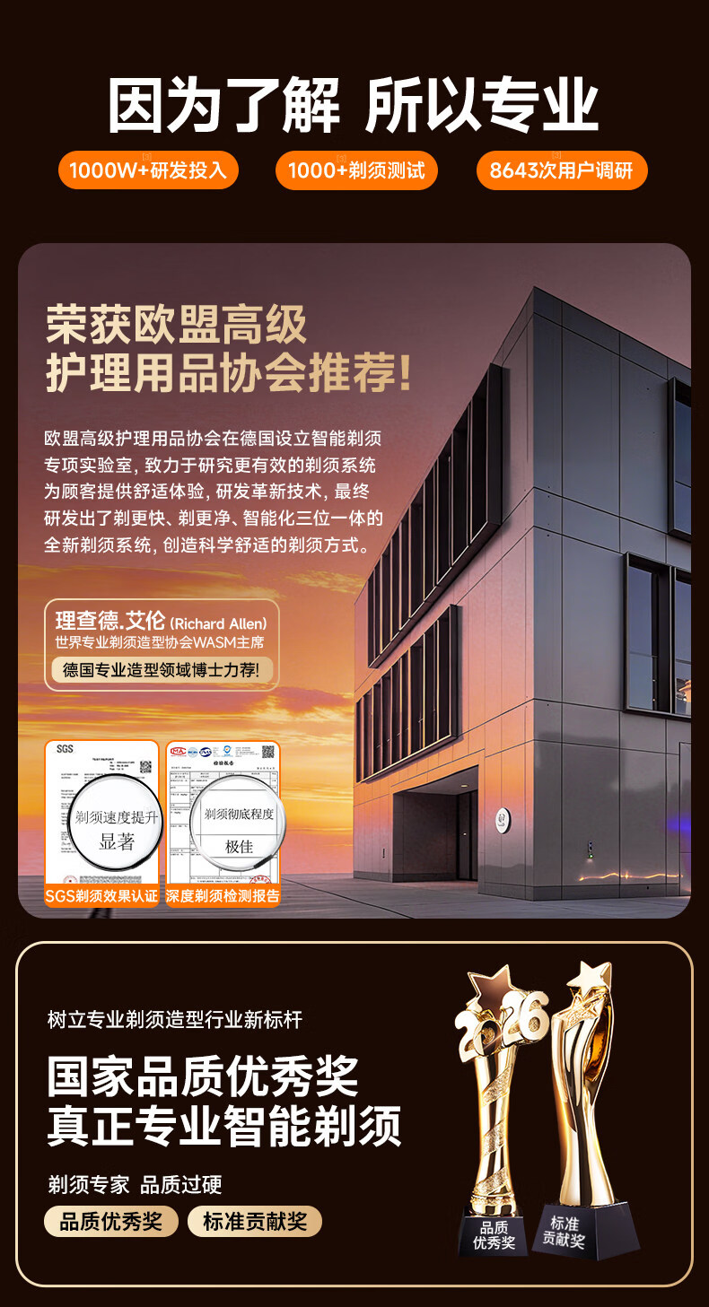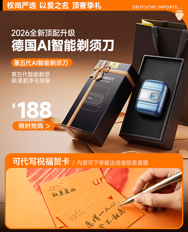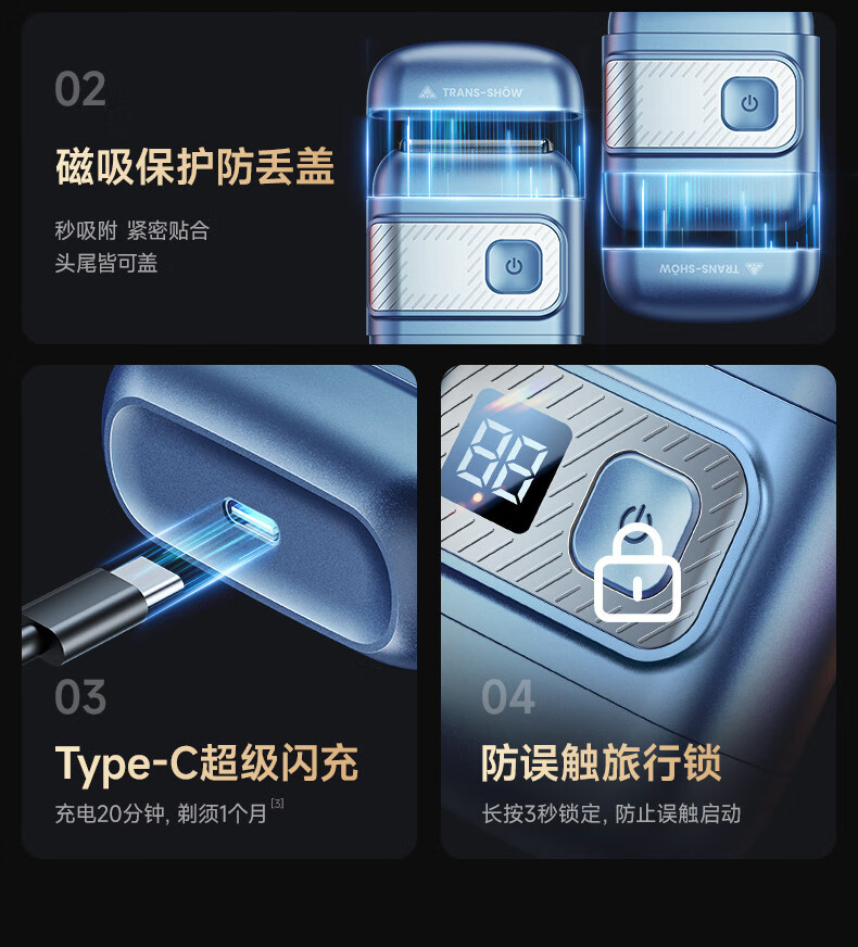 权尚【德国品牌丨一遍剃净】剃须刀电动便携款男士刮胡刀 2026新款浓密胡茬敏感肌秒剃净全身可水洗 【锐锋蓝·顶配升级款】AI动态贴合·智能数显 【德国旗舰·精美礼盒】100w热销·丝滑不留痕