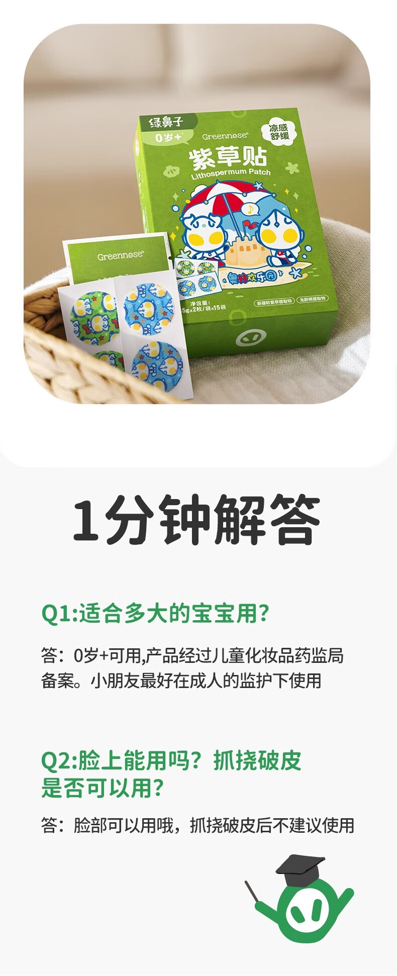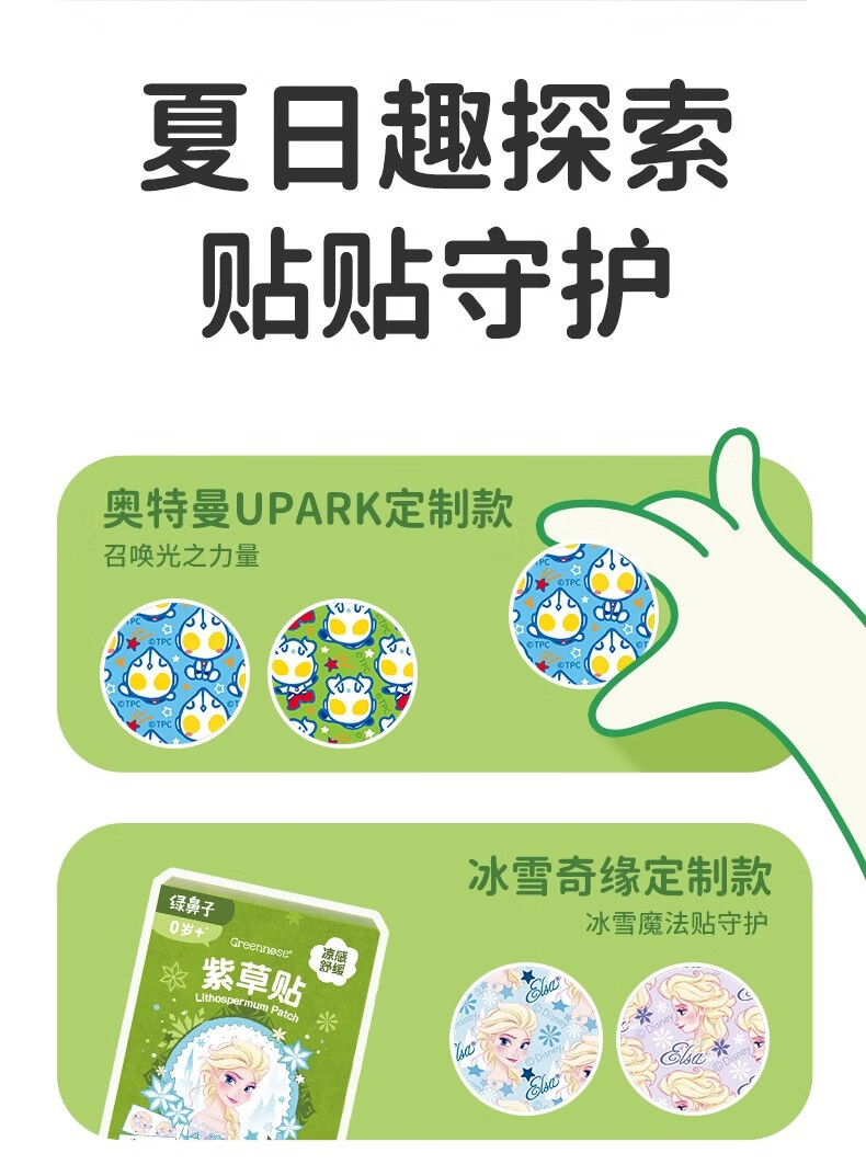 绿鼻子(green nose)紫草舒缓贴婴儿宝宝蚊子蚊虫叮咬非驱蚊贴止痒膏紫草膏青草膏 冰雪奇缘艾莎联名款【30枚】 1盒