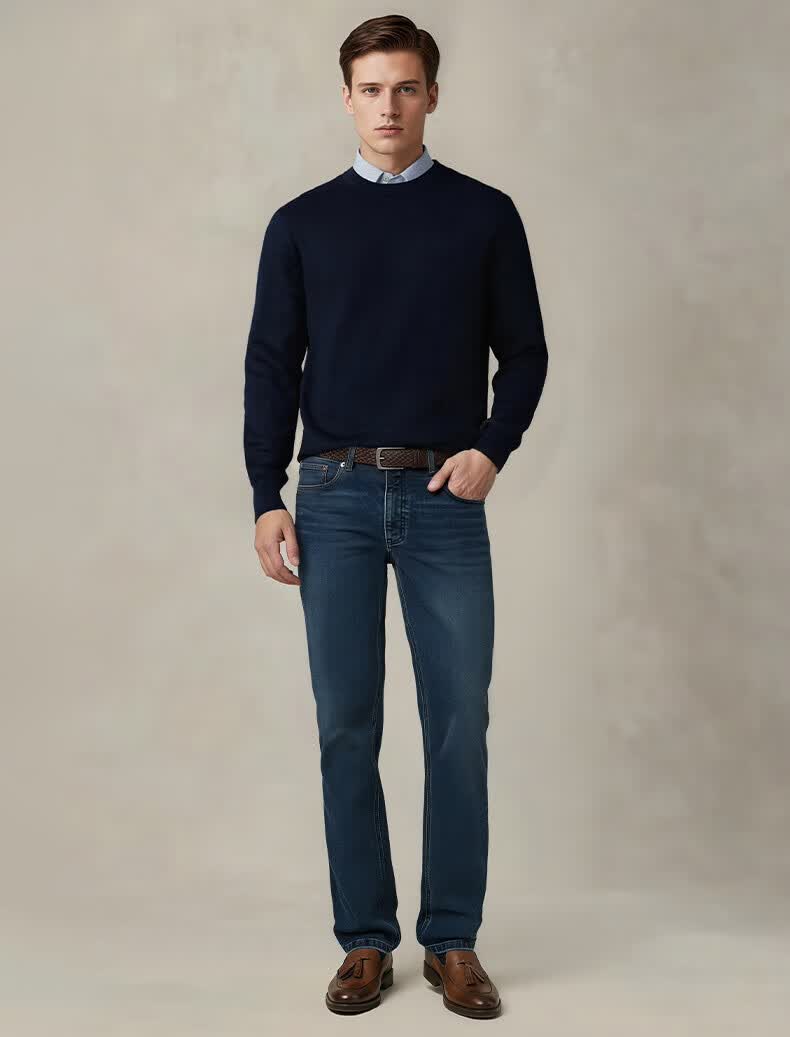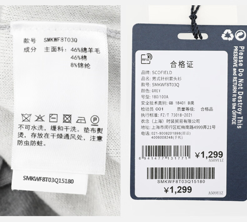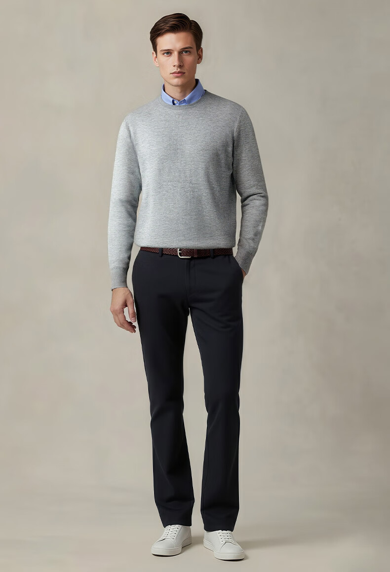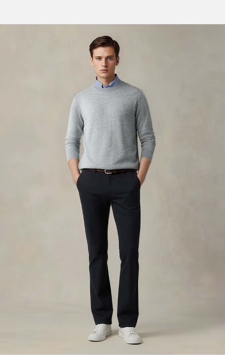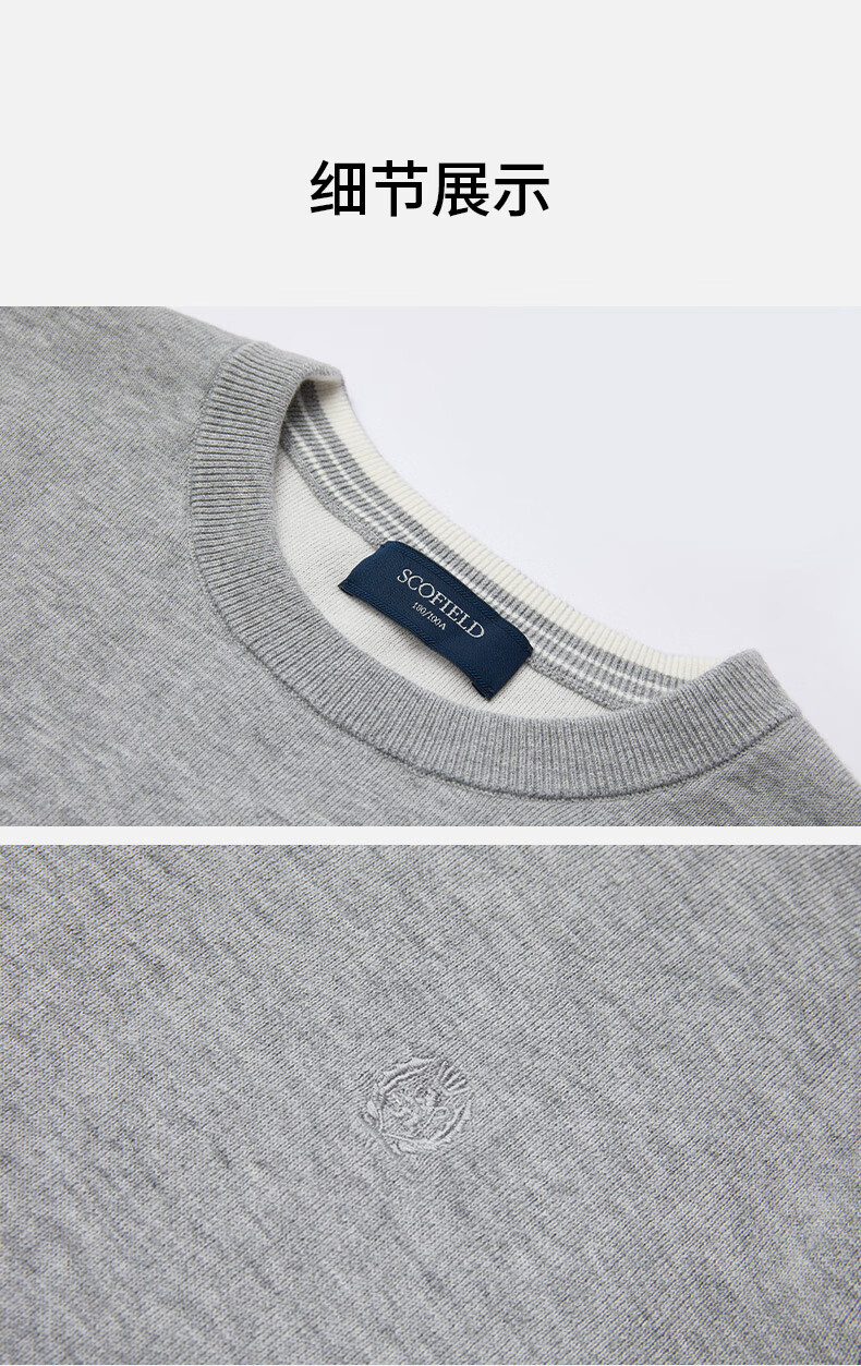 Scofield男装25年秋冬新款绵羊毛圆领简约纯色商务休闲保暖毛衣 灰色 XL (180)