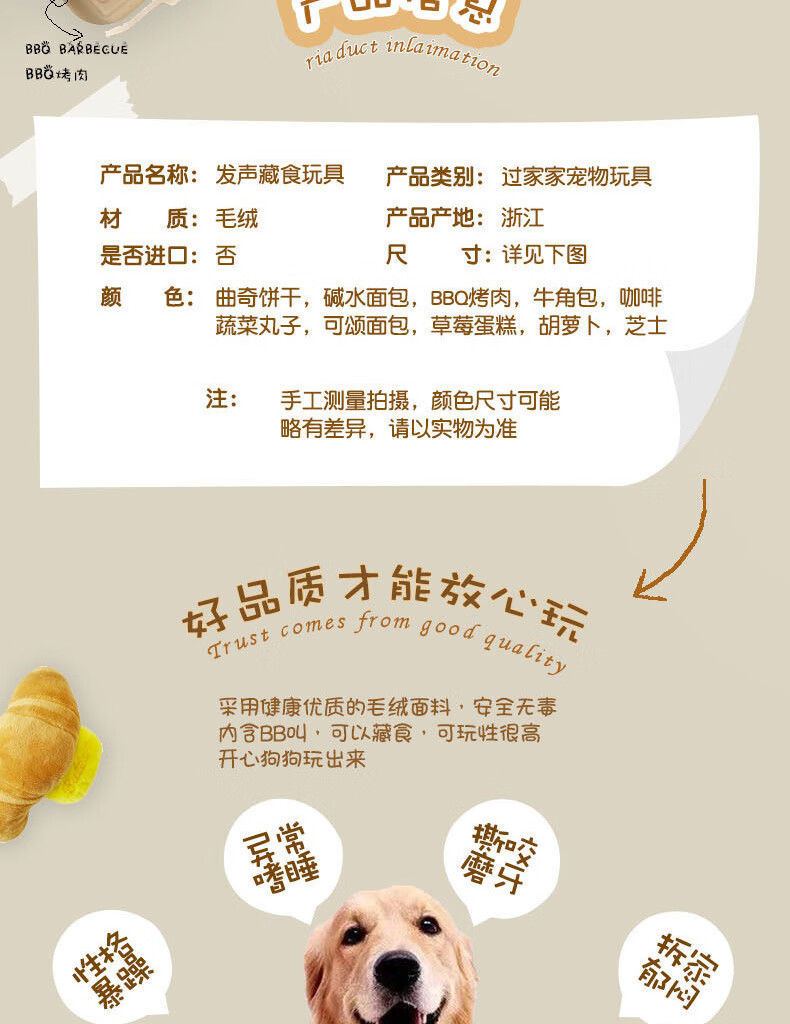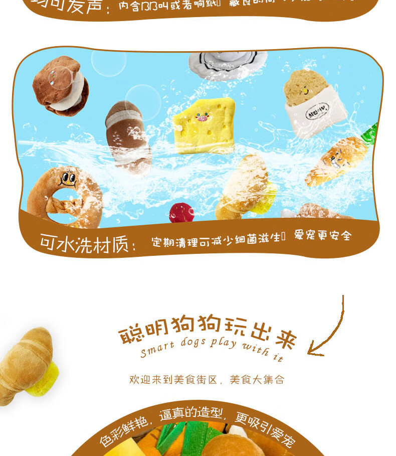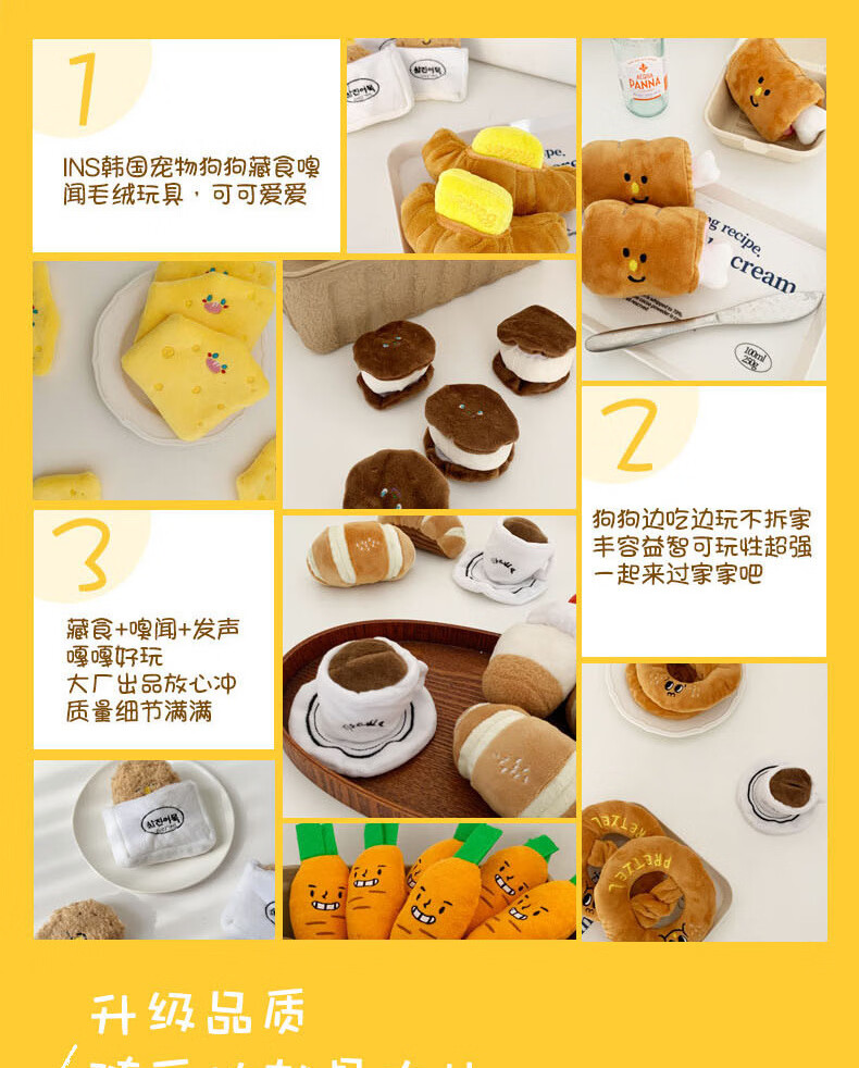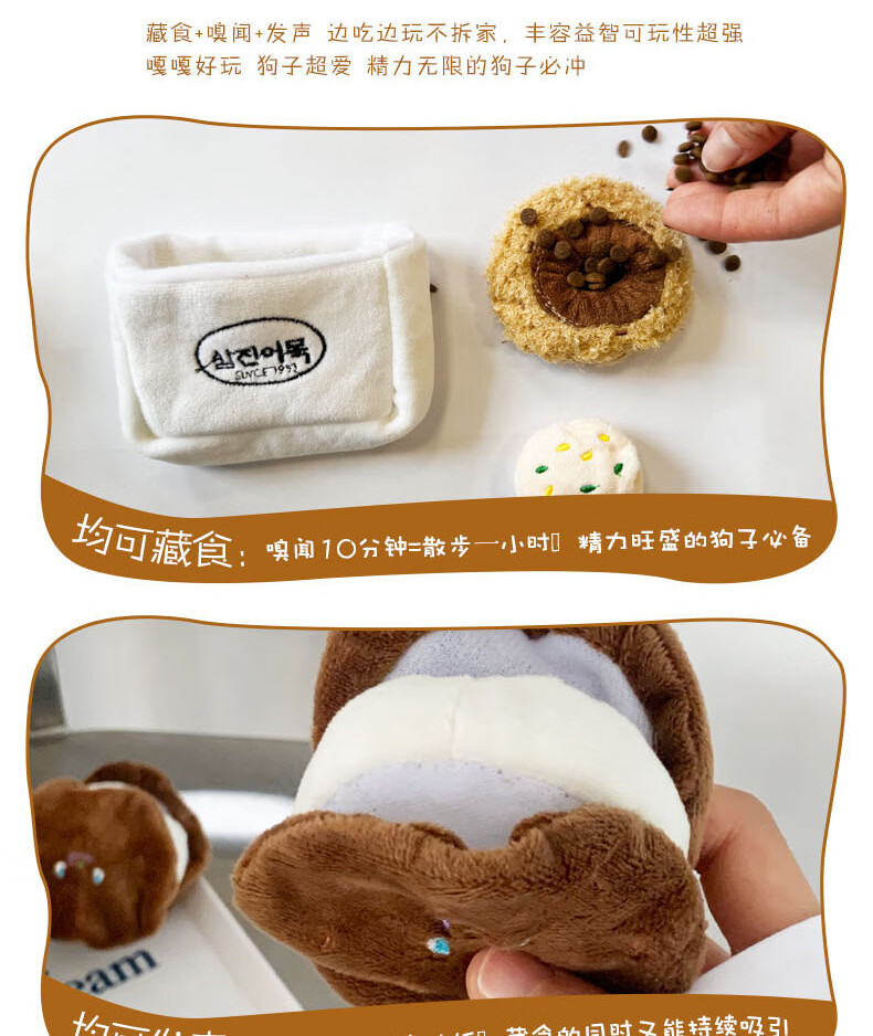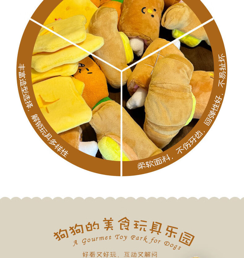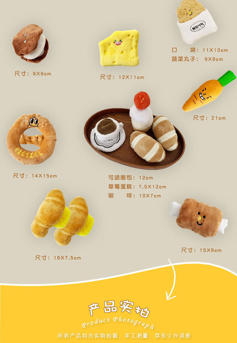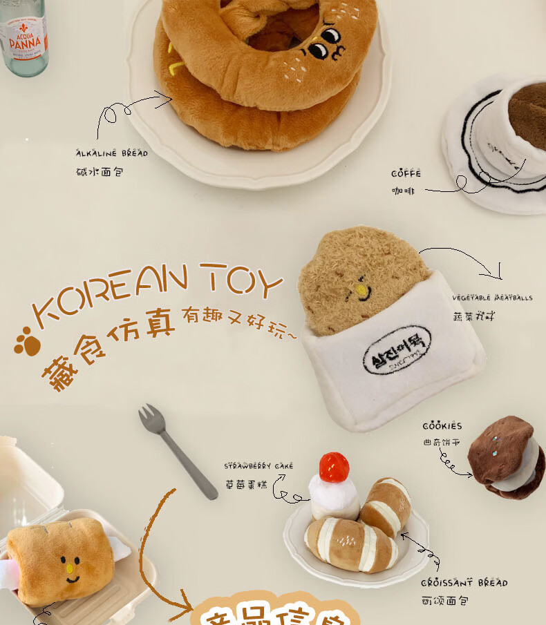 山头林村跨境韩国狗狗玩具风面包藏食嗅闻小狗狗磨牙发声毛绒宠物玩具 随心配套餐1