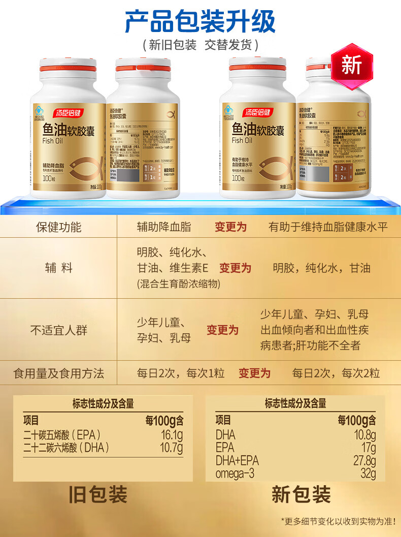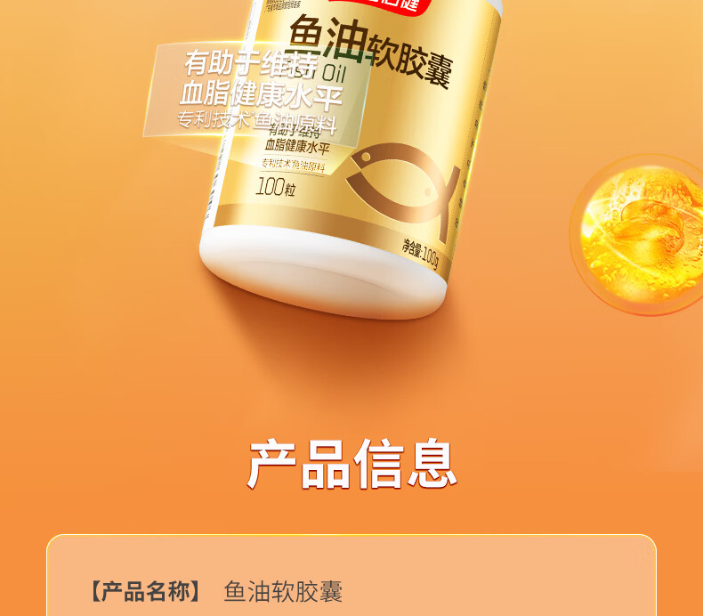 汤臣倍健深海鱼油软胶囊中老年人有助于维持血脂健康水平 100粒*2瓶