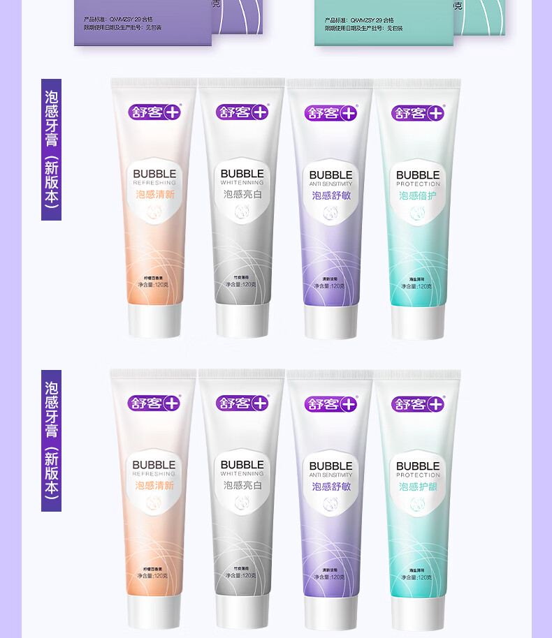 舒客防蛀/清新牙膏 美白牙齿清新口气养护牙龈 口腔护理 舒客多效护理牙膏套装605g