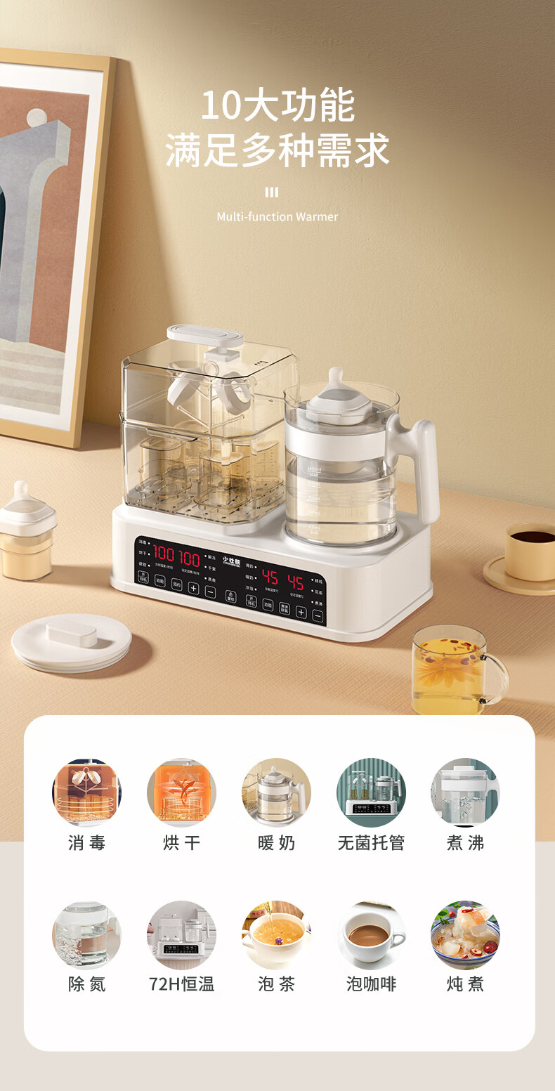 小壮熊婴儿奶瓶消毒柜烘干 多功能恒温水壶 婴儿冲奶调奶温奶二合一体机
