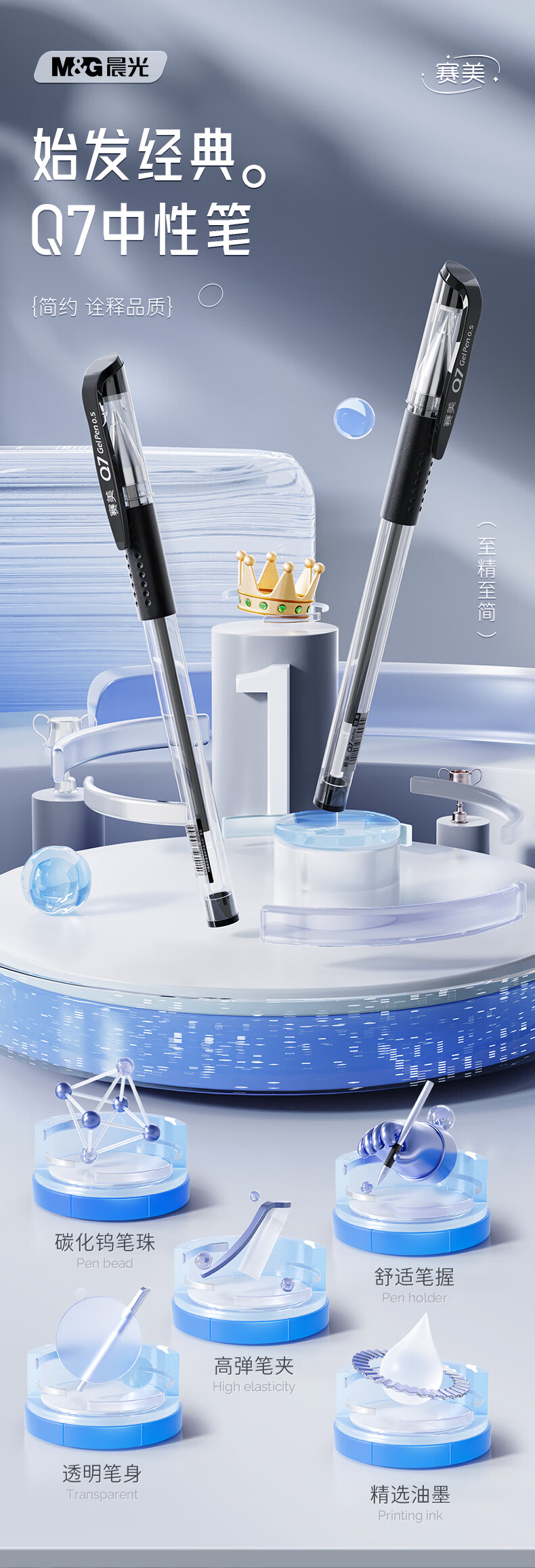 晨光(M&G)文具Q7 拔帽中性笔0.5签字碳素笔商务子弹头学生刷题水笔办公用品 赛美黑笔 30支/盒XGP30118