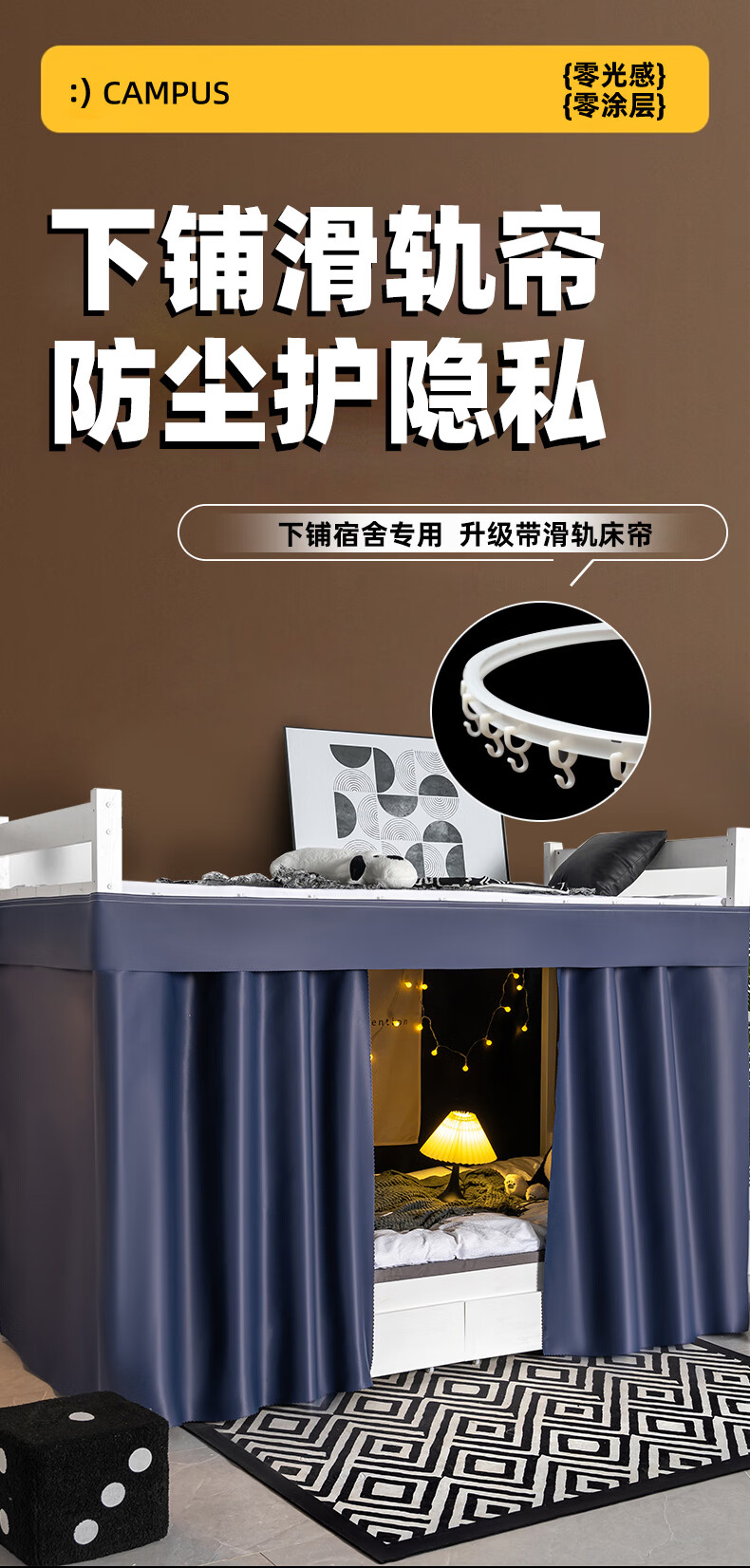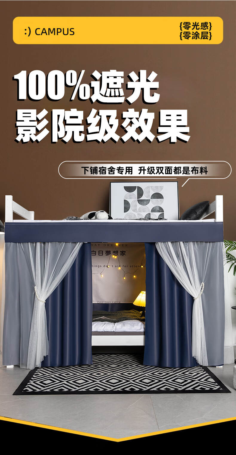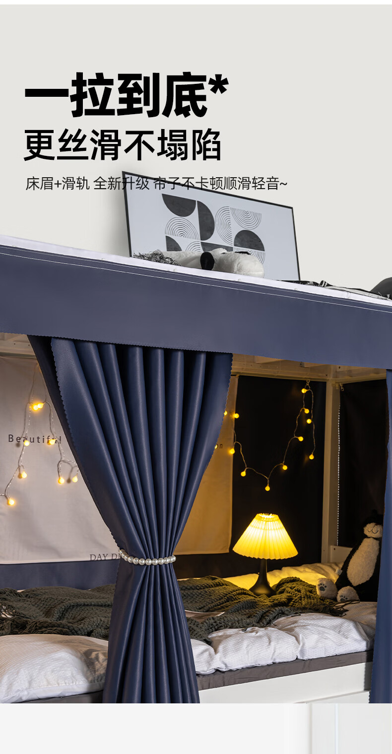 云瑾宿舍床帘下铺u型滑轨全遮光学生加厚蚊帐一体式寝室遮光帘 轻奢灰(100%遮光,双面布) 【1片帘】1.2米高