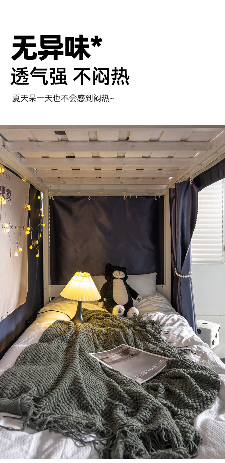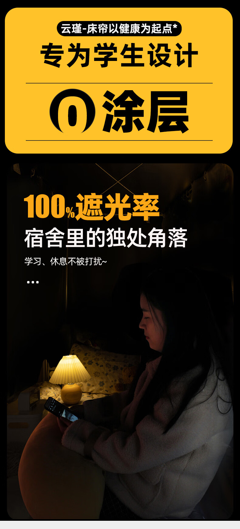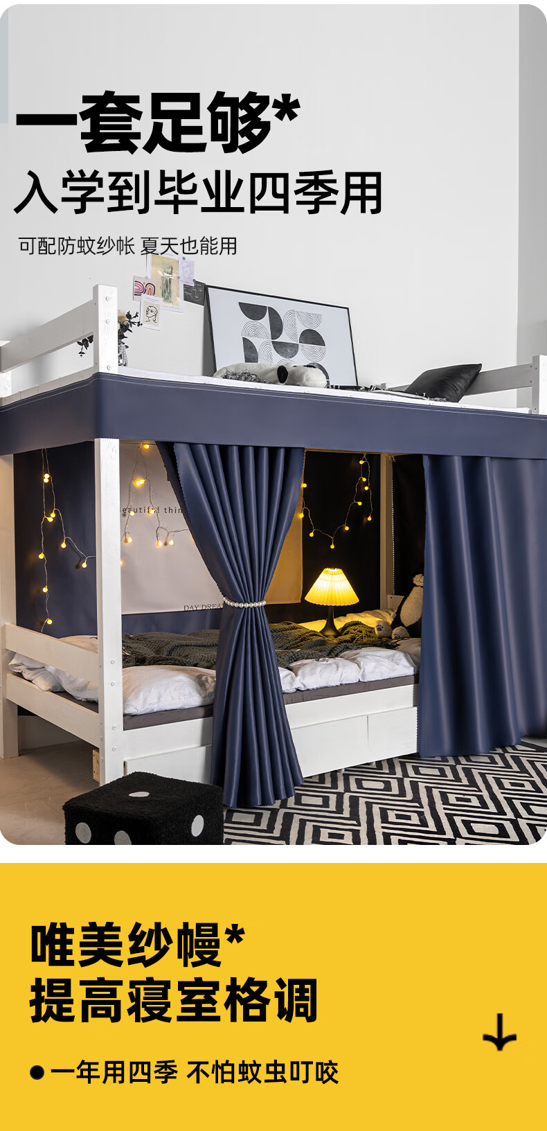 云瑾宿舍床帘下铺u型滑轨全遮光学生加厚蚊帐一体式寝室遮光帘 轻奢灰(100%遮光,双面布) 【1片帘】1.2米高