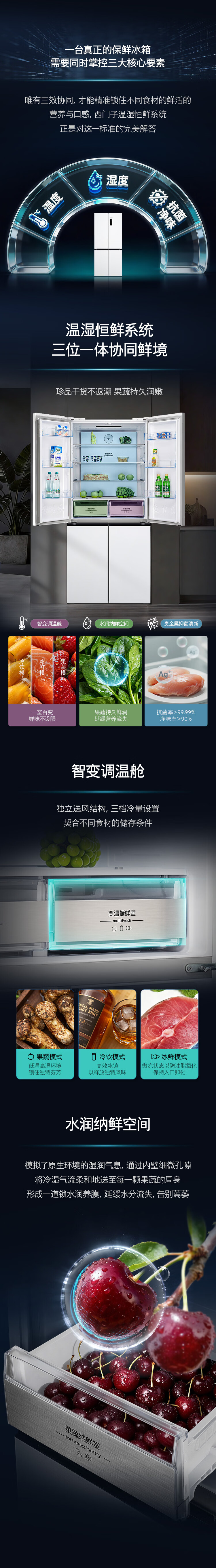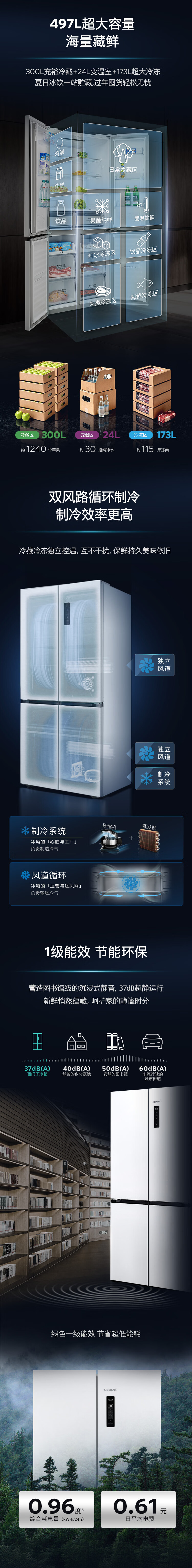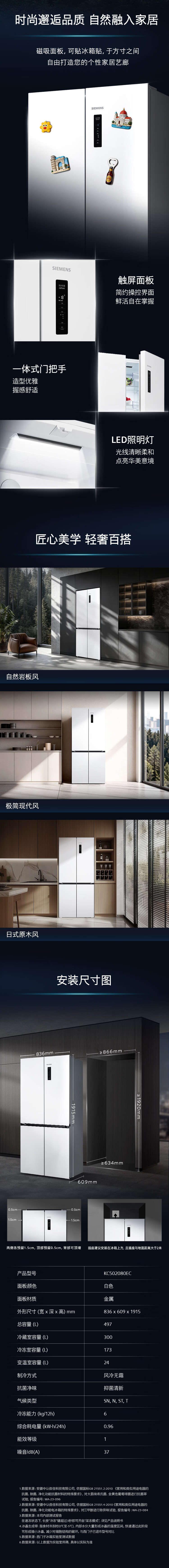 西门子(SIEMENS)冰立方497L十字门冰箱超薄微平嵌 抑菌清新 一级能效 KC502080EC 国家补贴
