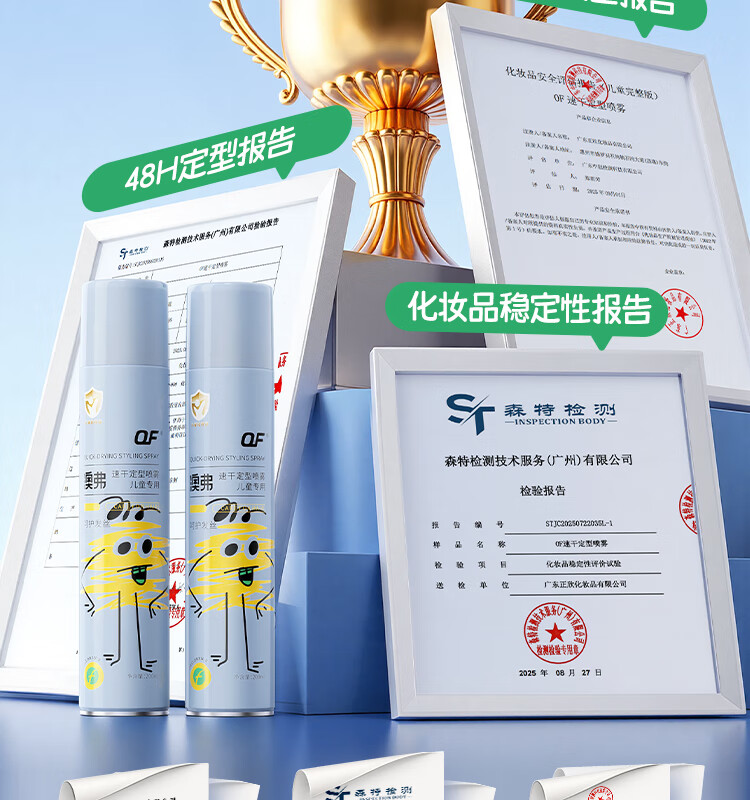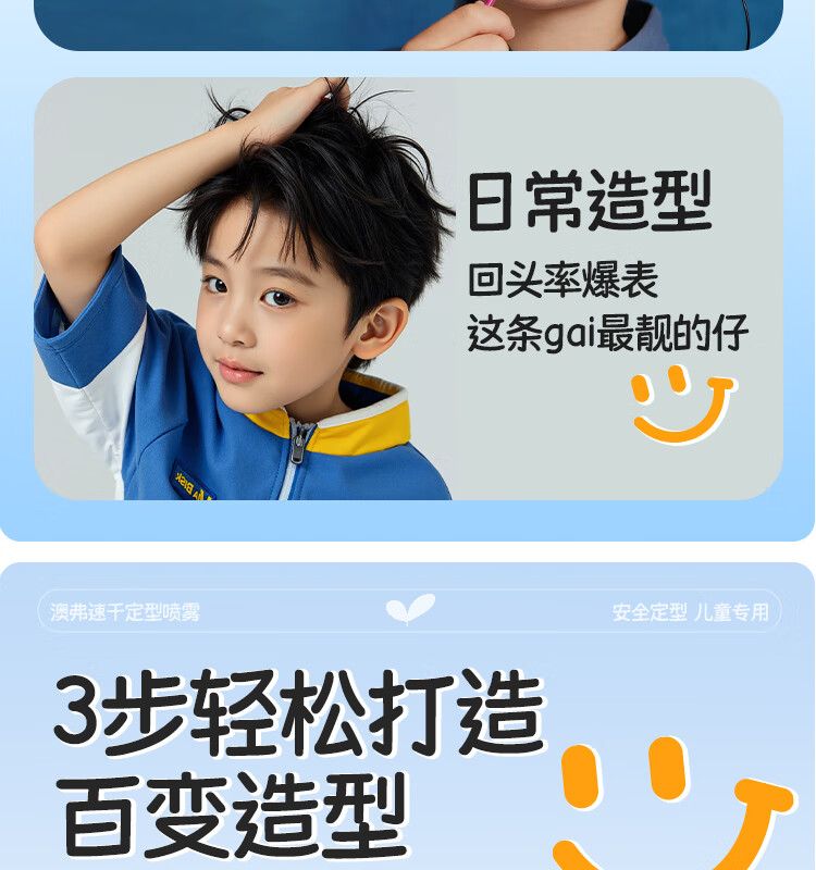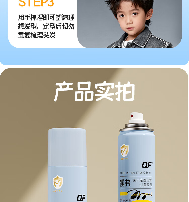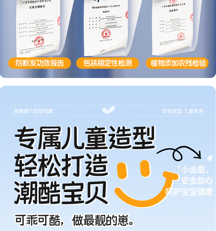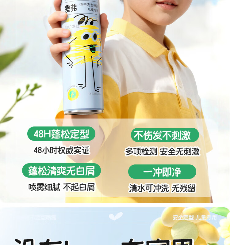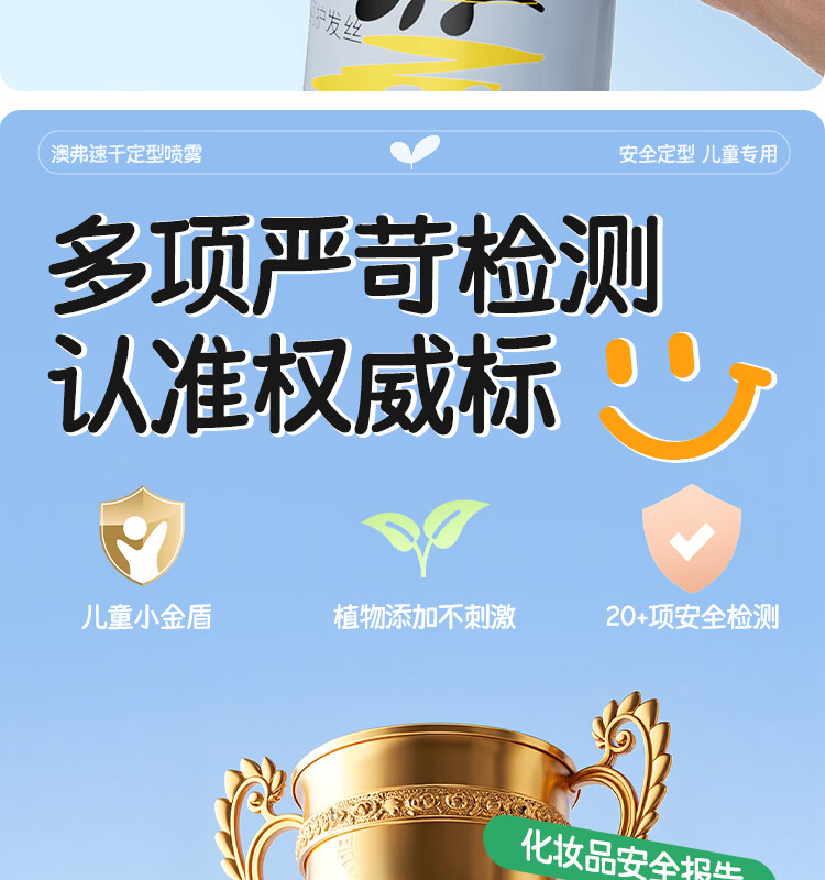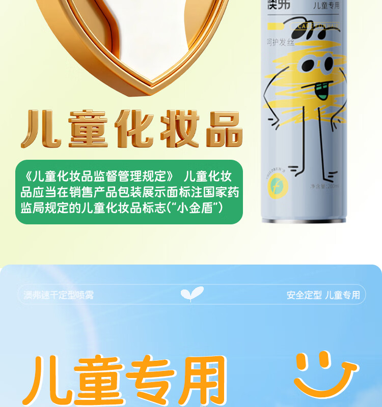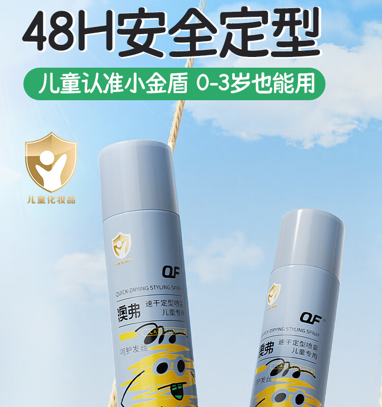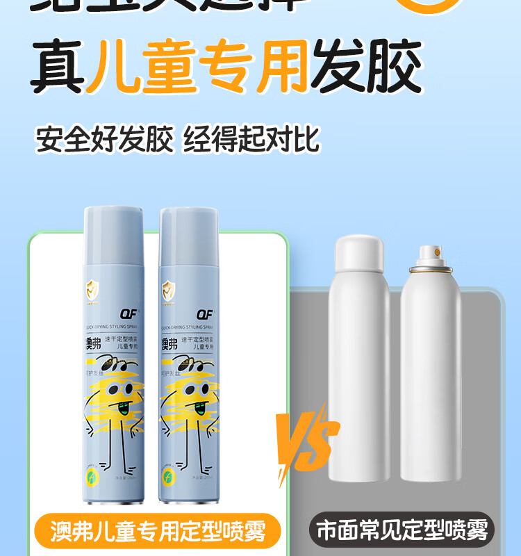 OF速干定型喷雾儿童持久定型发胶碎发整理高颅顶舞台造型小金盾认证 200ml【量大又安全】