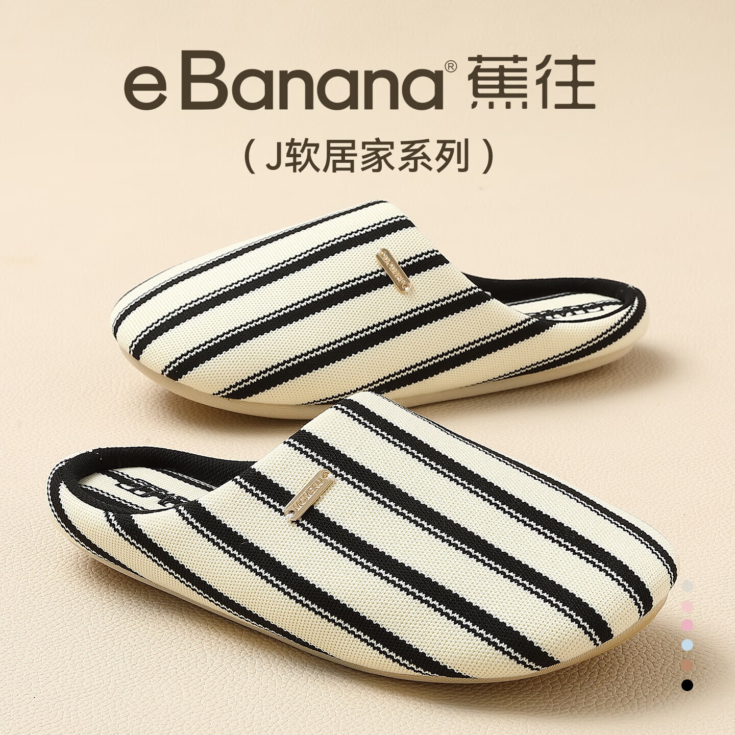 FZT条纹简约棉拖鞋女士2025秋冬季新款防滑舒适保暖时尚居家棉鞋男 白色 36-37 正码