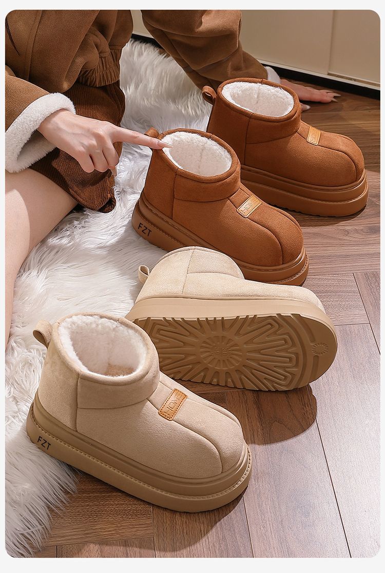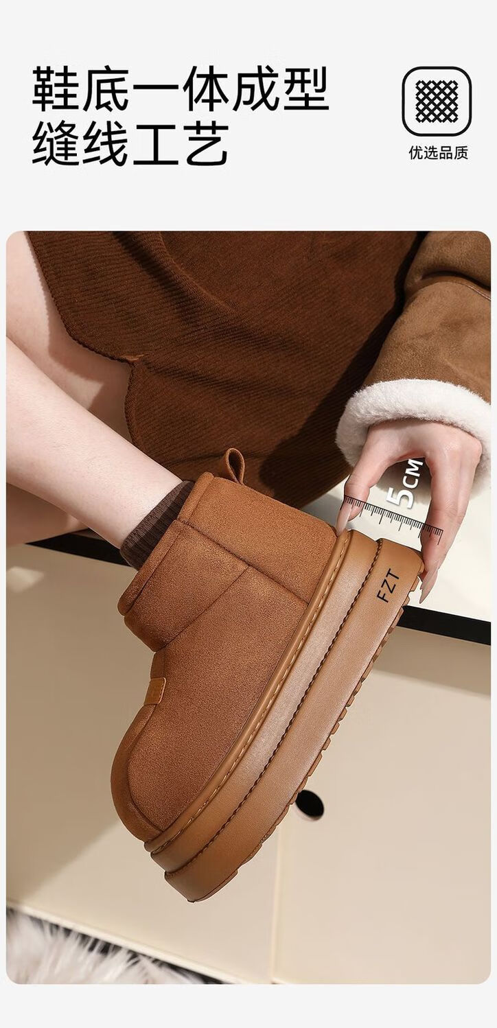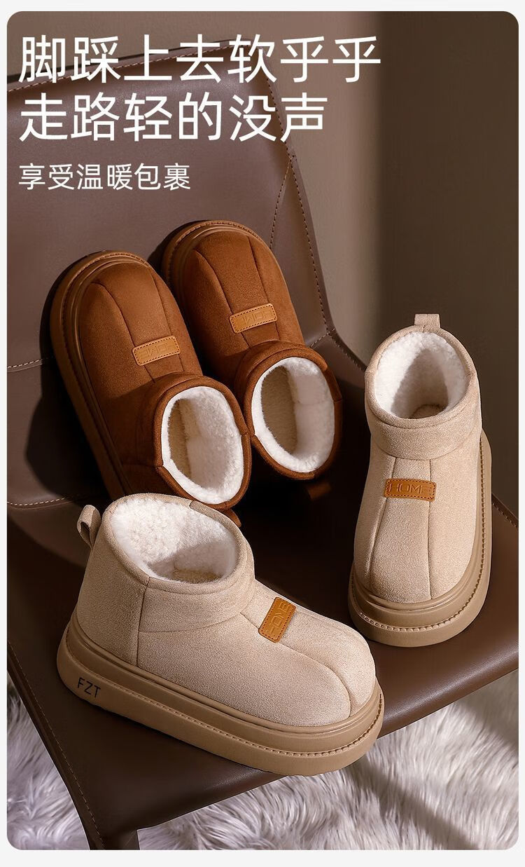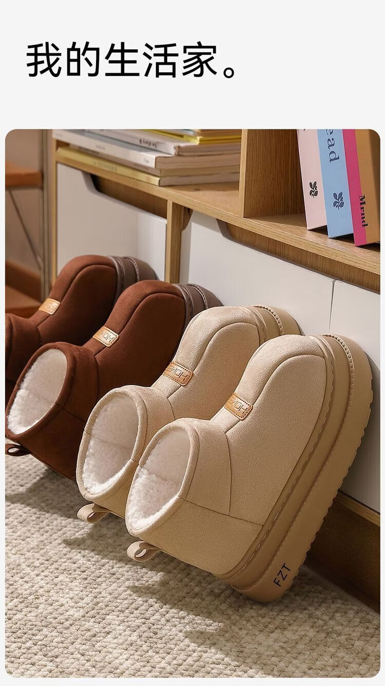 FZT高帮棉拖鞋女士2025秋冬季新款保暖加绒厚底包跟可外穿防滑棉鞋女 棕色 36-37 标准码