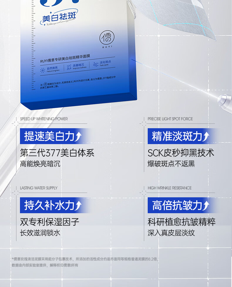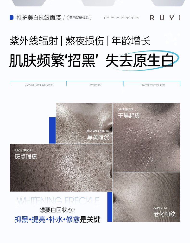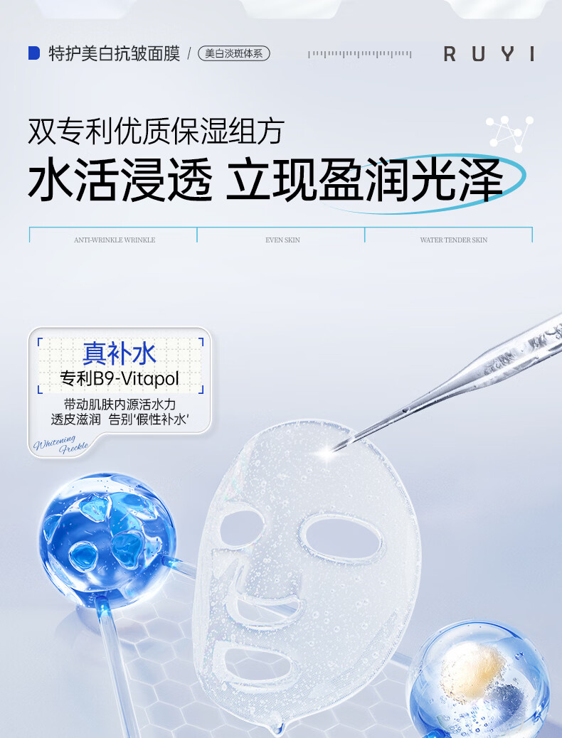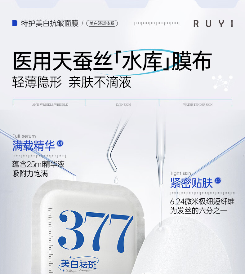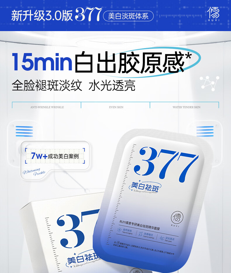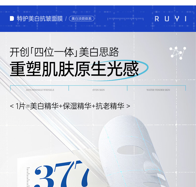 儒意(RUYI)377美白面膜补水男女士保湿淡斑淡痘印提亮抗皱紧致抗衰老去黄气