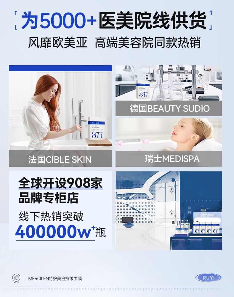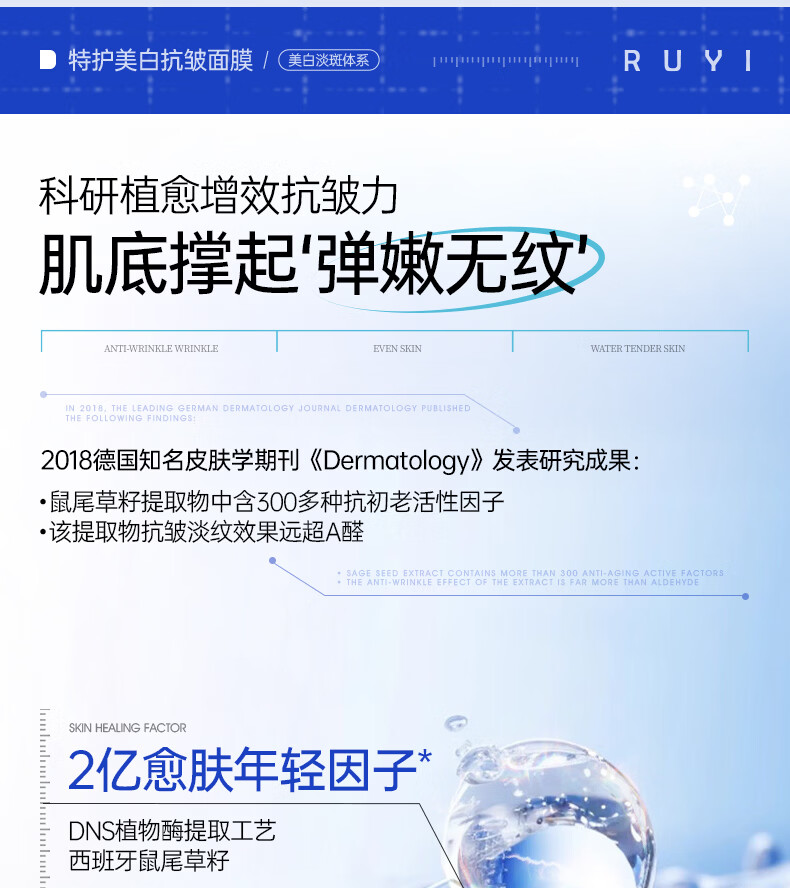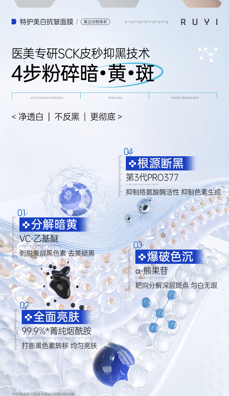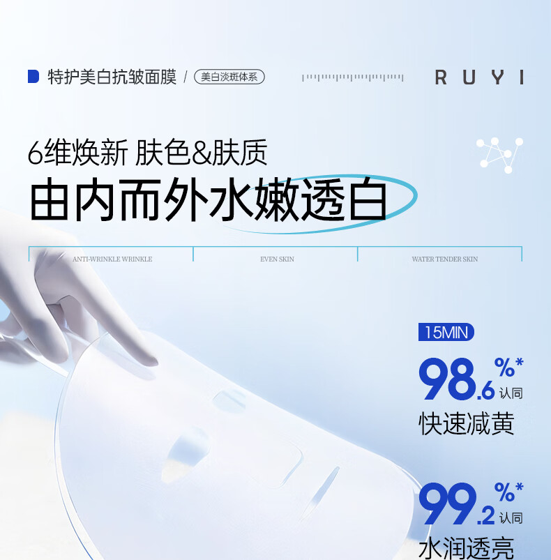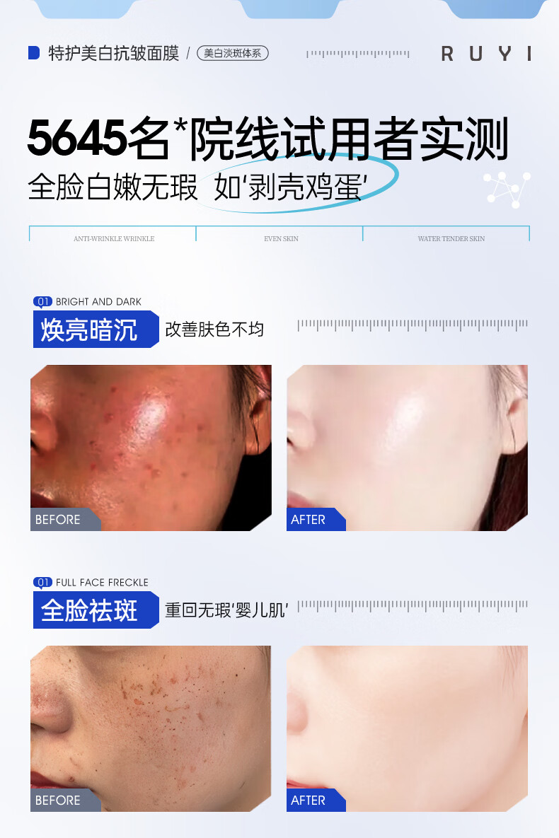 儒意(RUYI)377美白面膜补水男女士保湿淡斑淡痘印提亮抗皱紧致抗衰老去黄气