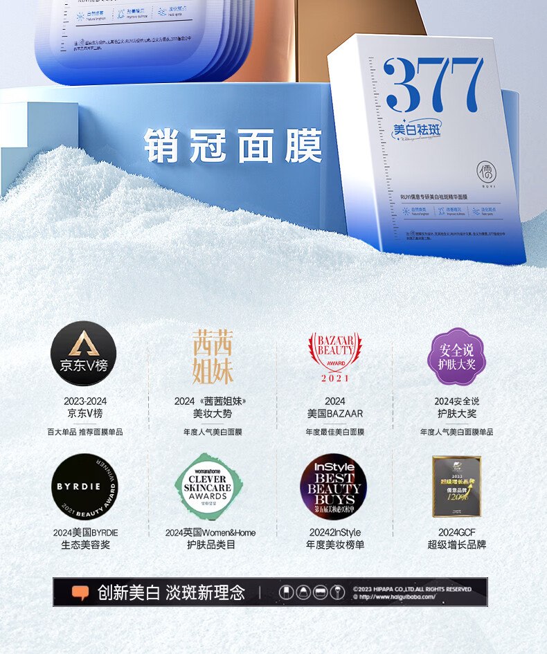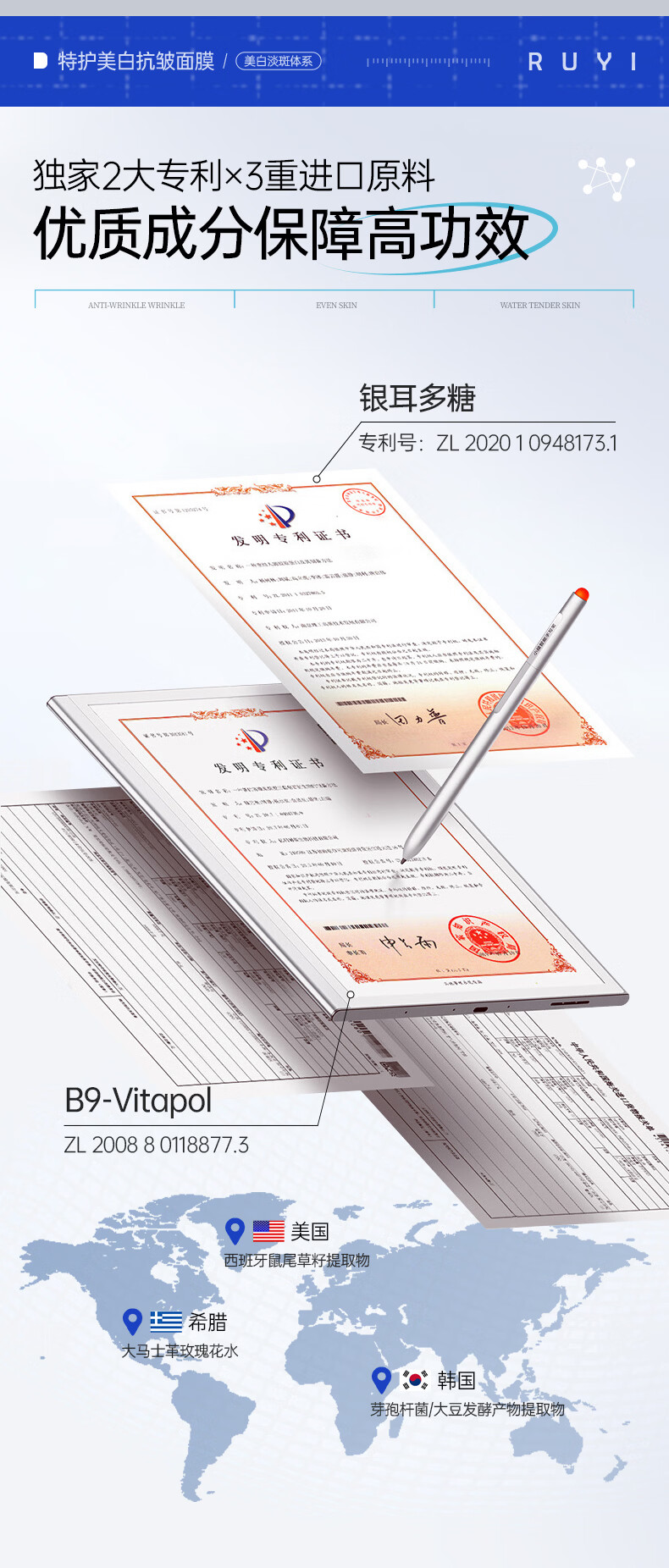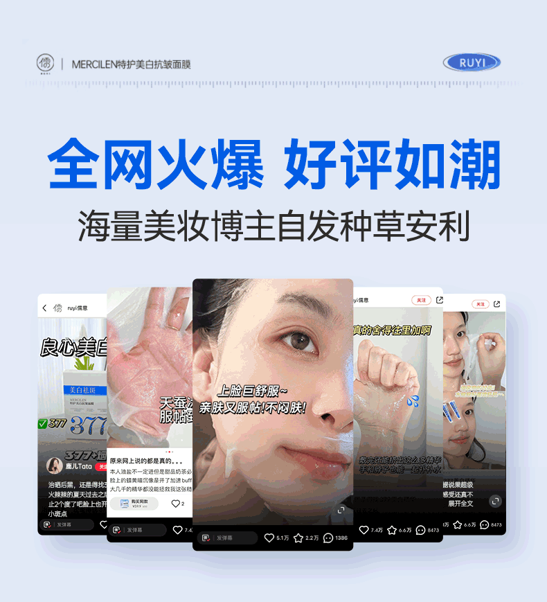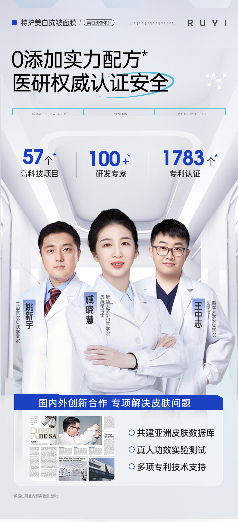 儒意(RUYI)377美白面膜补水男女士保湿淡斑淡痘印提亮抗皱紧致抗衰老去黄气